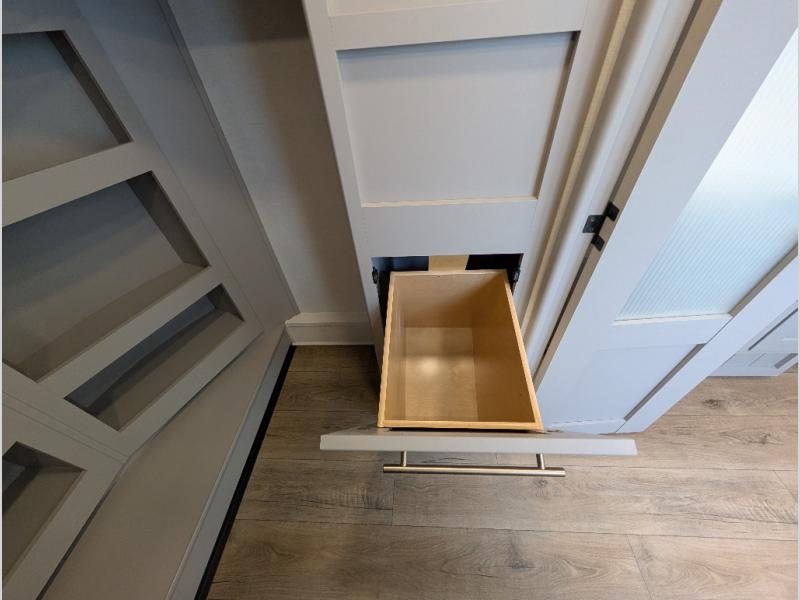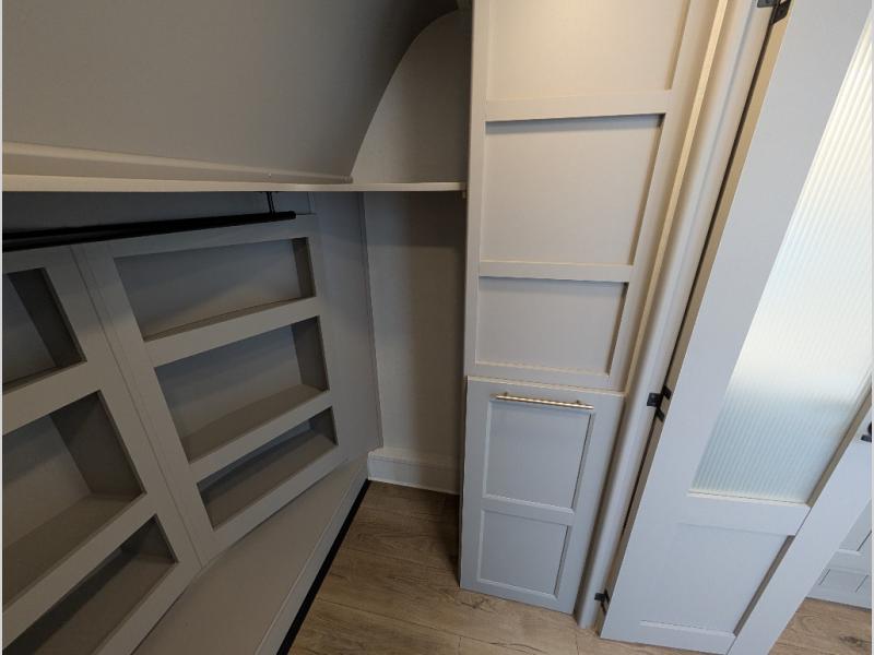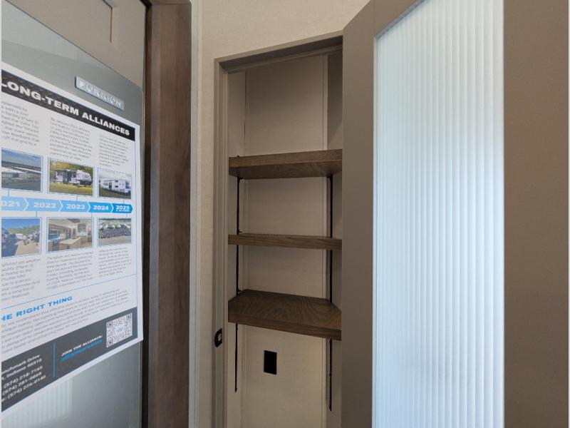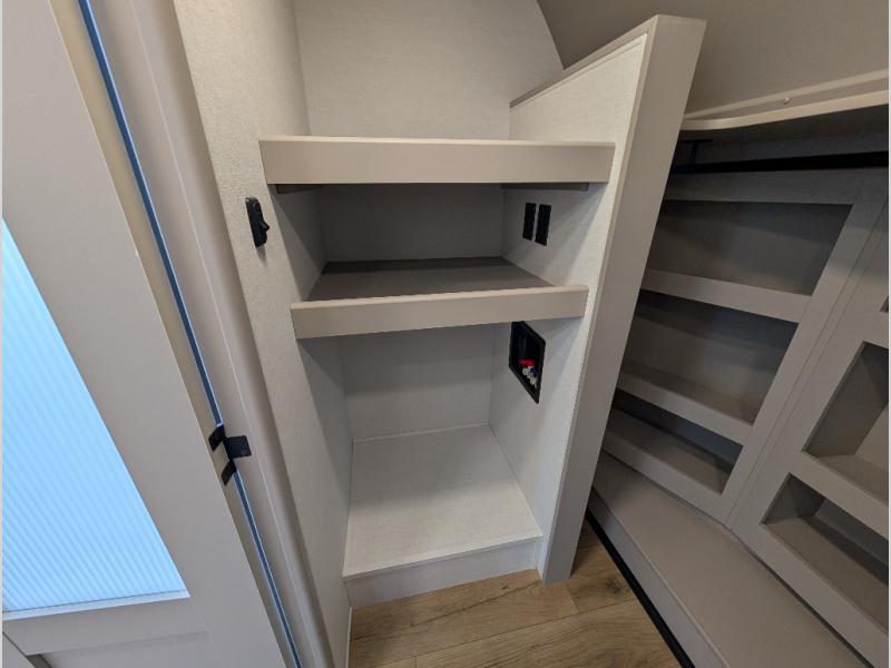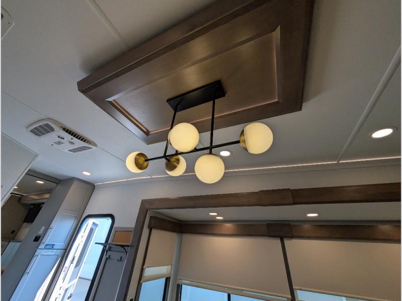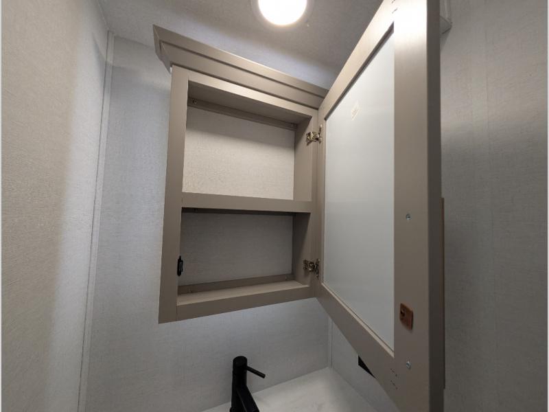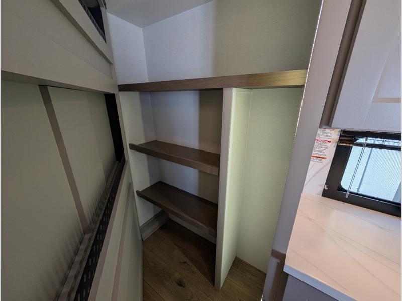 Whether you decide to be a full-timer or a long-trip traveler, this Paradigm offers so many comforts and conveniences you will love! The large full bathroom might be the reason you decide to be a new owner because you will have a large 61" x 30" shower to get cleaned up in, linen storage, and a walk-in closet with a hamper, shelves, and a space prepped for an optional washer/dryer. The bedroom allows you to sleep like a king and gives you extra floor space with the two slides, and there is storage in the flip-top dresser and under the seat, plus you can watch the Smart TV. The space saving sliding doors offer style as well. The cook will love all the residential appliances, including a residential refrigerator. The kitchen island gives you a large sink and dishwasher prep also. The half bath is super convenient just like the entry sitting bench/coat rack and closet. And you can relax on the sleeper sofa, dual recliner love seat, or swivel table and desk.