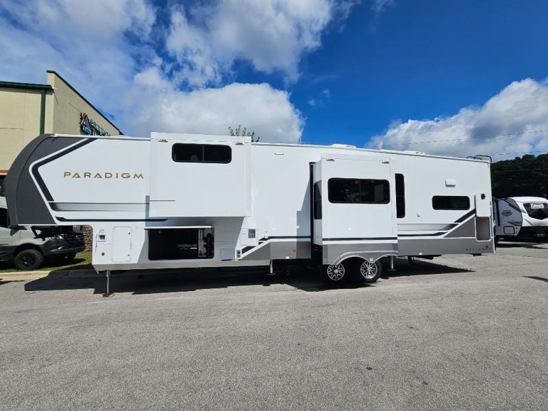 The Paradigm 382RK combines residential comfort with high-end features, offering a rear kitchen layout, spacious living, and a luxurious master suite. With its bath-and-a-half design, dual living spaces, and premium construction, this fifth wheel is built for those who want the ultimate RV lifestyle.