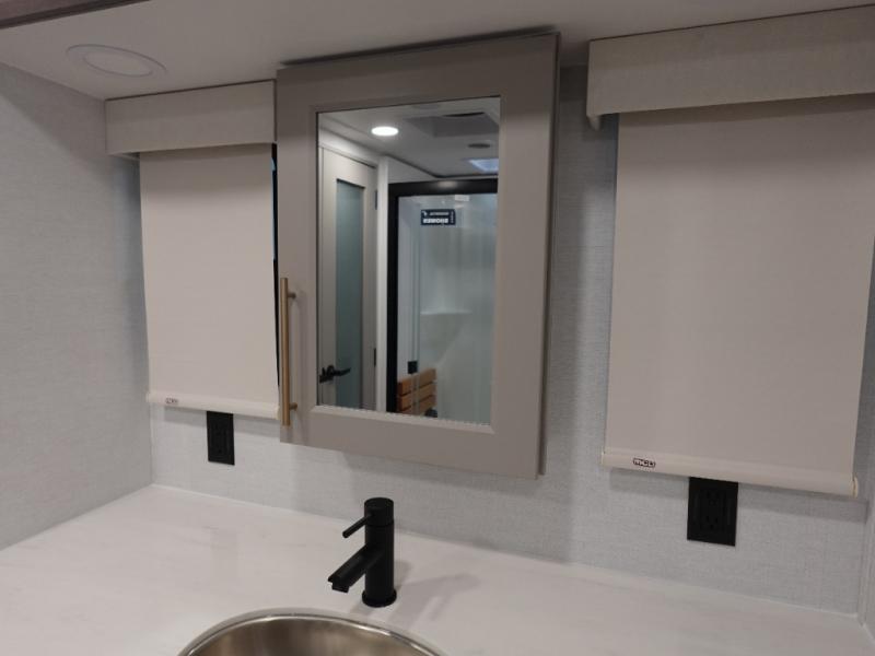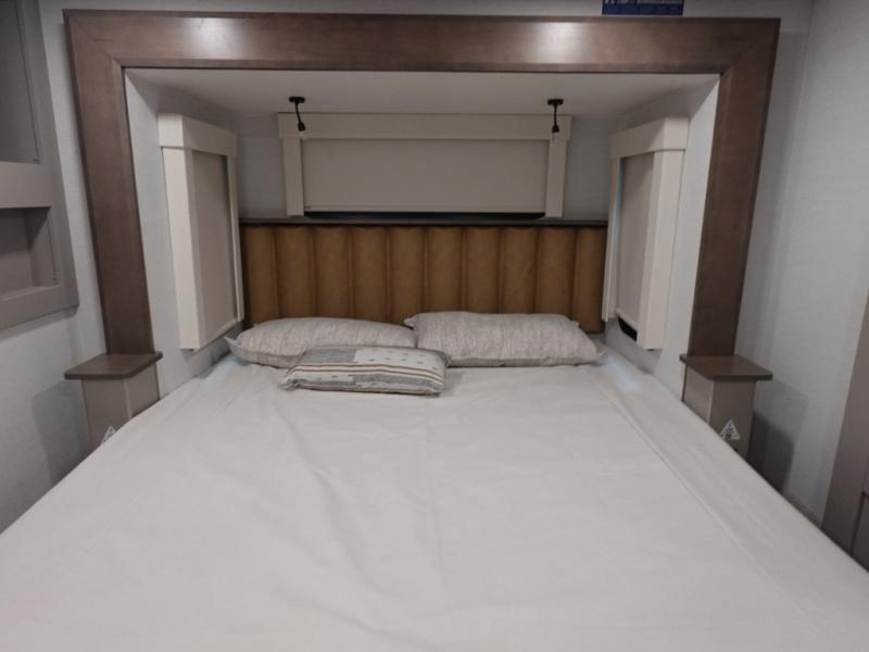 The Paradigm fifth wheels by Alliance RV are functional, high-quality, and luxurious for an unforgettable camping experience. There are three A/C units and a 40K BTU furnace to keep you comfortable year around, and you'll appreciate additional convenient amenities, like the all-in-one enclosed/heated utility center and the color coded and numbered wiring. A Helux Series coil spring pin box comes standard for hassle-free towing, along with Curt 8,000 lb. axles. You'll love the kitchen with its LG solid surface countertops and Lusso range, plus there is LED motion lighting in the pantry and a Maxx fan with a rain sensor to keep everything fresh when making dinner. Each model also includes an HD Smart TV in the living room and bedroom. And of course there are a variety of options you can choose from to further customize your fifth wheel; dual pane windows, Super Solar Plus, slide out awning toppers, and generator prep or a generator to name a few!