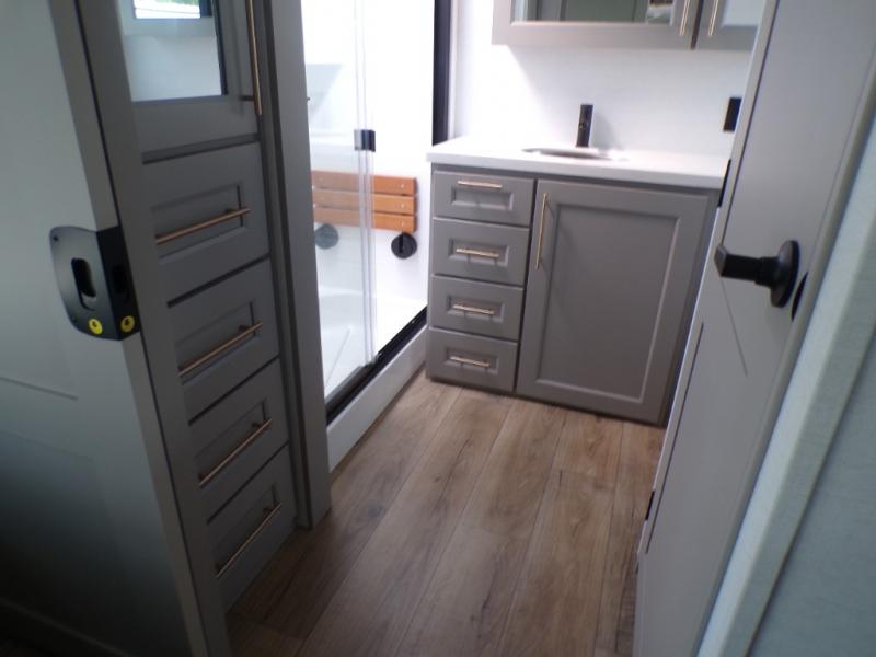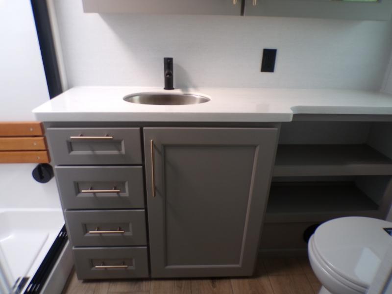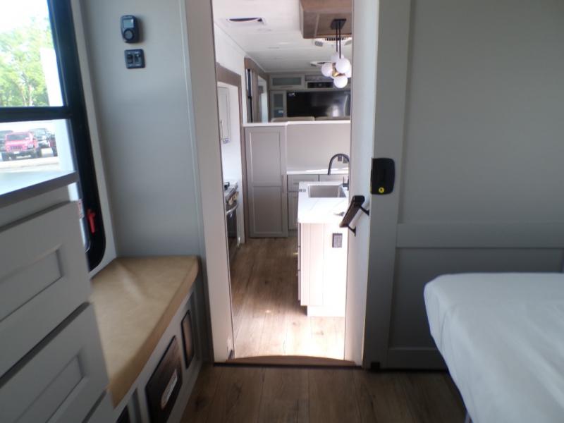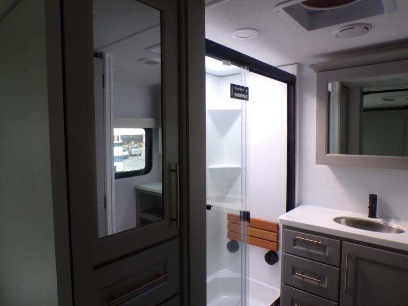 The Paradigm fifth wheels by Alliance RV are functional, high-quality, and luxurious for an unforgettable camping experience. There are three A/C units and a 40K BTU furnace to keep you comfortable year around, and you'll appreciate additional convenient amenities, like the all-in-one enclosed/heated utility center and the color coded and numbered wiring. A Helux Series coil spring pin box comes standard for hassle-free towing, along with Super-G 4,400 lb. rated tires and Dexter 7,000 lb. axles. You'll love the kitchen with its LG solid surface countertops and Lusso range, plus there is LED motion lighting in the pantry and a Maxx fan with a rain sensor to keep everything fresh when making dinner. Each model also includes an HD Smart TV in the living room and bedroom, plus a Winegard Air 360 antenna to keep you connected to the outside world. And of course there are a variety of options you can choose from to further customize your fifth wheel; dual pane windows, Super Solar Plus, slide out awning toppers, and generator prep or a generator to name a few!