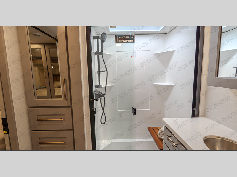 The Paradigm fifth wheels by Alliance RV are functional, high-quality, and luxurious for an unforgettable camping experience. There are three A/C units and a 40K BTU furnace to keep you comfortable year around, and you'll appreciate additional convenient amenities, like the all-in-one enclosed/heated utility center and the color coded and numbered wiring. A Helux Series coil spring pin box comes standard for hassle-free towing, along with Super-G 4,400 lb. rated tires and Dexter 7,000 lb. axles. You'll love the kitchen with its LG solid surface countertops and Lusso range, plus there is LED motion lighting in the pantry and a Maxx fan with a rain sensor to keep everything fresh when making dinner. Each model also includes an HD Smart TV in the living room and bedroom, plus a Winegard Air 360 antenna to keep you connected to the outside world. And of course there are a variety of options you can choose from to further customize your fifth wheel; dual pane windows, Super Solar Plus, slide out awning toppers, and generator prep or a generator to name a few!