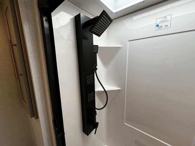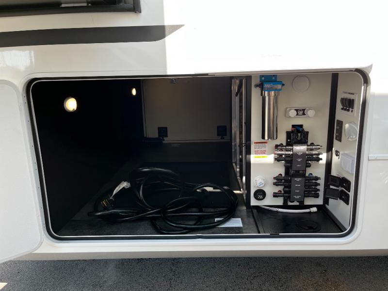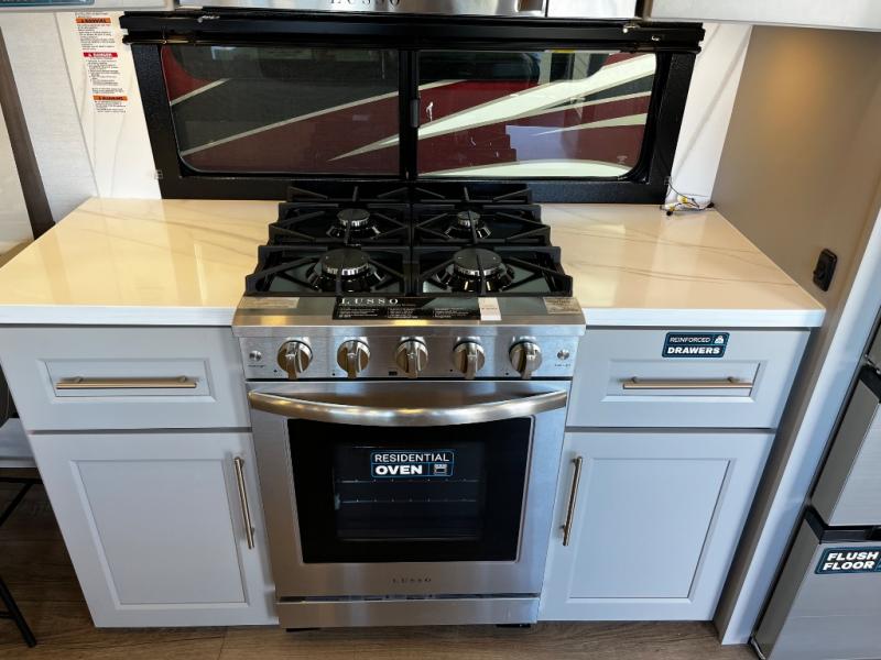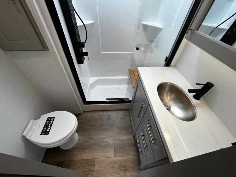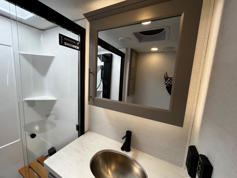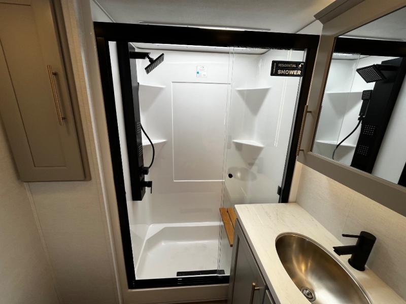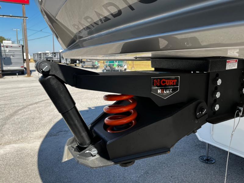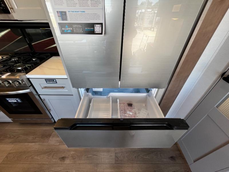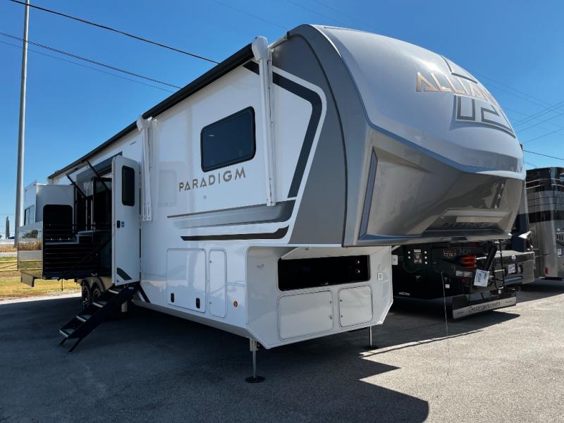 The Paradigm fifth wheels by Alliance RV are functional, high-quality, and luxurious for an unforgettable camping experience. There are three A/C units and a 40K BTU furnace to keep you comfortable year around, and you'll appreciate additional convenient amenities, like the all-in-one enclosed/heated utility center and the color coded and numbered wiring. A Helux Series coil spring pin box comes standard for hassle-free towing, along with Curt 8,000 lb. axles. You'll love the kitchen with its LG solid surface countertops and Lusso range, plus there is LED motion lighting in the pantry and a Maxx fan with a rain sensor to keep everything fresh when making dinner. Each model also includes an HD Smart TV in the living room and bedroom. And of course there are a variety of options you can choose from to further customize your fifth wheel; dual pane windows, Super Solar Plus, slide out awning toppers, and generator prep or a generator to name a few!