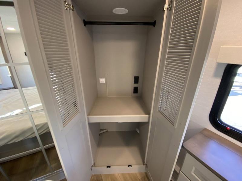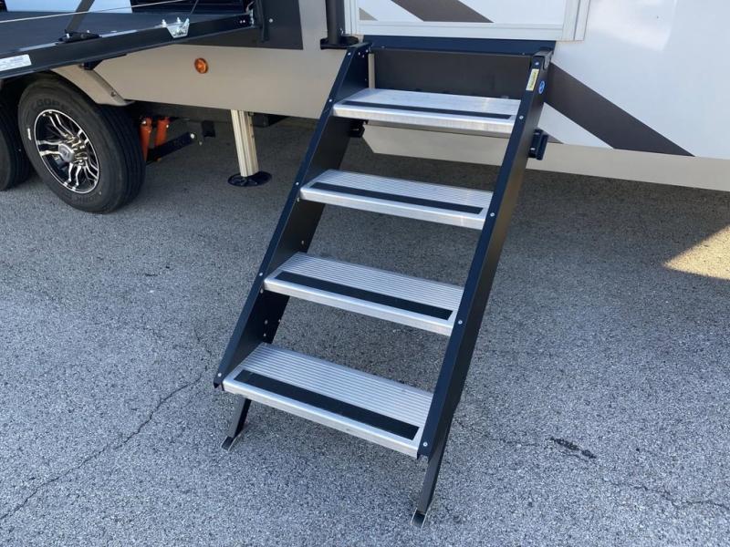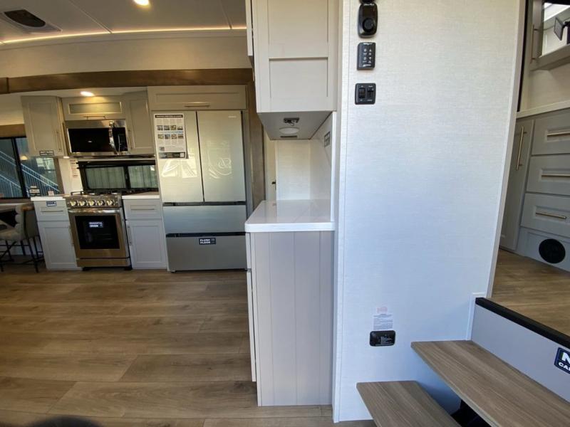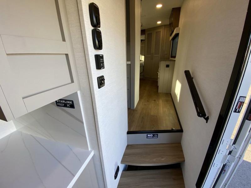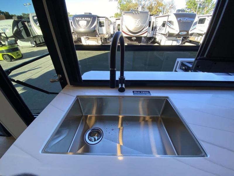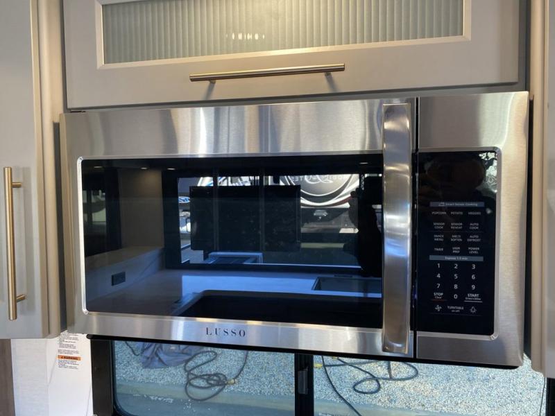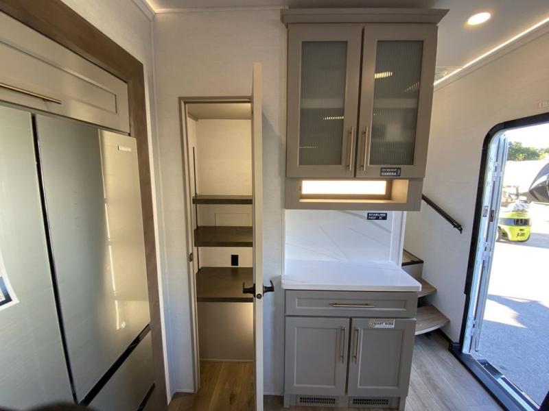 You will fall in love with this unit’s slide patio with picture window, the perfect spot to take in the breathtaking views. Enjoy outdoor cooking with the countertop prep area and pull-out grill, while the drop-down TV provides entertainment for all. Inside, rear living area features two sleeper sofas, perfect for lounging and relaxing. Overhead cabinets provide ample storage, while the 50” class smart TV offers endless entertainment options. Gather around the turn table dinette for meals or socializing. The kitchen is fully equipped with a microwave, sink, refrigerator, pantry, and hutch, making meal preparation and storage a breeze. Also this unit has a full bathroom and a cozy front bedroom which boast a king bed, ample closet, a TV, and so much more!
