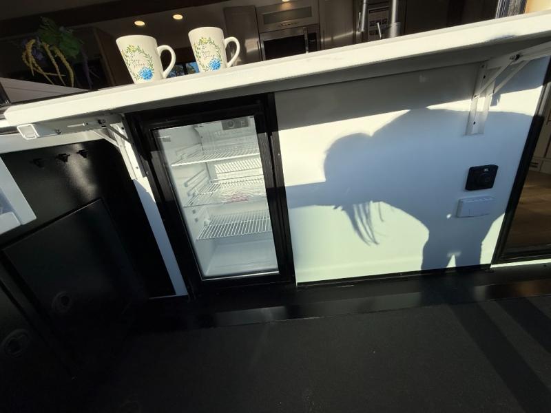 You will fall in love with this unit’s slide patio with picture window, the perfect spot to take in the breathtaking views. Enjoy outdoor cooking with the countertop prep area and pull-out grill, while the drop-down TV provides entertainment for all. Inside, rear living area features two sleeper sofas, perfect for lounging and relaxing. Overhead cabinets provide ample storage, while the 50” class smart TV offers endless entertainment options. Gather around the turn table dinette for meals or socializing. The kitchen is fully equipped with a microwave, sink, refrigerator, pantry, and hutch, making meal preparation and storage a breeze. Also this unit has a full bathroom and a cozy front bedroom which boast a king bed, ample closet, a TV, and so much more!