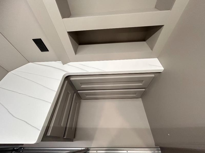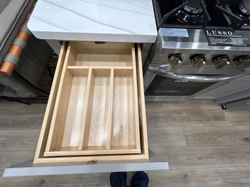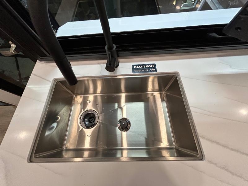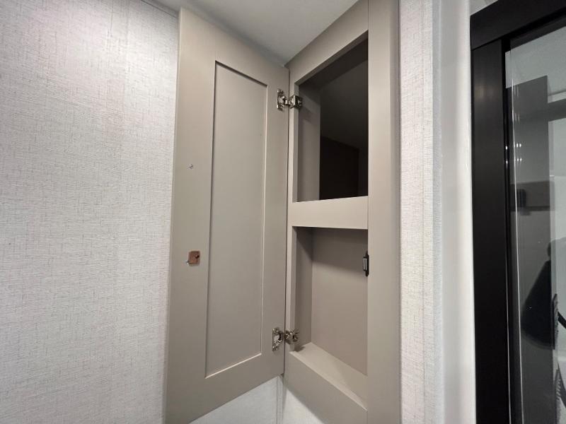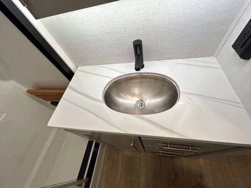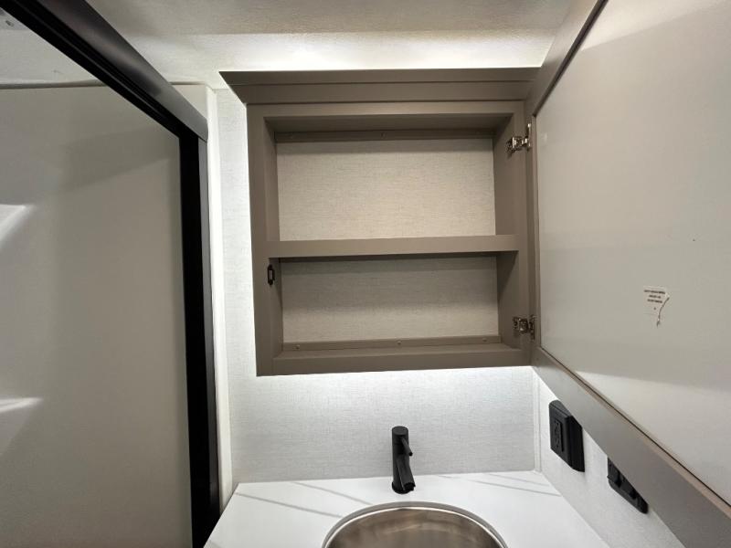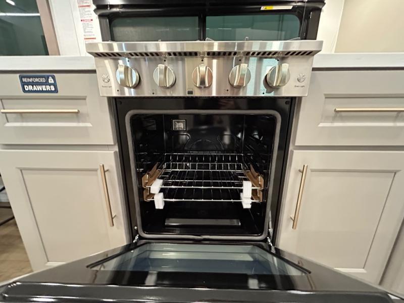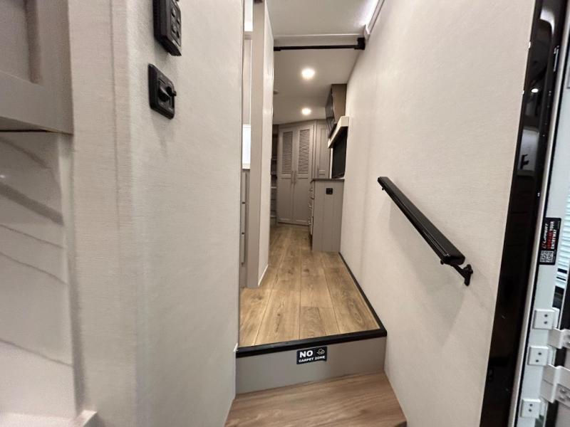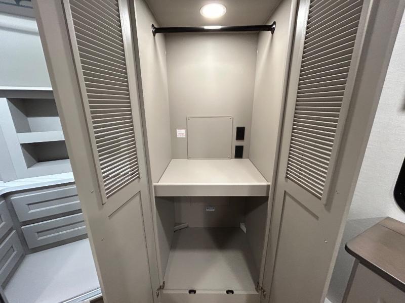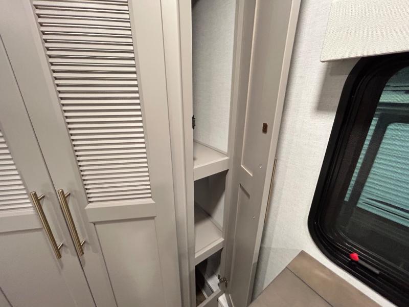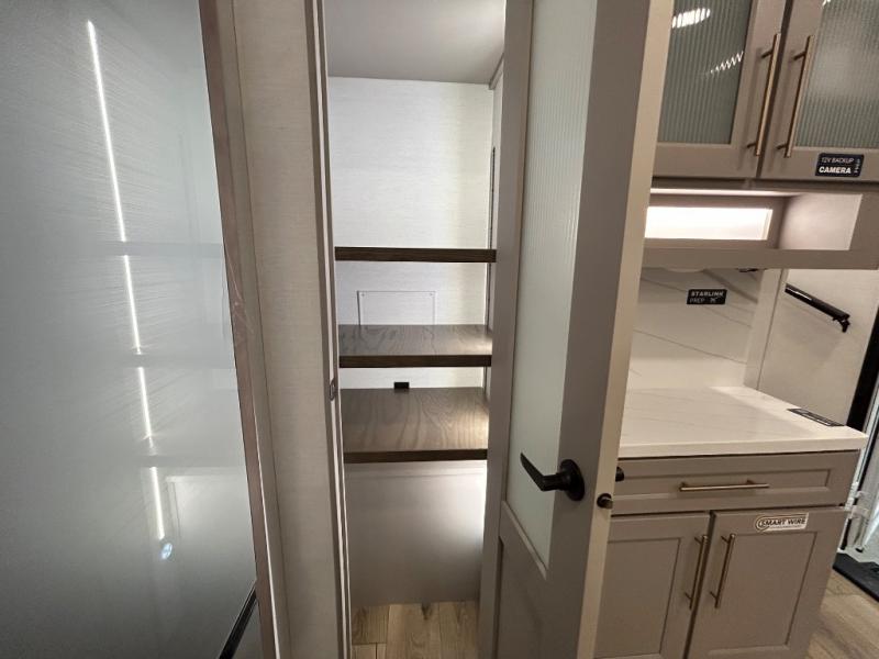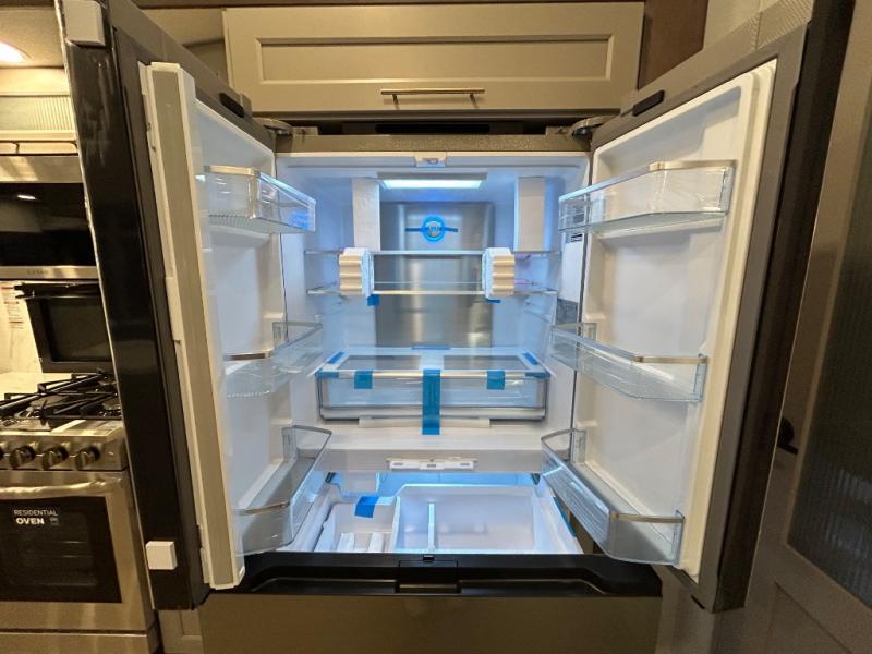 You will fall in love with this unit’s slide patio with picture window, the perfect spot to take in the breathtaking views. Enjoy outdoor cooking with the countertop prep area and pull-out grill, while the drop-down TV provides entertainment for all. Inside, rear living area features two sleeper sofas, perfect for lounging and relaxing. Overhead cabinets provide ample storage, while the 50” class smart TV offers endless entertainment options. Gather around the turn table dinette for meals or socializing. The kitchen is fully equipped with a microwave, sink, refrigerator, pantry, and hutch, making meal preparation and storage a breeze. Also this unit has a full bathroom and a cozy front bedroom which boast a king bed, ample closet, a TV, and so much more!