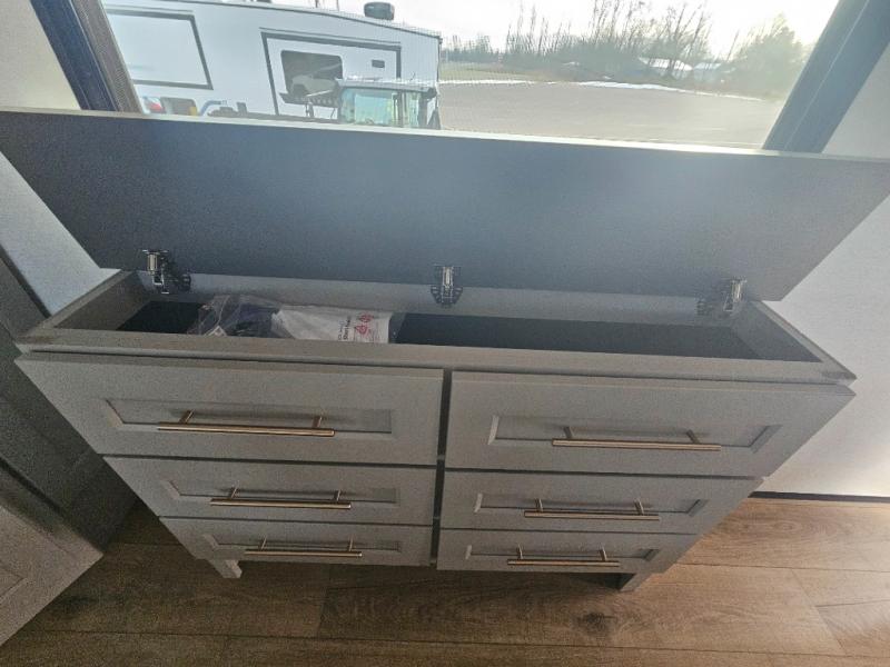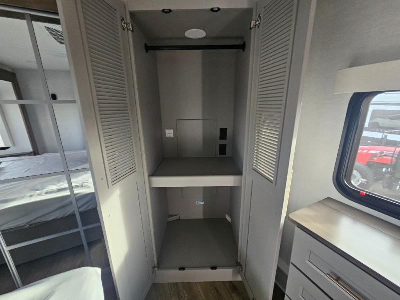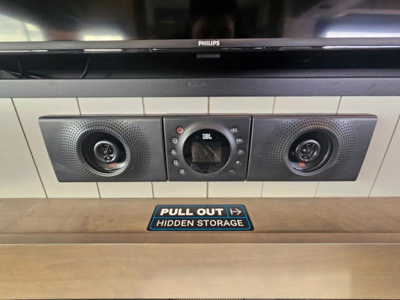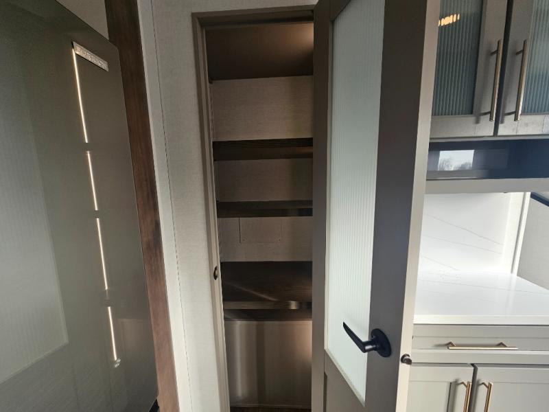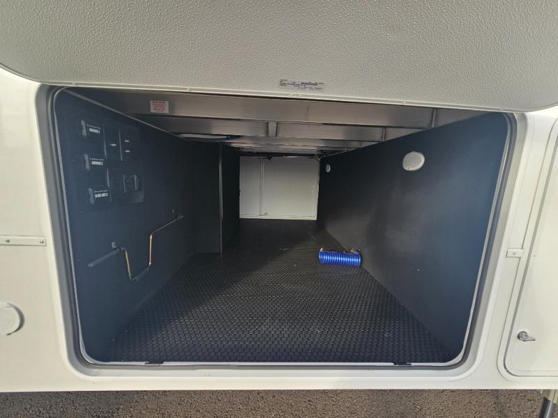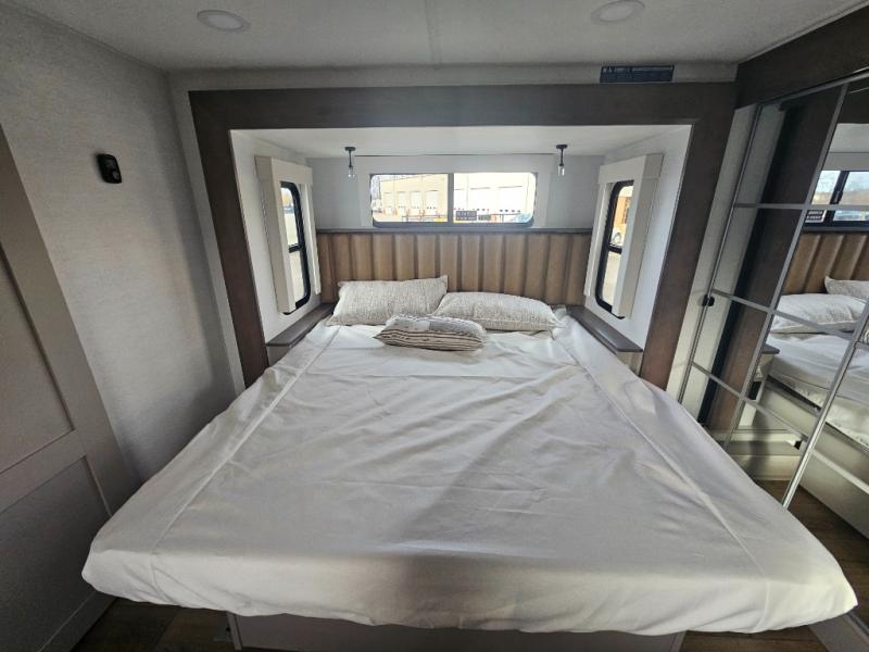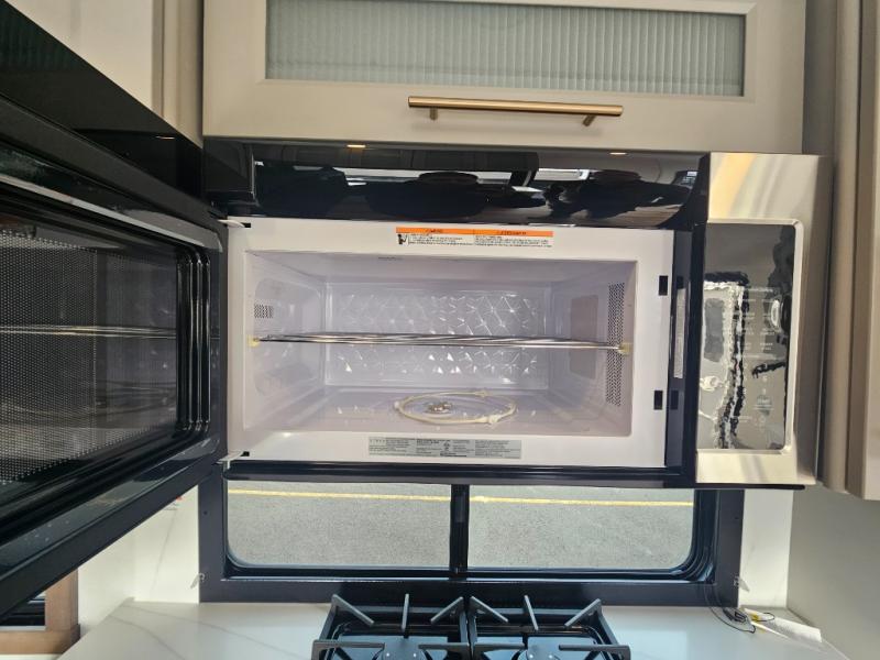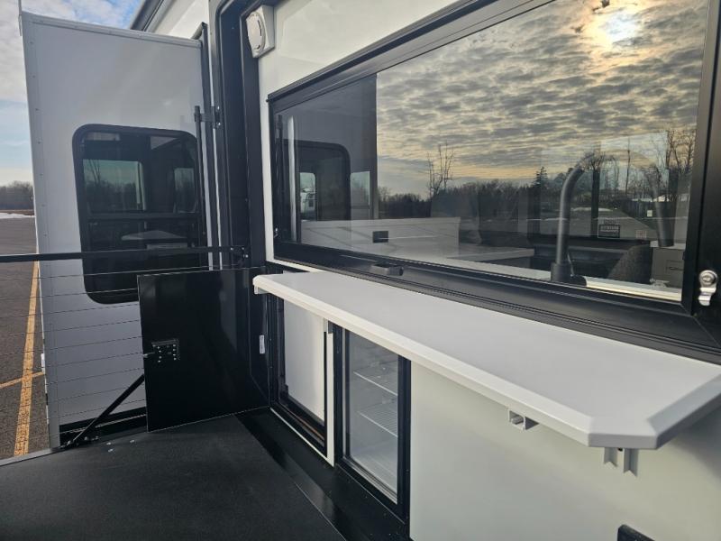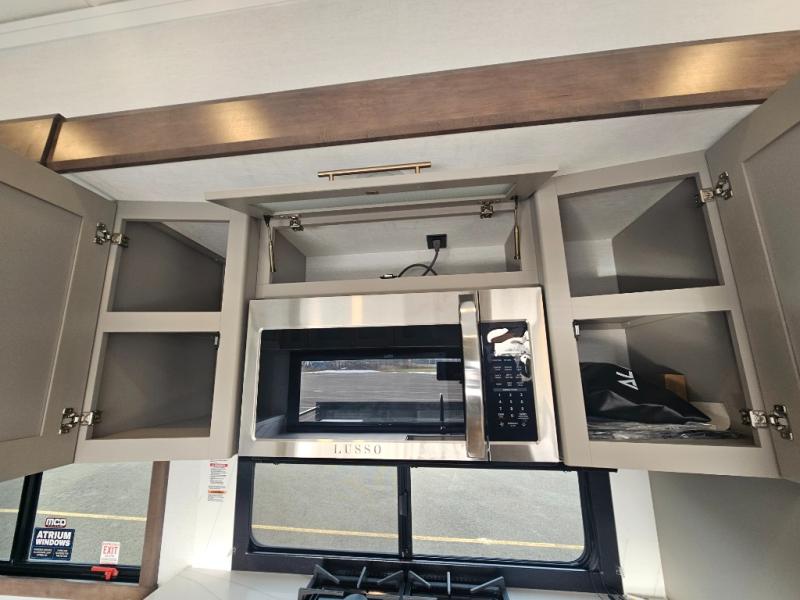 You will fall in love with this unit’s slide patio with picture window, the perfect spot to take in the breathtaking views. Enjoy outdoor cooking with the countertop prep area and pull-out grill, while the drop-down TV provides entertainment for all. Inside, rear living area features two sleeper sofas, perfect for lounging and relaxing. Overhead cabinets provide ample storage, while the 50” class smart TV offers endless entertainment options. Gather around the turn table dinette for meals or socializing. The kitchen is fully equipped with a microwave, sink, refrigerator, pantry, and hutch, making meal preparation and storage a breeze. Also this unit has a full bathroom and a cozy front bedroom which boast a king bed, ample closet, a TV, and so much more!