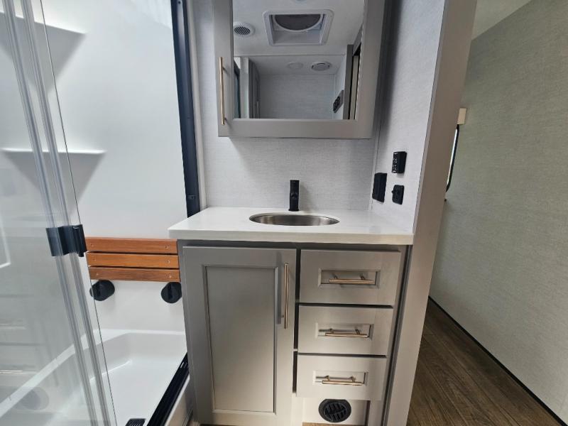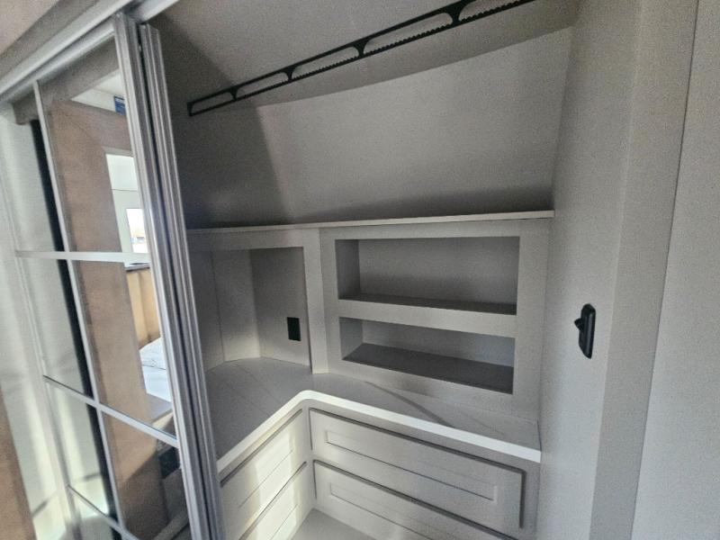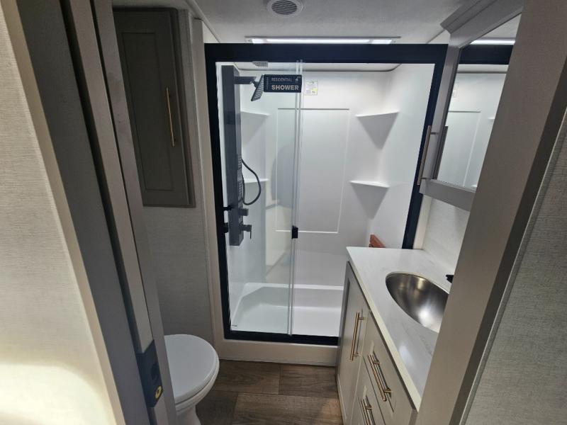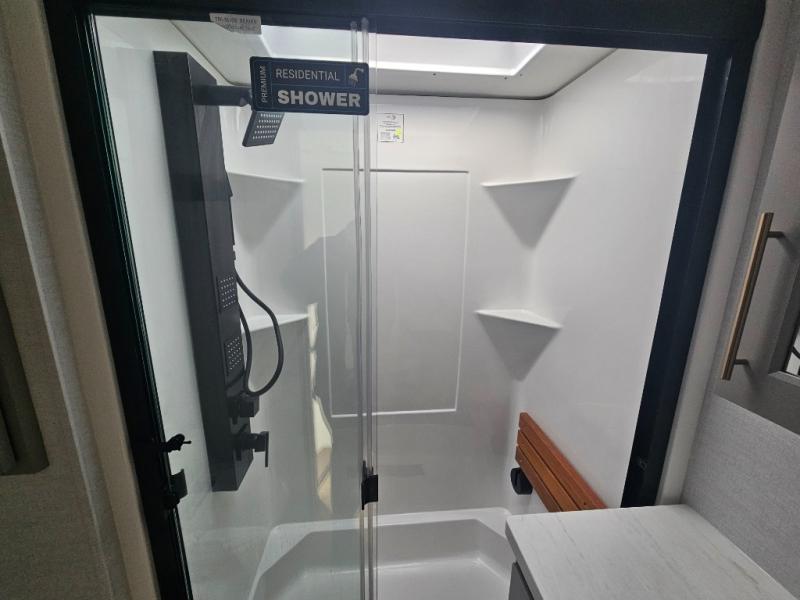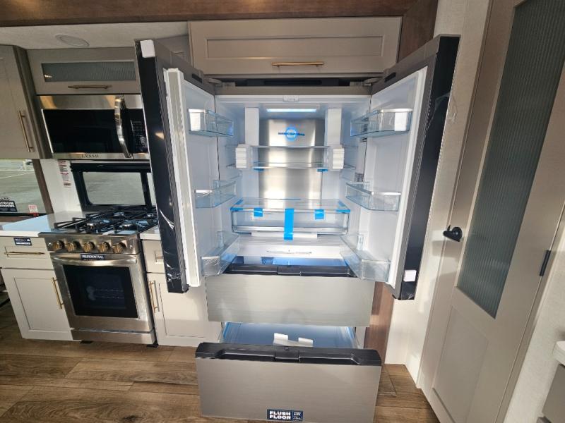 The Paradigm fifth wheels by Alliance RV are functional, high-quality, and luxurious for an unforgettable camping experience. There are three A/C units and a 40K BTU furnace to keep you comfortable year around, and you'll appreciate additional convenient amenities, like the all-in-one enclosed/heated utility center and the color coded and numbered wiring. A Helux Series coil spring pin box comes standard for hassle-free towing, along with Curt 8,000 lb. axles. You'll love the kitchen with its LG solid surface countertops and Lusso range, plus there is LED motion lighting in the pantry and a Maxx fan with a rain sensor to keep everything fresh when making dinner. Each model also includes an HD Smart TV in the living room and bedroom. And of course there are a variety of options you can choose from to further customize your fifth wheel; dual pane windows, Super Solar Plus, slide out awning toppers, and generator prep or a generator to name a few!