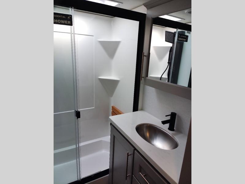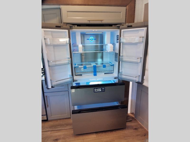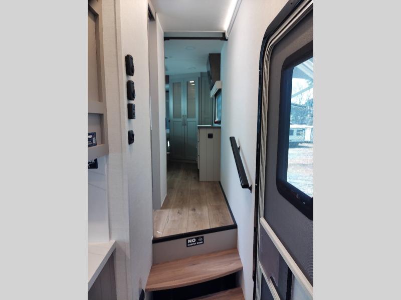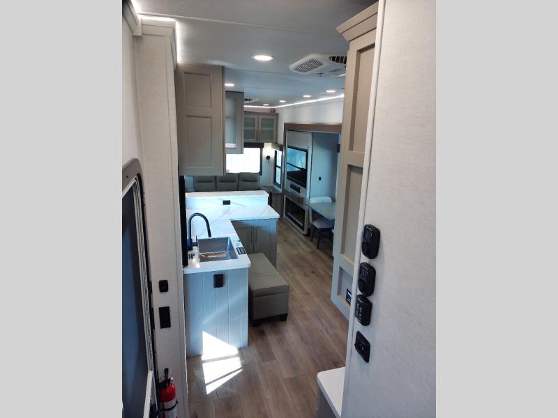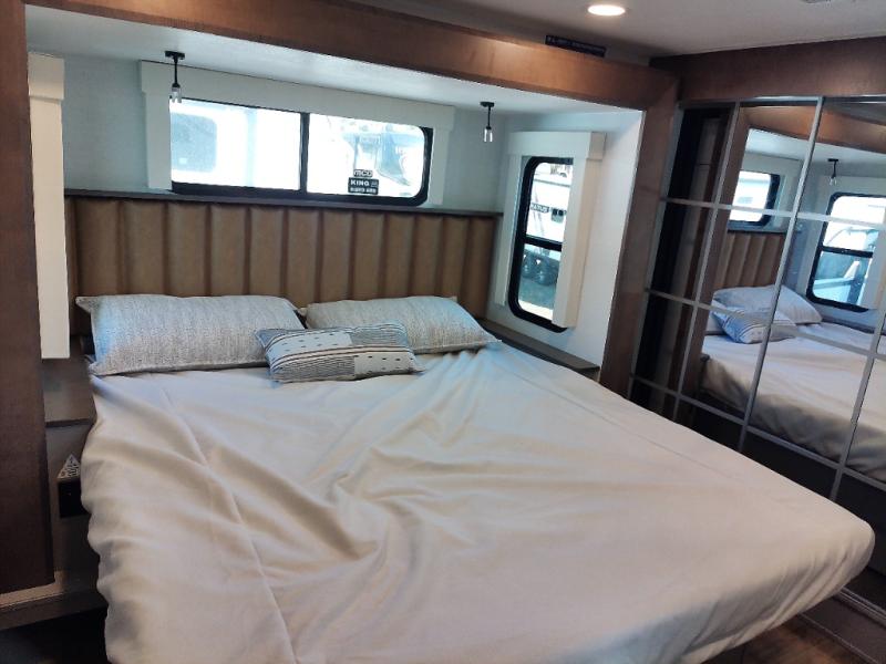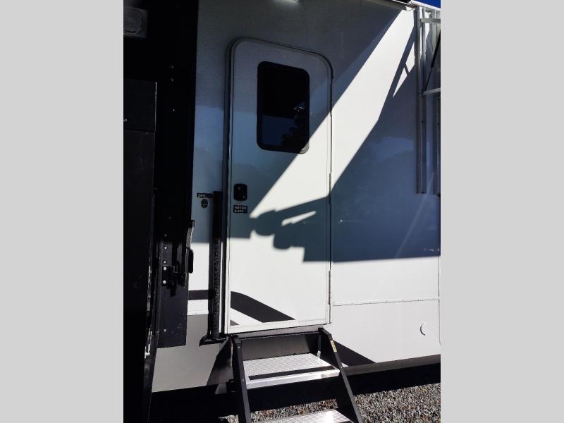 The Paradigm fifth wheels by Alliance RV are functional, high-quality, and luxurious for an unforgettable camping experience. There are three A/C units and a 40K BTU furnace to keep you comfortable year around, and you'll appreciate additional convenient amenities, like the all-in-one enclosed/heated utility center and the color coded and numbered wiring. A Helux Series coil spring pin box comes standard for hassle-free towing, along with Curt 8,000 lb. axles. You'll love the kitchen with its LG solid surface countertops and Lusso range, plus there is LED motion lighting in the pantry and a Maxx fan with a rain sensor to keep everything fresh when making dinner. Each model also includes an HD Smart TV in the living room and bedroom. And of course there are a variety of options you can choose from to further customize your fifth wheel; dual pane windows, Super Solar Plus, slide out awning toppers, and generator prep or a generator to name a few!