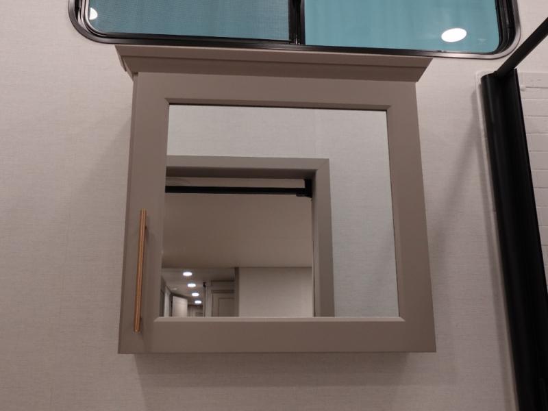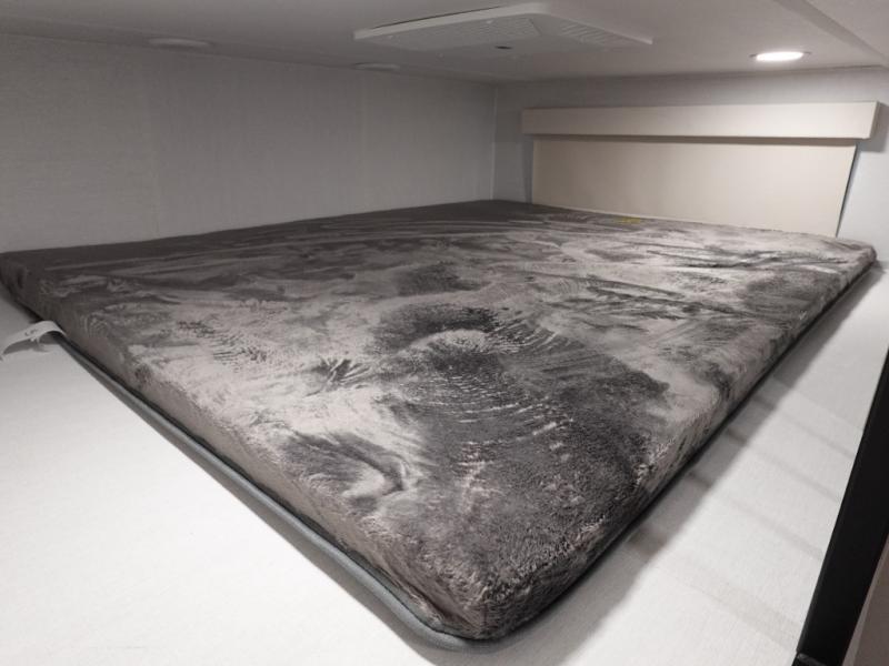 A spacious unit with sleeping for eight with plenty of choices to suit everyone! There is a front private bedroom with a king size bed that offers a large full front closet. The front bath features a 40" x 30" shower and dual entry. Head down to the kitchen and living space at the bottom of the stairs to find a curbside slide that houses the 19 cu. ft. residential refrigerator, a pantry, and a swivel table and desk. As you continue on toward the rear of this coach, you will find a spacious living area along the roadside with a 50" Smart TV and a fireplace, a sofa sleeper slide, and a dual reclining loveseat. This makes a great gathering place for television watching, game playing, and even added sleeping space if needed at night. The rear private bedroom with its own private bath features a queen bed, two closets, and a Smart TV as well. The multipurpose loft area above can be accessed just before this rear bedroom entry by a ladder, and it is perfect for extra storage, or it can be used for added sleeping that the kiddos are sure to love.