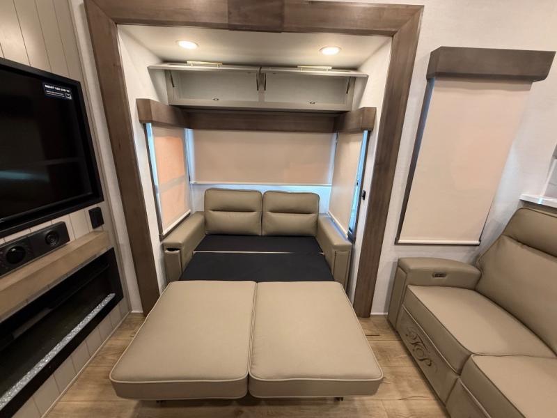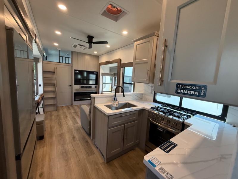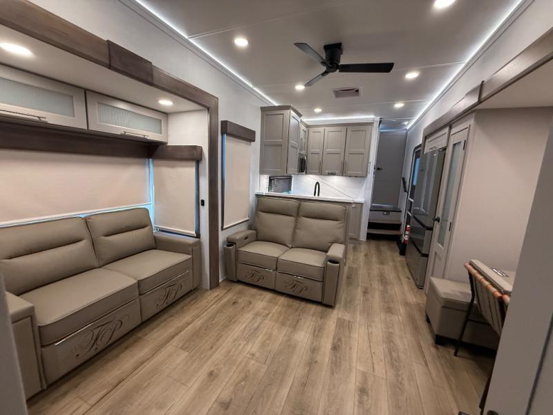 The 2026 Alliance Paradigm 395DS is a luxury fifth wheel built for full-time living or extended RV adventures. This model is specifically designed with families and groups in mind, offering dual suites, two full bathrooms, and ample sleeping space without sacrificing comfort or premium features.