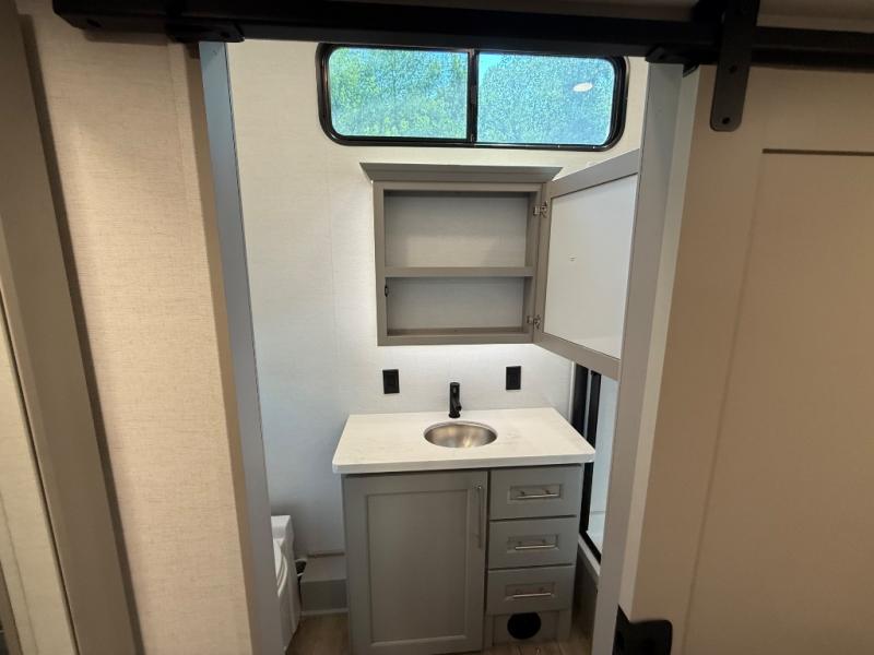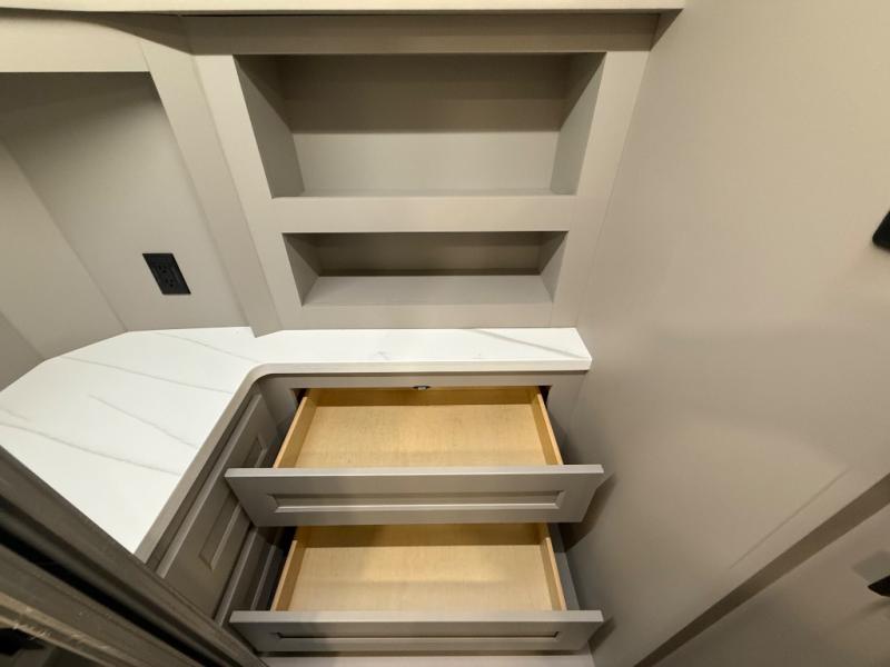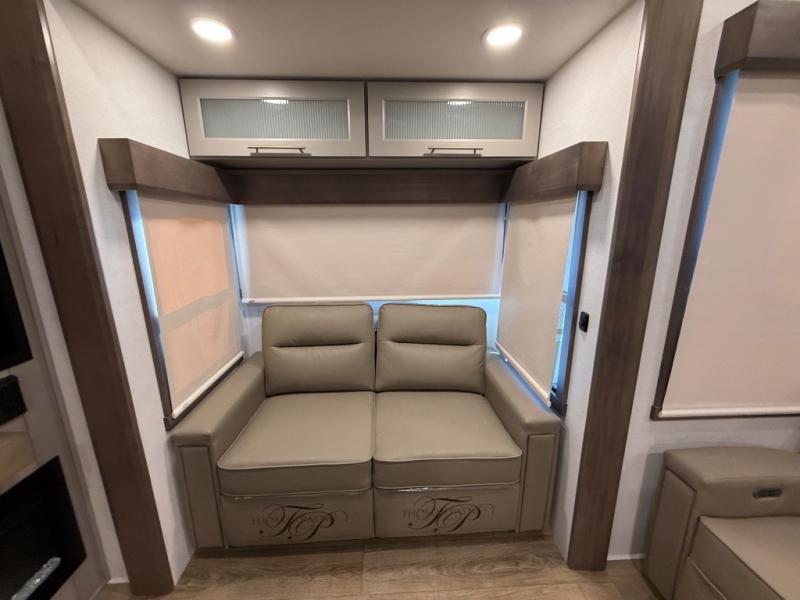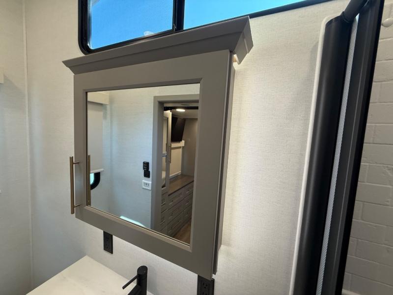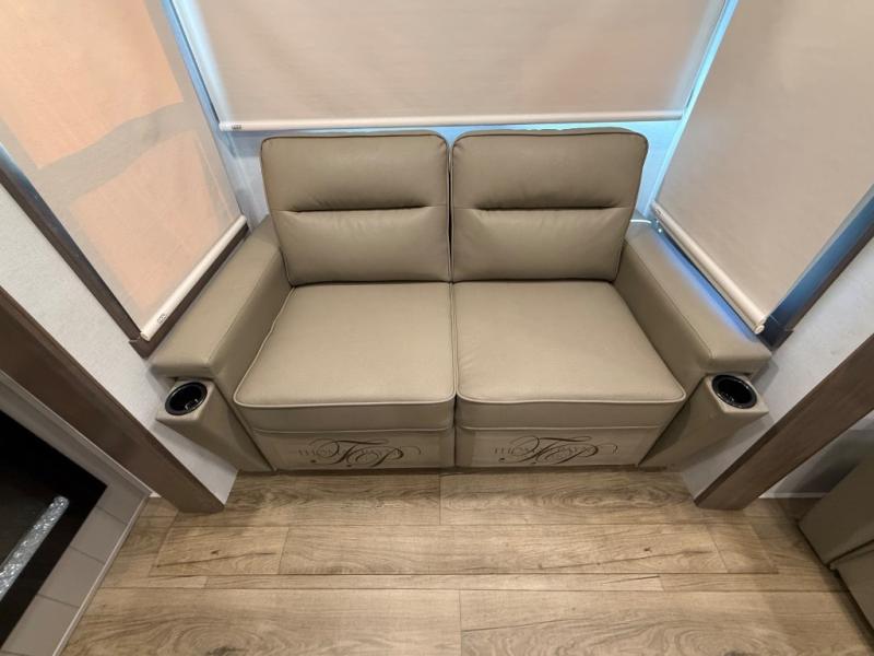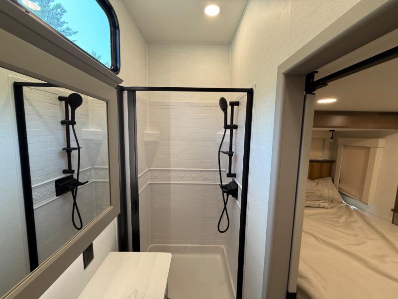 Two Full Bathrooms – Rare for a fifth wheel; includes spacious showers, porcelain toilets, and high-end fixtures.