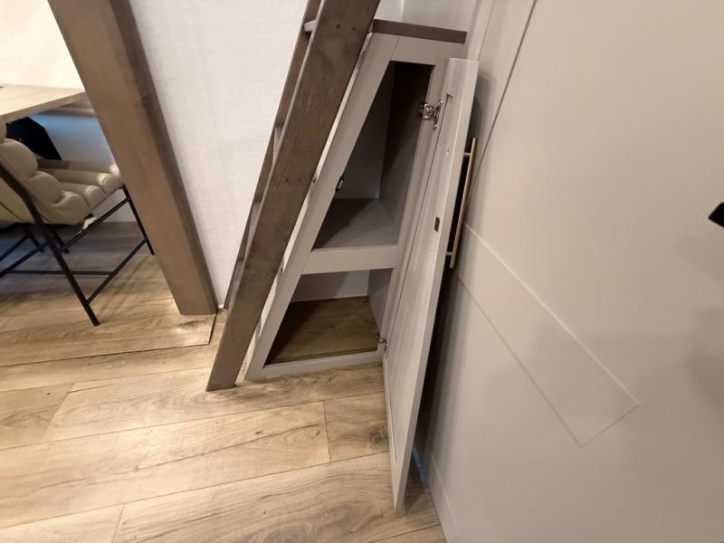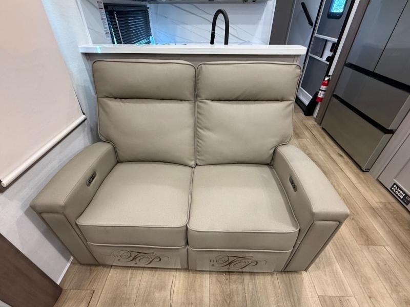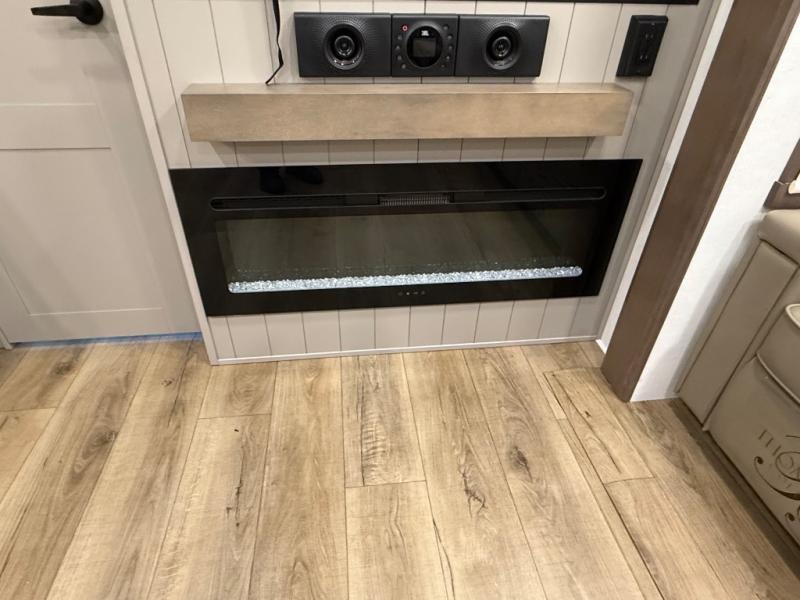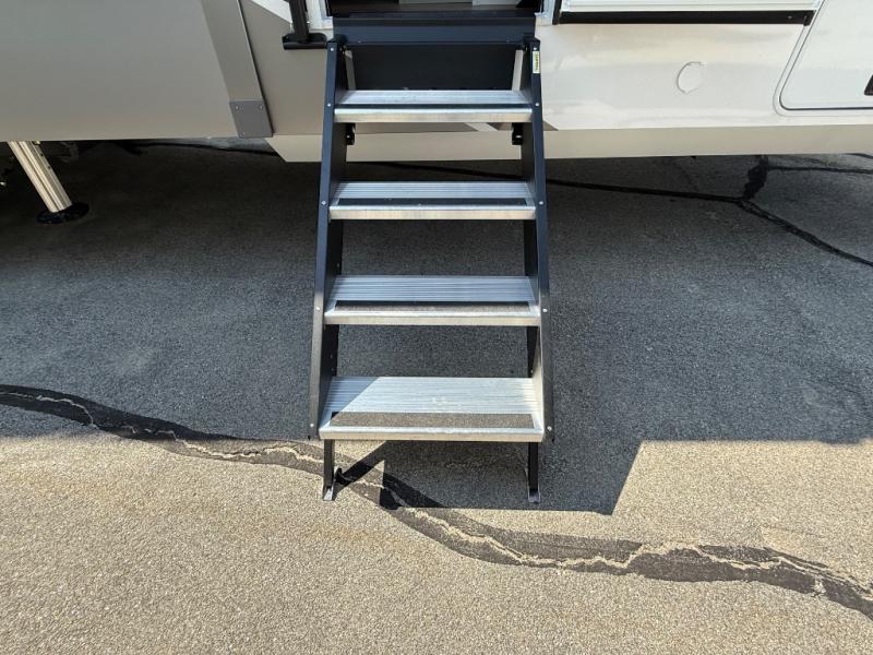A spacious unit with sleeping for eight with plenty of choices to suit everyone! There is a front private bedroom with a king size bed that offers a large full front closet that has also been prepped for a washer and dryer if you choose that option. The front bath features a 40" x 30" shower and dual entry. Head down to the kitchen and living space at the bottom of the stairs to find a curbside slide that houses the 19 cu. ft. residential refrigerator, a pantry, and a swivel table and desk. As you continue on toward the rear of this coach, you will find a spacious living area along the roadside with a 50" Smart TV and a fireplace, a sofa sleeper slide, and a dual reclining loveseat. This makes a great gathering place for television watching, game playing, and even added sleeping space if needed at night. The rear private bedroom with its own private bath features a queen bed, two closets, and a Smart TV as well. The multipurpose loft area above can be accessed just before this rear bedroom entry by a ladder, and it is perfect for extra storage, or it can be used for added sleeping that the kiddos are sure to love.