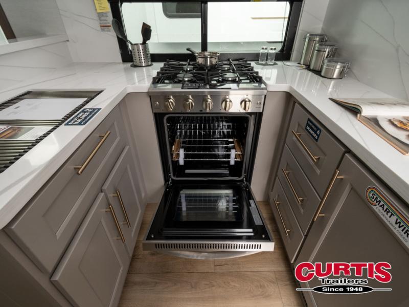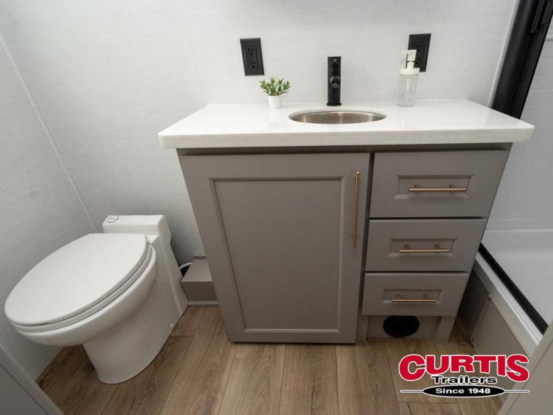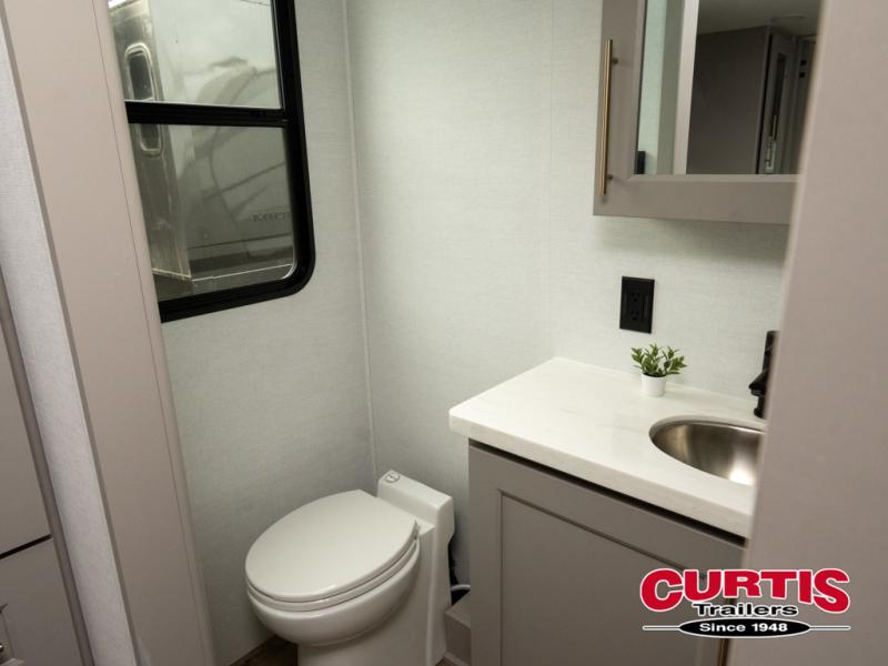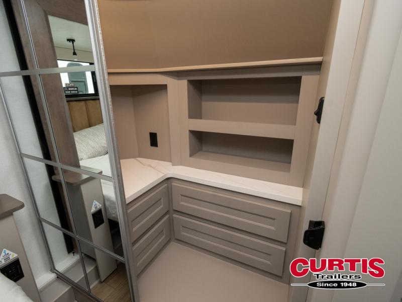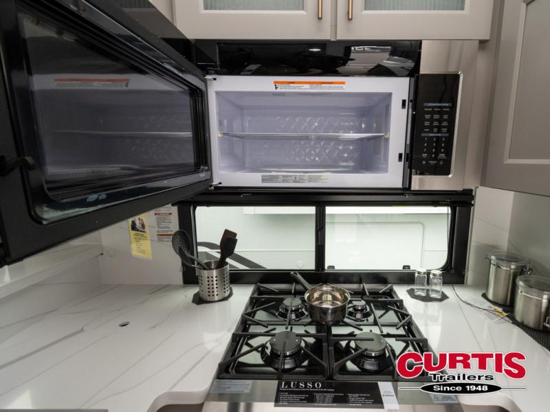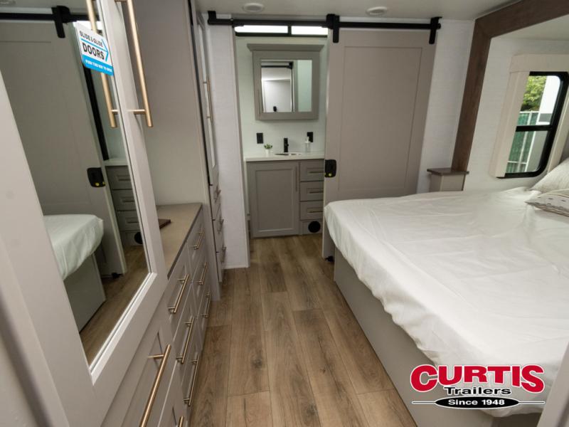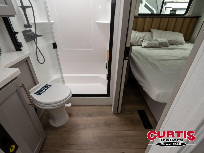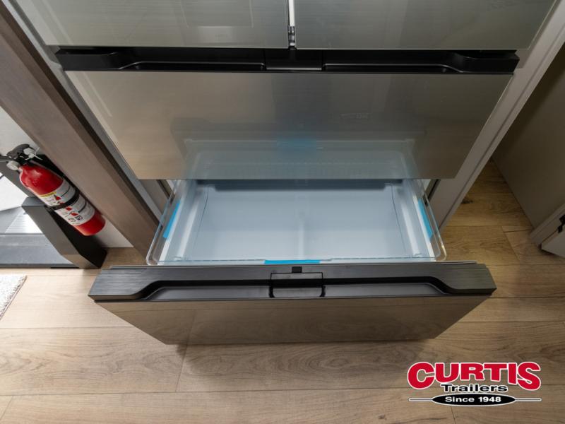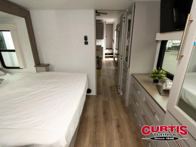 The Paradigm fifth wheels by Alliance RV are functional, high-quality, and luxurious for an unforgettable camping experience. There are three A/C units and a 40K BTU furnace to keep you comfortable year around, and you'll appreciate additional convenient amenities, like the all-in-one enclosed/heated utility center and the color coded and numbered wiring. A Helux Series coil spring pin box comes standard for hassle-free towing, along with Super-G 4,400 lb. rated tires and Dexter 7,000 lb. axles. You'll love the kitchen with its LG solid surface countertops and Lusso range, plus there is LED motion lighting in the pantry and a Maxx fan with a rain sensor to keep everything fresh when making dinner. Each model also includes an HD Smart TV in the living room and bedroom, plus a Winegard Air 360 antenna to keep you connected to the outside world. And of course there are a variety of options you can choose from to further customize your fifth wheel; dual pane windows, Super Solar Plus, slide out awning toppers, and generator prep or a generator to name a few!