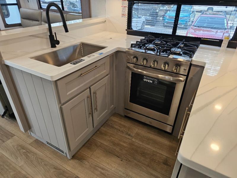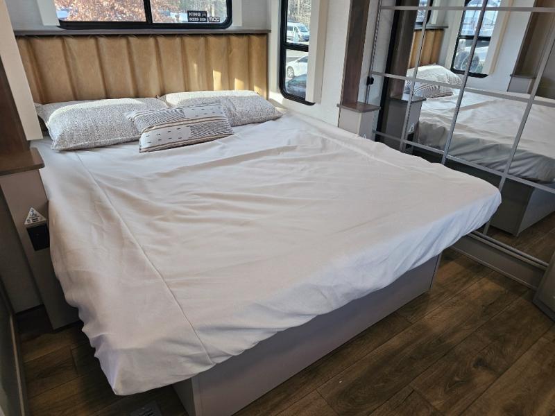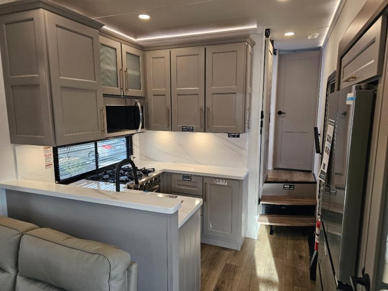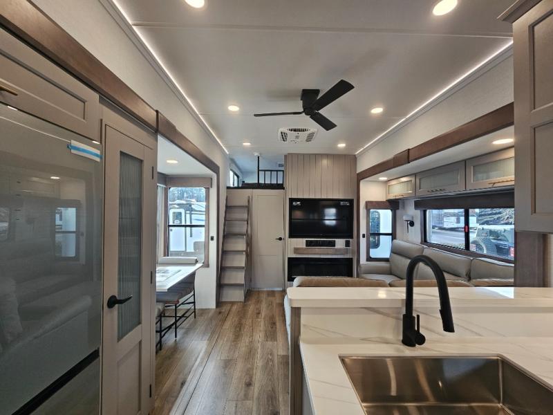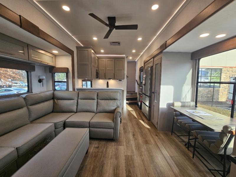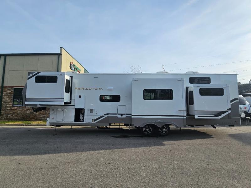 The Paradigm 395DS is the ultimate family-friendly fifth wheel, offering two full bedrooms, two full bathrooms, a loft, and spacious living areas designed for comfort and convenience. With premium residential finishes and thoughtful storage throughout, this model is perfect for full-time living or long adventures on the road.