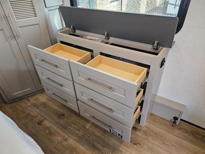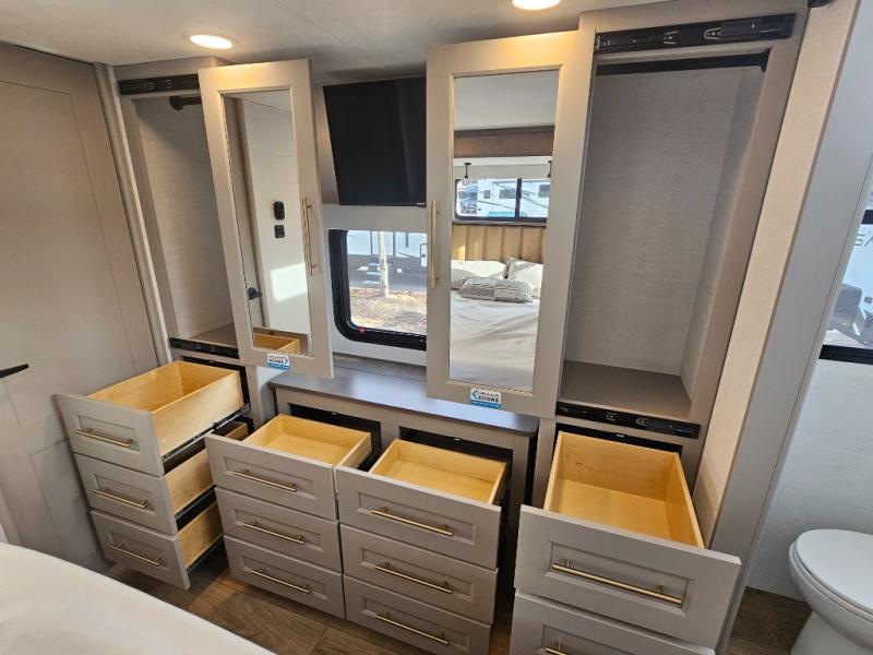 The Paradigm 395DS stands out by offering true residential luxury combined with unmatched functionality, including two full bedroom suites, two full baths, a loft, and a spacious living room designed for families. Its premium construction, abundant storage, and elevated amenities make it a perfect fit for full-timers or anyone wanting a high-end, home-like experience on the road.