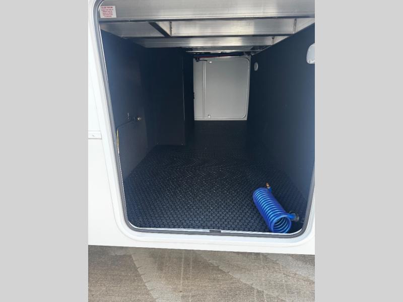 A spacious unit with sleeping for eight with plenty of choices to suit everyone! There is a front private bedroom with a king size bed that offers a large full front closet that has also been prepped for a washer and dryer if you choose that option. The front bath features a 40" x 30" shower and dual entry. Head down to the kitchen and living space at the bottom of the stairs to find a curbside slide that houses the 19 cu. ft. residential refrigerator, a pantry, and a swivel table and desk. As you continue on toward the rear of this coach, you will find a spacious living area along the roadside with a 50" Smart TV and a fireplace, a L-sofa sleeper slide, and a dual reclining loveseat. This makes a great gathering place for television watching, game playing, and even added sleeping space if needed at night. The rear private bedroom with its own private bath features a queen bed, two closets, and a Smart TV as well. The multipurpose loft area above can be accessed just before this rear bedroom entry by a ladder, and it is perfect for extra storage, or it can be used for added sleeping that the kiddos are sure to love.