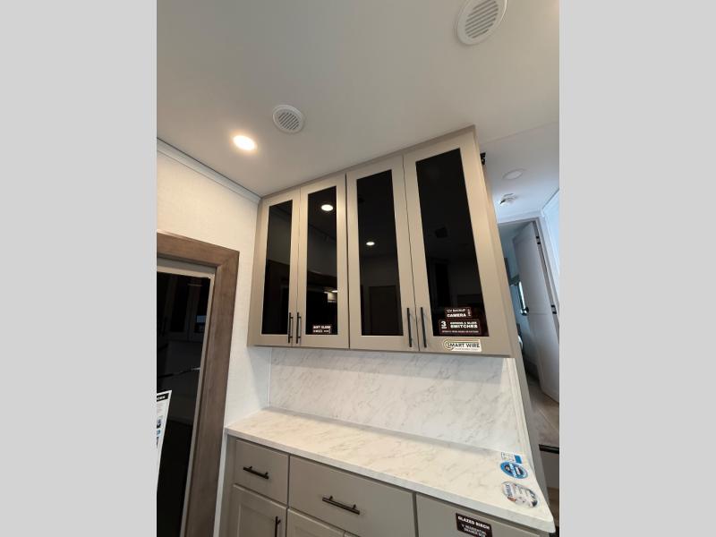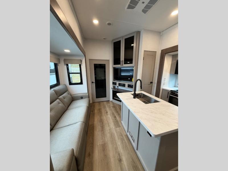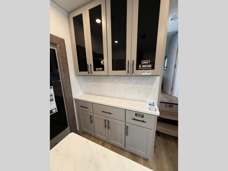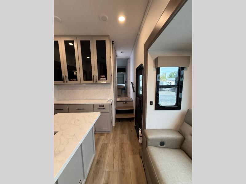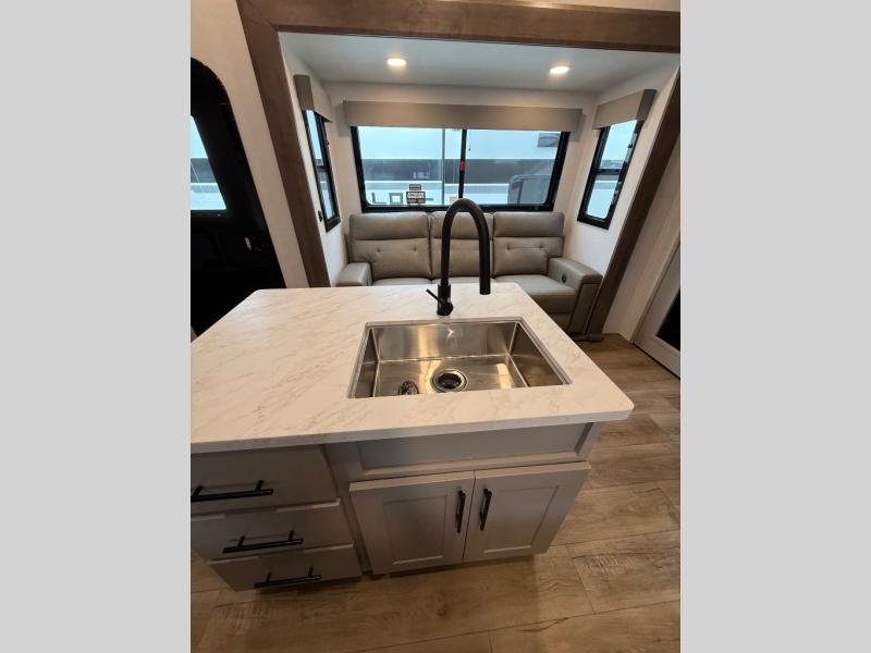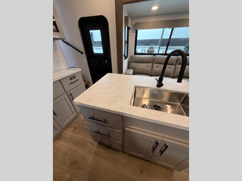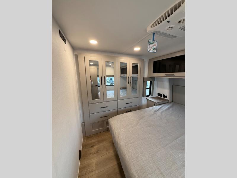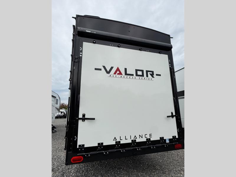 With any Valor All-Access toy hauler by Alliance RV you will be getting a travel trailer or fifth wheel with exceptional features at a great value! There is a painted fiberglass front cap, Mylar reinforced exterior seals, Azdel-backed fiberglass sidewalls, and a walk-on roof with a seamless PVC roof covering for added strength and durability. The 101" wide-body Benchmark chassis means you can bring along your larger toys, and the multipoint tie-down system will keep your toys safe and secure on the way to the campground. All of your power needs will be met with the Masters of 12 Volt Package that includes a 12V JBL sound system and USB charging stations throughout, plus the Off The Grid Pack comes with a 400 watt solar panel, 40 amp charge controller, and generator prep to keep you going all week long. Some of the interior comforts you'll enjoy are commercial grade vinyl flooring with no carpet so you can easily clean up, black cabinetry hardware, residential LED recessed ceiling lights, and so much more!