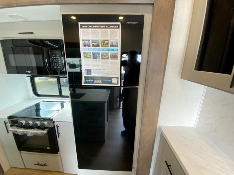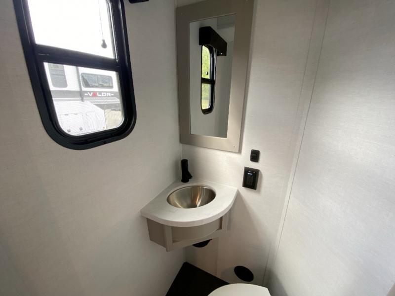 With any Valor All-Access toy hauler by Alliance RV, you will be getting a travel trailer or fifth wheel with exceptional features at a great value! There is a painted fiberglass front cap, Mylar reinforced exterior seals, Azdel-backed fiberglass sidewalls, and a walk-on roof with a seamless PVC roof covering for added strength and durability. The 101" wide-body Benchmark chassis means you can bring along your larger toys, and the multipoint tie-down system will keep your toys safe and secure on the way to the campground. All of your power needs will be met with the Masters of 12 Volt Package that includes a 12V JBL sound system and USB charging stations throughout, plus the Off the Grid Pack comes with a 400-watt solar panel, 30-amp charge controller, and generator prep to keep you going all week long. Some of the interior comforts you'll enjoy are commercial grade vinyl flooring with no carpet so you can easily clean up, black cabinetry hardware, residential LED recessed ceiling lights, and so much more!