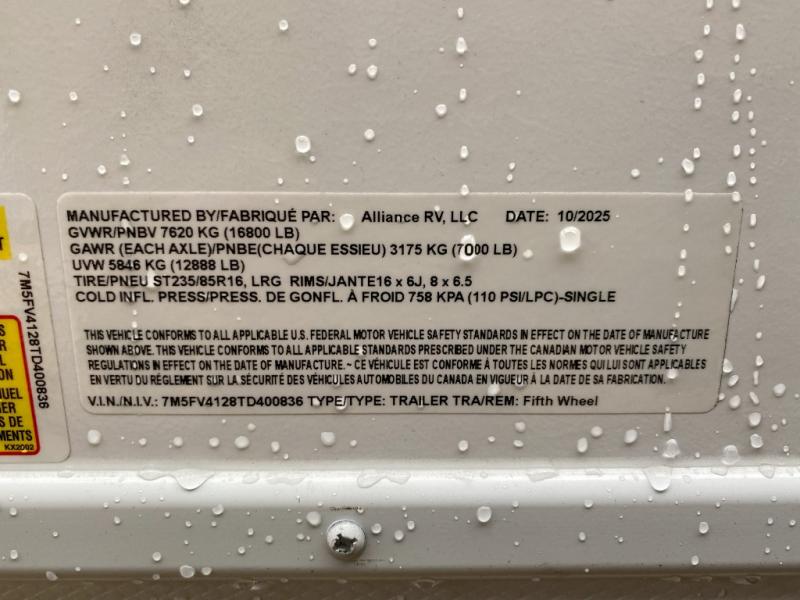 New 2026 Alliance RV Valor 35A14 Toy Hauler Fifth Wheel