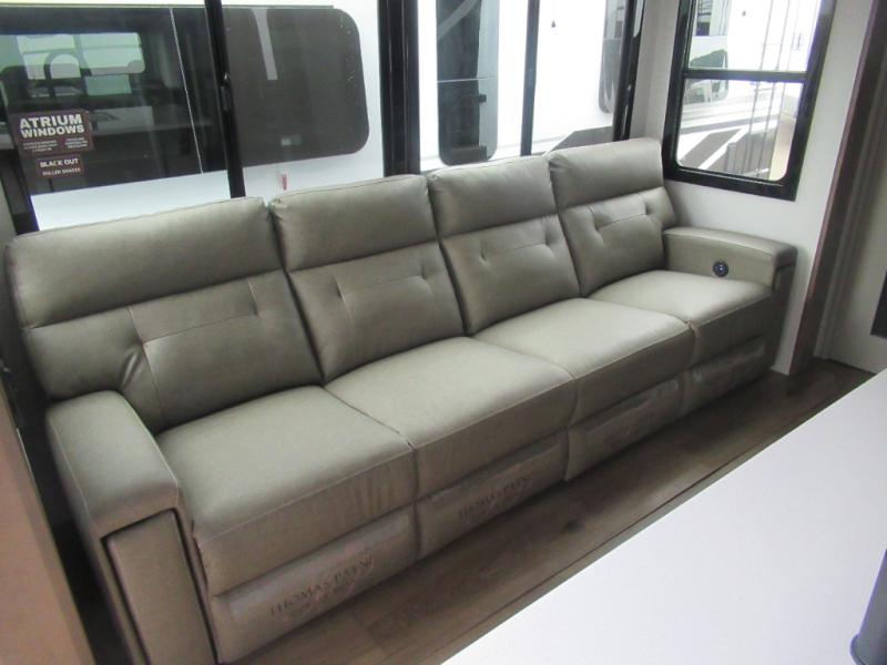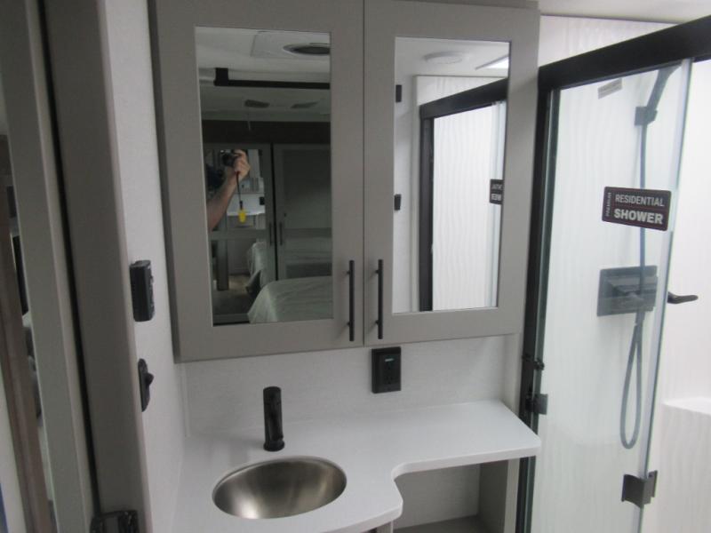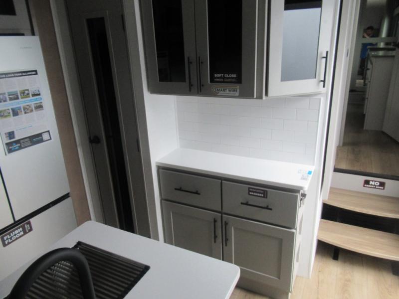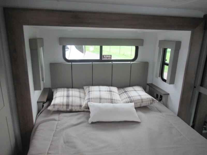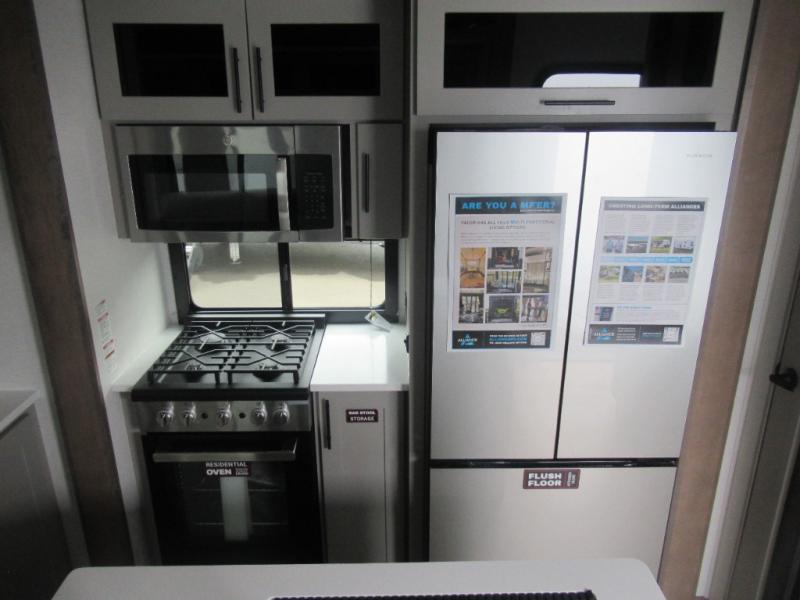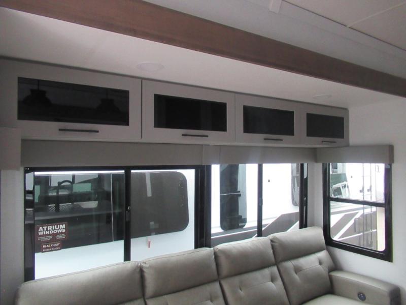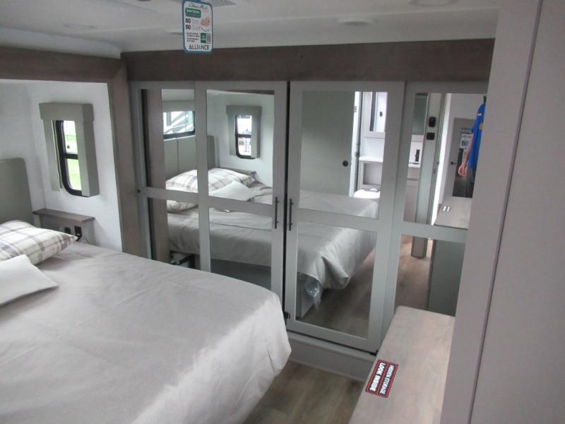 You can bring your toys with you wherever you go with any one of these Alliance RV Valor toy hauler fifth wheels! They are adventure-ready with a quality build from the walk on roof with seamless PVC roof covering to the commercial grade vinyl flooring and MorRyde CRE3000 suspension system. The Performance Running Gear package comes with a 101" wide-body benchmark chassis platform, 7,000 lb. Dexter axles, and a space enhancing drop frame storage compartment to pack in all your riding gear. You can even go off-gridding thanks to the Off the Grid Pack that has two 400 watt solar panels, generator prep, a 40 amp charge controller, and a 100 amp hour lithium iron phosphate battery. Some of the interior comforts you will enjoy are the hardwood cabinet doors and drawers, solid surface kitchen countertops, and commercial grade vinyl flooring with no carpet to make clean up a breeze. The Valor toy haulers are also the Masters of 12 Volt with USB charging station throughout, a stainless steel refrigerator, and more 12 volt features to make camping hassle-free!