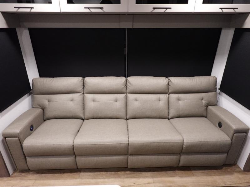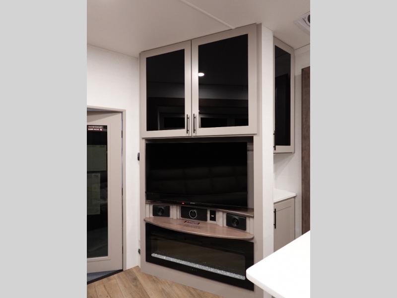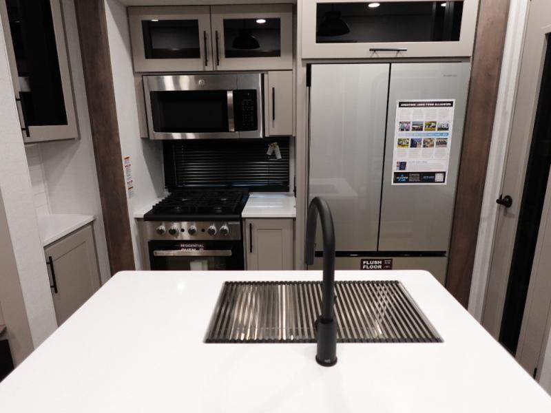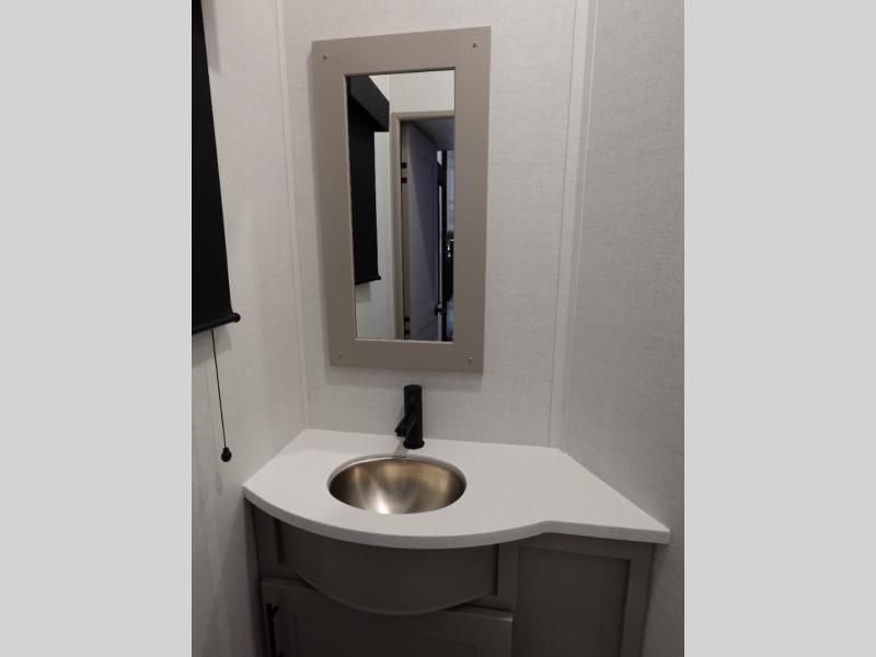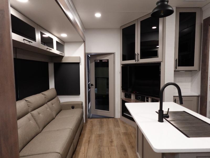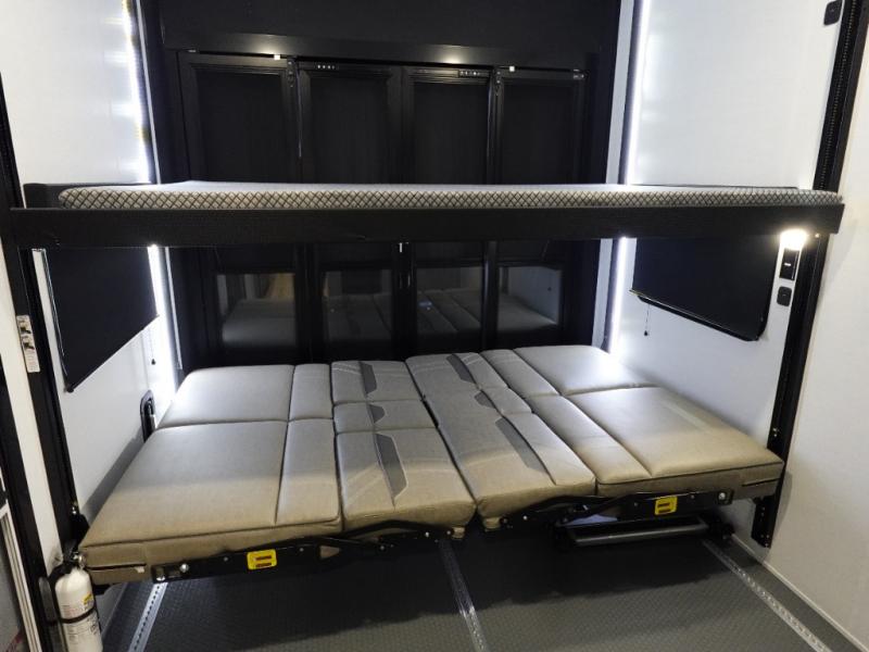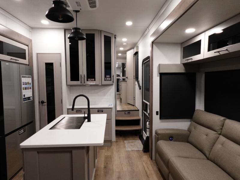 You can bring your toys with you wherever you go with any one of these Alliance RV Valor toy hauler fifth wheels! They are adventure-ready with a quality build from the walk on roof with seamless PVC roof covering to the commercial grade vinyl flooring and MorRyde CRE3000 suspension system. The Performance Running Gear package comes with a 101" wide-body benchmark chassis platform, 7,000 lb. Dexter axles, and a space enhancing drop frame storage compartment to pack in all your riding gear. You can even go off-gridding thanks to the Off the Grid Pack that has two 400 watt solar panels, generator prep, a 40 amp charge controller, and a 100 amp hour lithium iron phosphate battery. Some of the interior comforts you will enjoy are the hardwood cabinet doors and drawers, solid surface kitchen countertops, and commercial grade vinyl flooring with no carpet to make clean up a breeze. The Valor toy haulers are also the Masters of 12 Volt with USB charging station throughout, a stainless steel refrigerator, and more 12 volt features to make camping hassle-free!