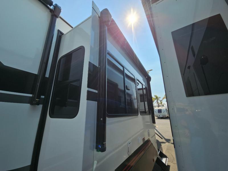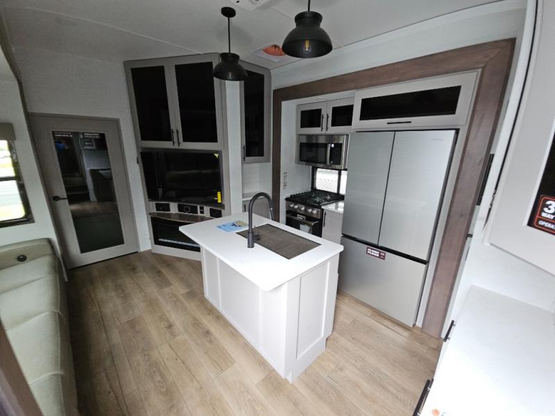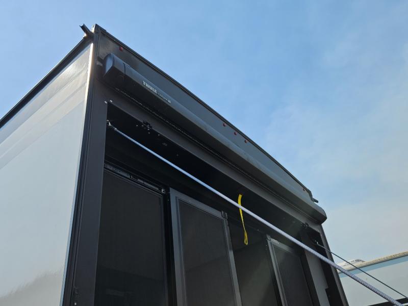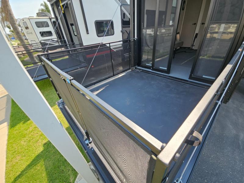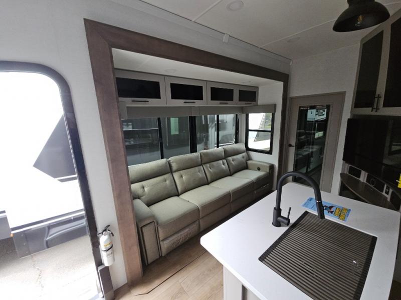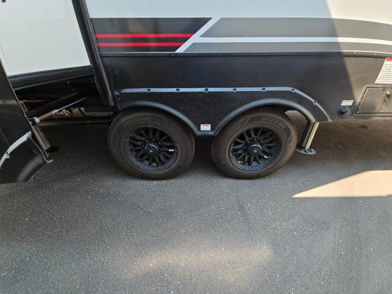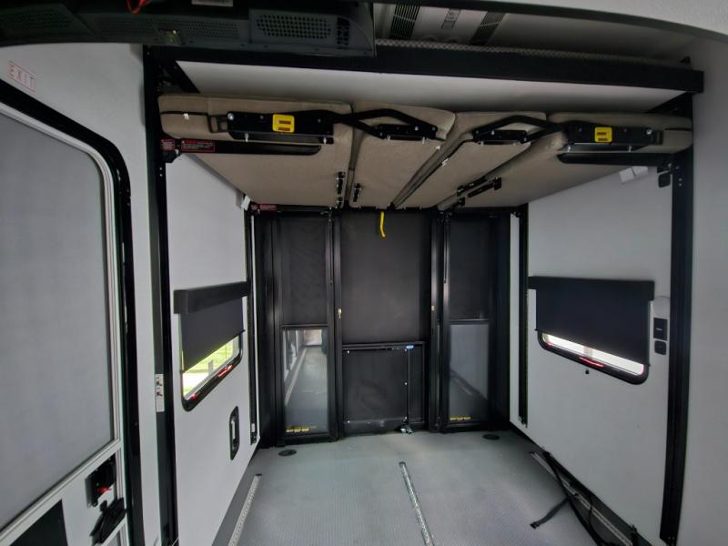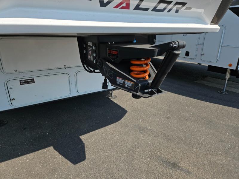 You can bring your toys with you wherever you go with any one of these Alliance RV Valor toy hauler fifth wheels! They are adventure-ready with a quality build from the walk on roof with seamless PVC roof covering to the commercial grade vinyl flooring and MorRyde CRE3000 suspension system. The Performance Running Gear package comes with a 101" wide-body benchmark chassis platform, 7,000 lb. Dexter axles, and a space enhancing drop frame storage compartment to pack in all your riding gear. You can even go off-gridding thanks to the Off the Grid Pack that has two 400 watt solar panels, generator prep, a 40 amp charge controller, and a 100 amp hour lithium iron phosphate battery. Some of the interior comforts you will enjoy are the hardwood cabinet doors and drawers, solid surface kitchen countertops, and commercial grade vinyl flooring with no carpet to make clean up a breeze. The Valor toy haulers are also the Masters of 12 Volt with USB charging station throughout, a stainless steel refrigerator, and more 12 volt features to make camping hassle-free!