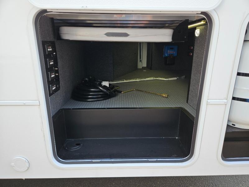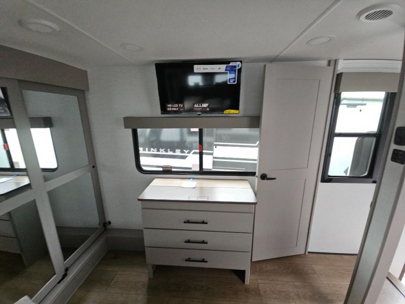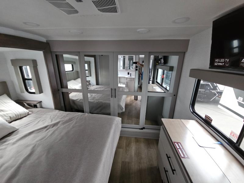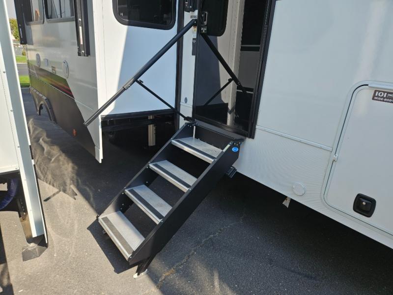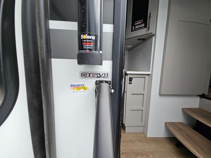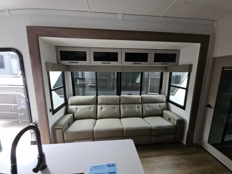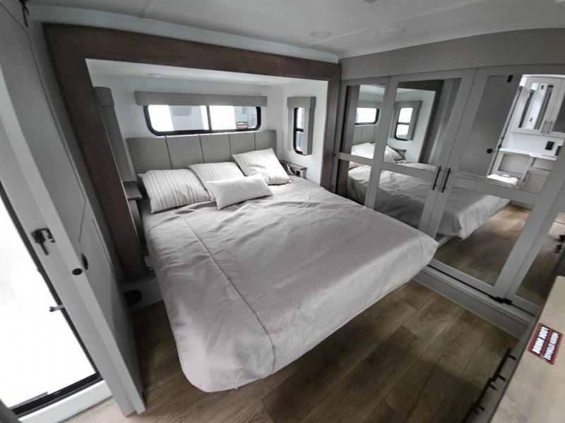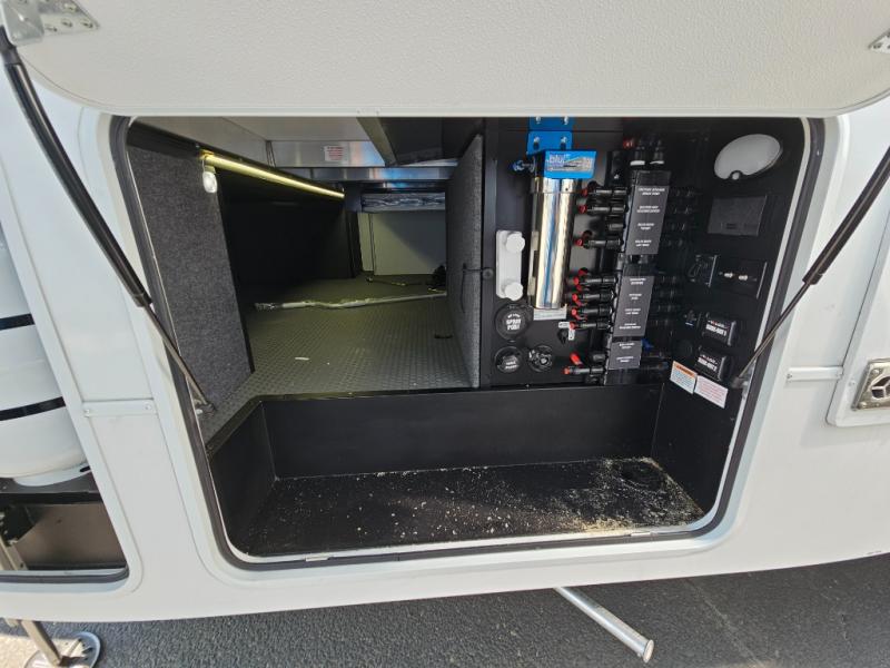 You can bring your toys with you wherever you go with any one of these Alliance RV Valor toy hauler fifth wheels! They are adventure-ready with a quality build from the walk on roof with seamless PVC roof covering to the commercial grade vinyl flooring and MorRyde CRE3000 suspension system. The Performance Running Gear package comes with a 101" wide-body benchmark chassis platform, 7,000 lb. Dexter axles, and a space enhancing drop frame storage compartment to pack in all your riding gear. You can even go off-gridding thanks to the Off the Grid Pack that has two 400 watt solar panels, generator prep, a 40 amp charge controller, and a 100 amp hour lithium iron phosphate battery. Some of the interior comforts you will enjoy are the hardwood cabinet doors and drawers, solid surface kitchen countertops, and commercial grade vinyl flooring with no carpet to make clean up a breeze. The Valor toy haulers are also the Masters of 12 Volt with USB charging station throughout, a stainless steel refrigerator, and more 12 volt features to make camping hassle-free!