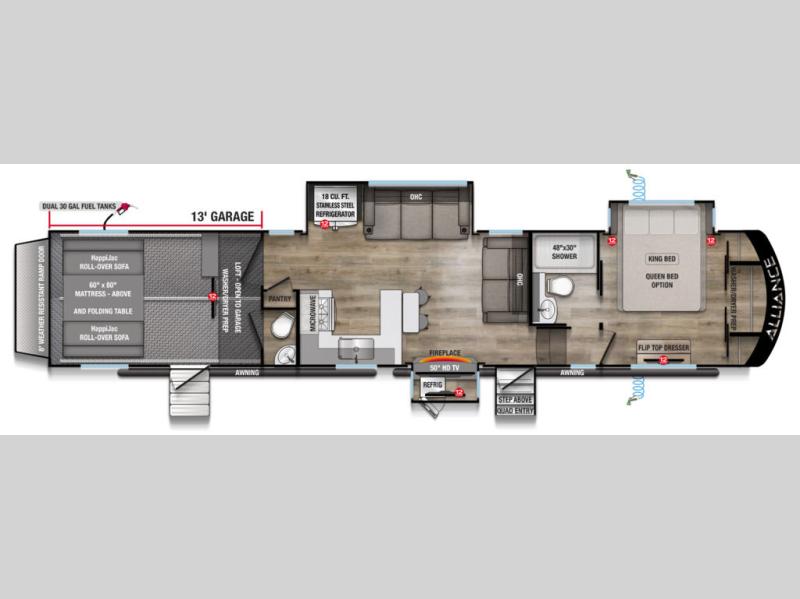 Alliance RV Valor toy hauler 40V13 highlights: