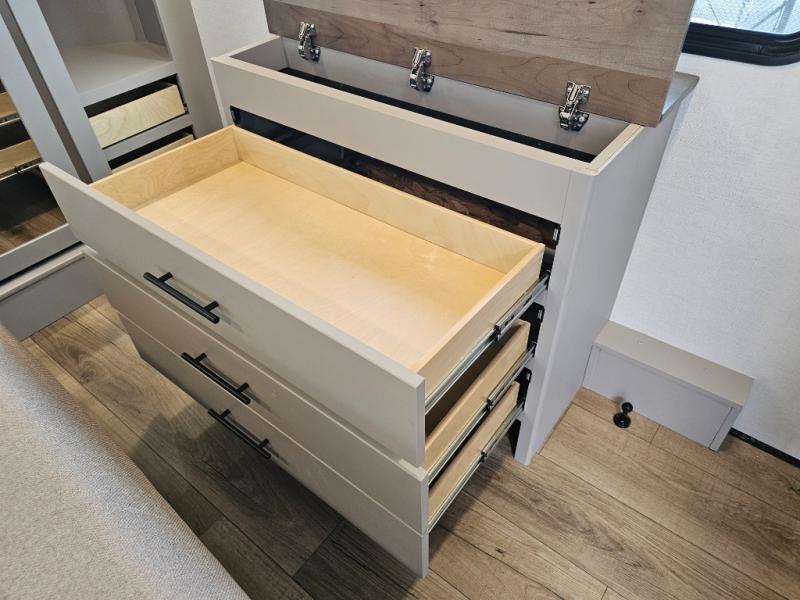 The Valor 41V13 delivers the perfect balance of toy hauler functionality and residential comfort, offering expansive garage space, multiple sleeping areas, and premium living features. Whether you’re hauling toys, traveling with family, or hosting guests, this fifth wheel provides the space, convenience, and durability to support every adventure.
