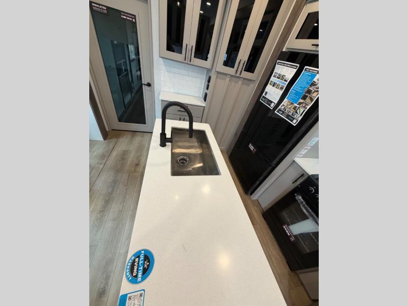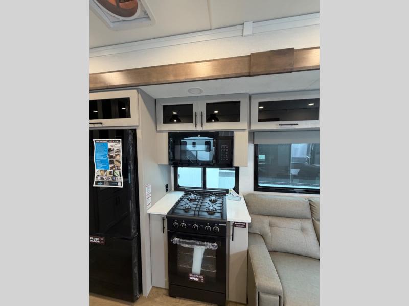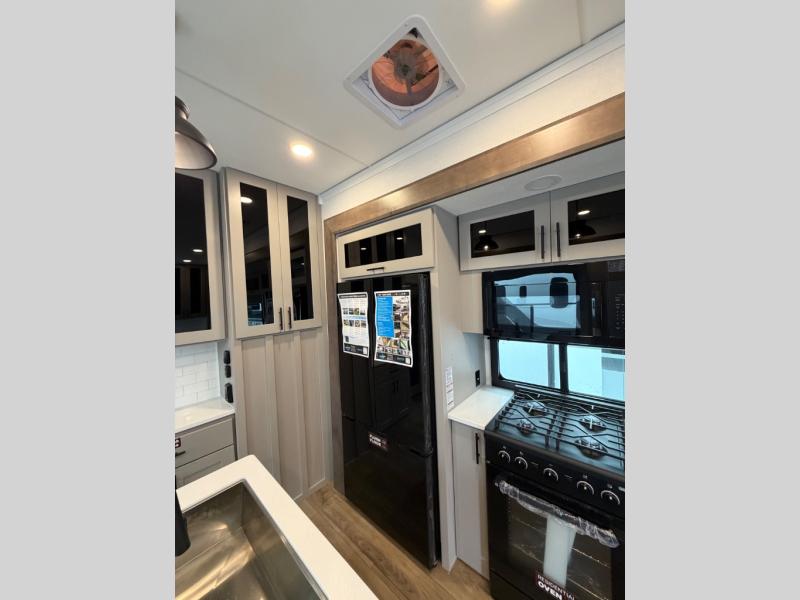 Full kitchen with 3-burner range, convection microwave & 12V refrigerator