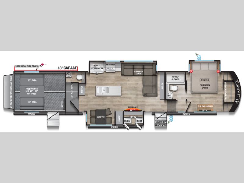 The 2026 Valor 41V13 by Alliance RV is a luxury fifth wheel toy hauler built for extended travel and serious adventure. With a 13' garage, dual bathrooms, and premium finishes, it’s designed for RVers who want maximum functionality without sacrificing comfort.