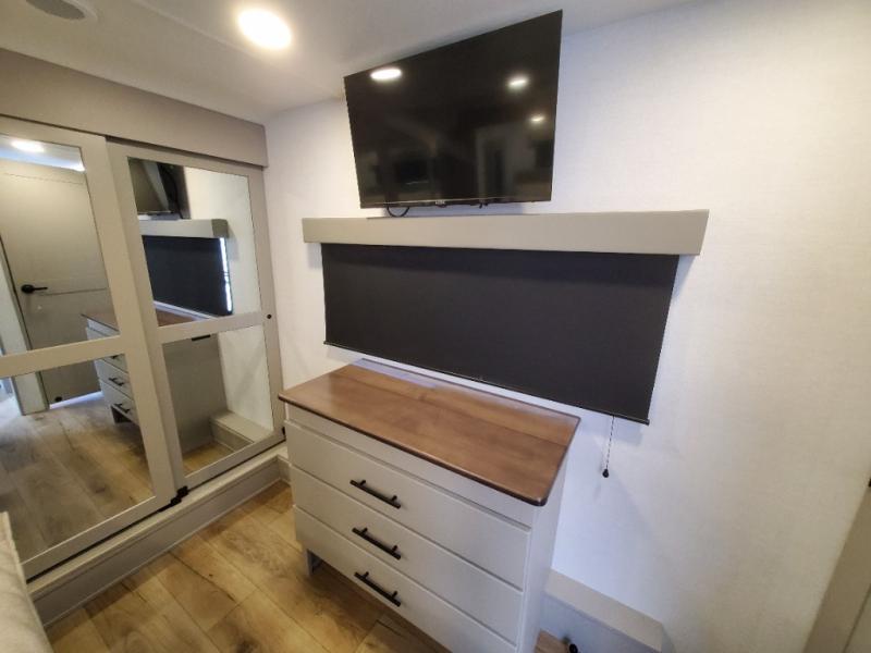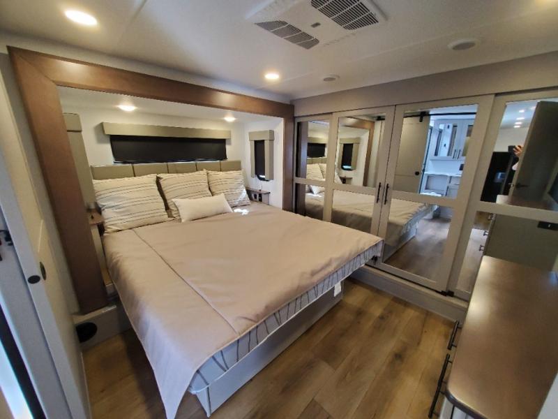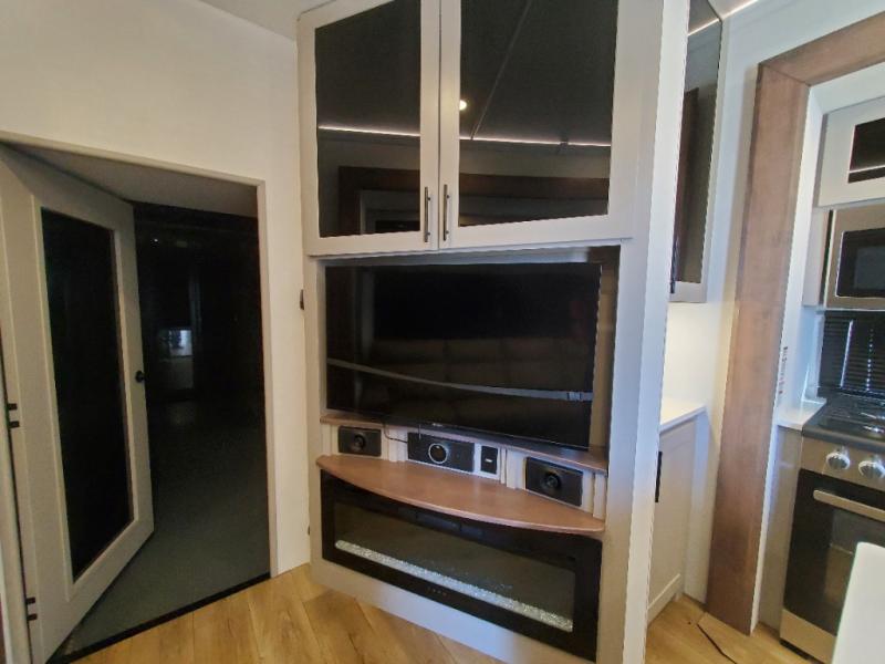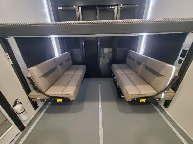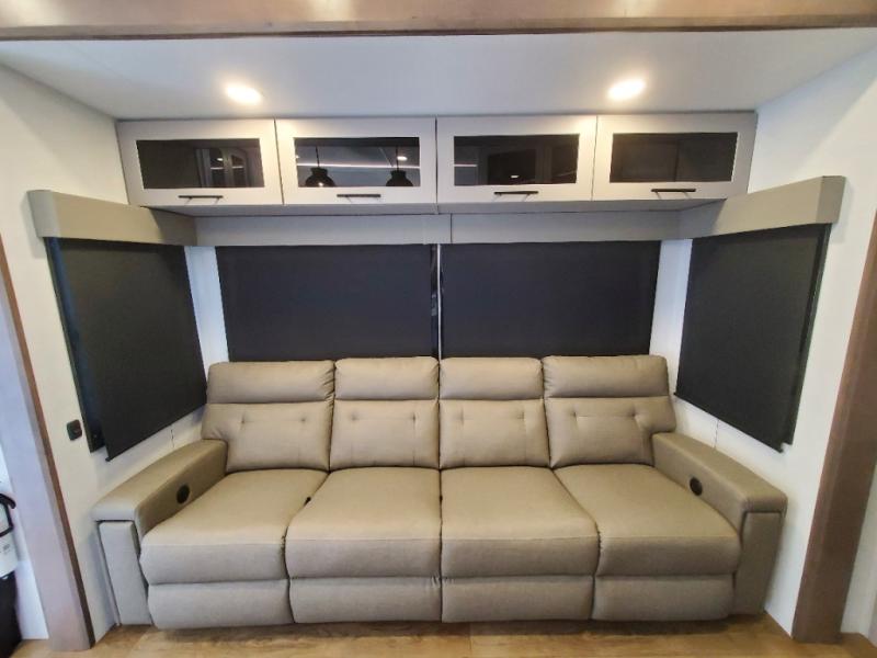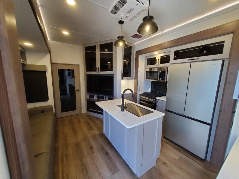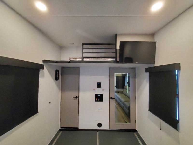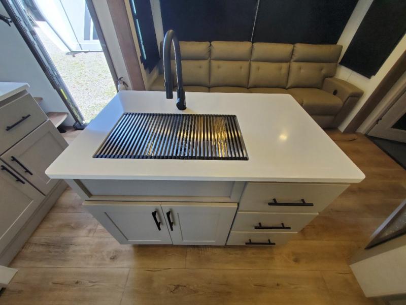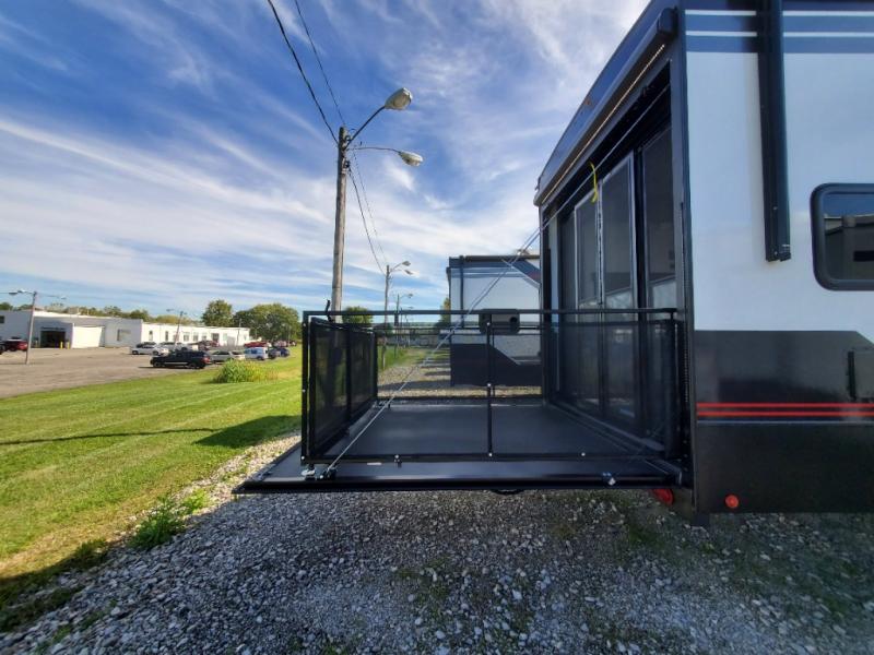 You can bring your toys with you wherever you go with any one of these Alliance RV Valor toy hauler fifth wheels! They are adventure-ready with a quality build from the walk on roof with seamless PVC roof covering to the commercial grade vinyl flooring and MorRyde CRE3000 suspension system. The Performance Running Gear package comes with a 101" wide-body benchmark chassis platform, 7,000 lb. Dexter axles, and a space enhancing drop frame storage compartment to pack in all your riding gear. You can even go off-gridding thanks to the Off the Grid Pack that has two 400 watt solar panels, generator prep, a 40 amp charge controller, and a 100 amp hour lithium iron phosphate battery. Some of the interior comforts you will enjoy are the hardwood cabinet doors and drawers, solid surface kitchen countertops, and commercial grade vinyl flooring with no carpet to make clean up a breeze. The Valor toy haulers are also the Masters of 12 Volt with USB charging station throughout, a stainless steel refrigerator, and more 12 volt features to make camping hassle-free!