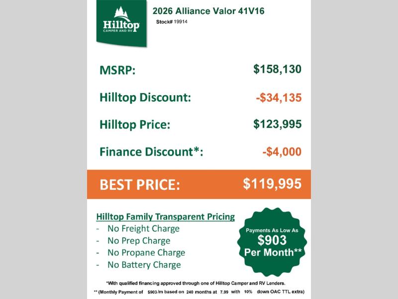 New 2026 Alliance RV Valor 41V16 Toy Hauler Fifth Wheel