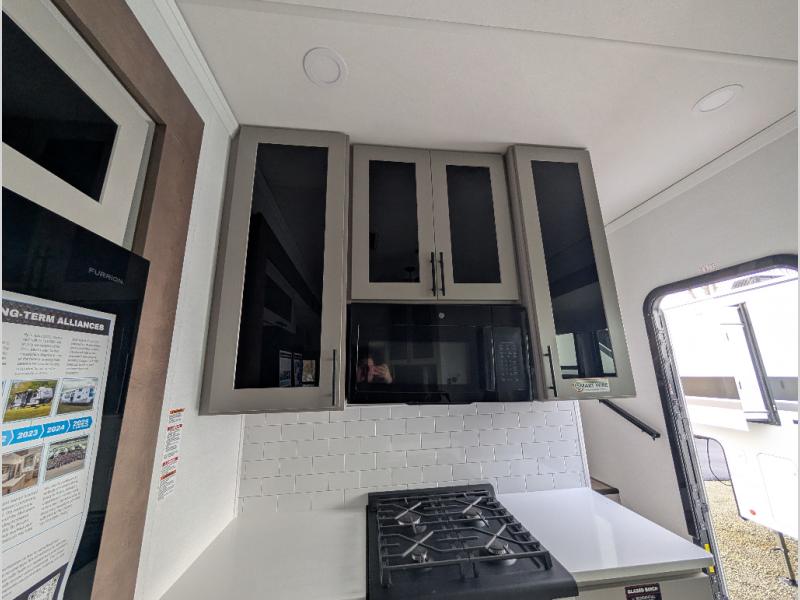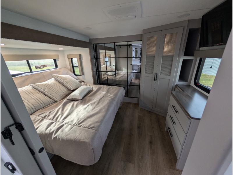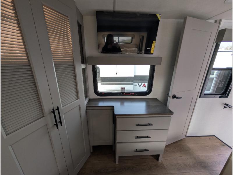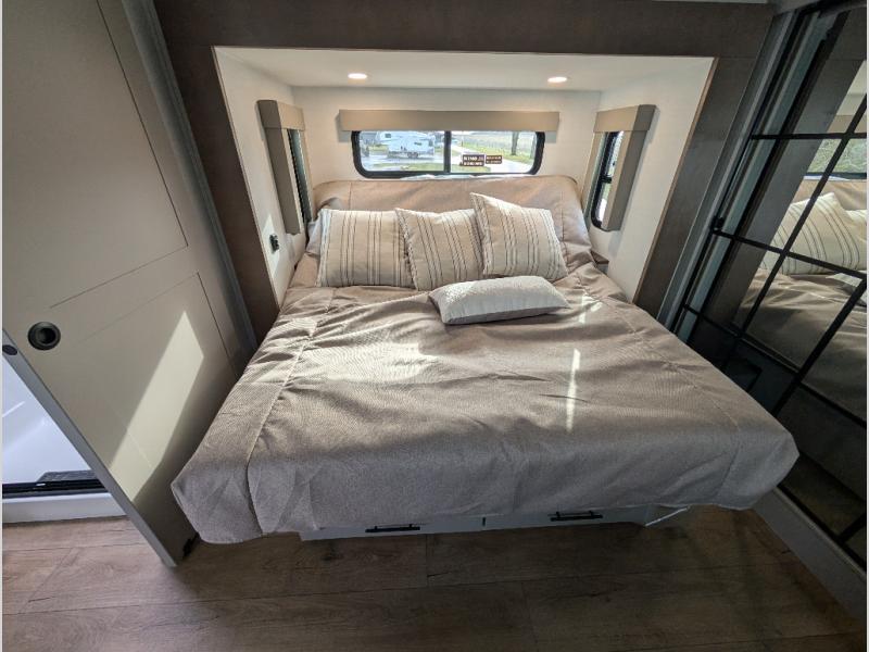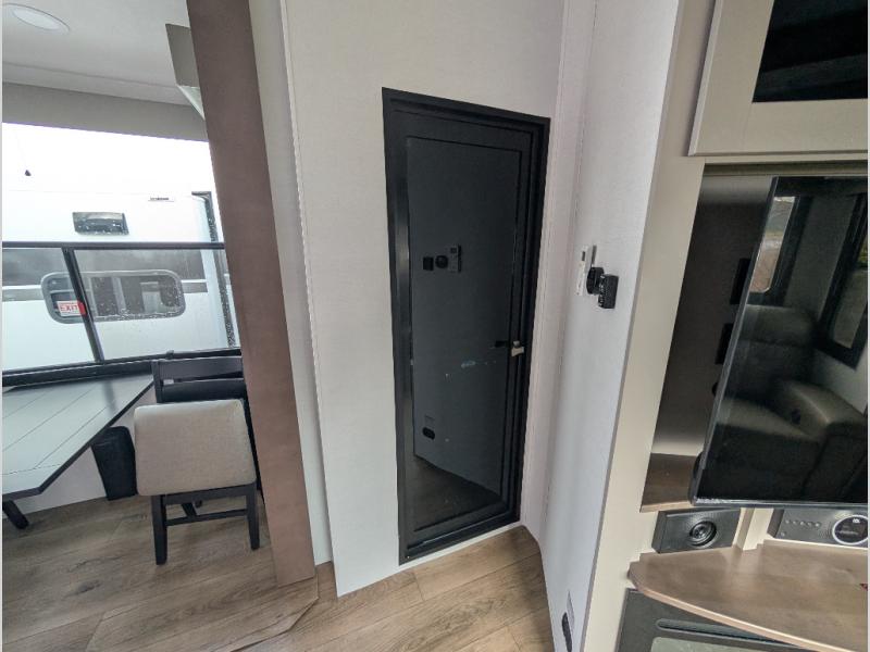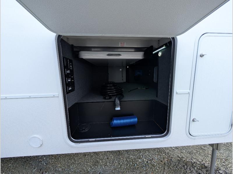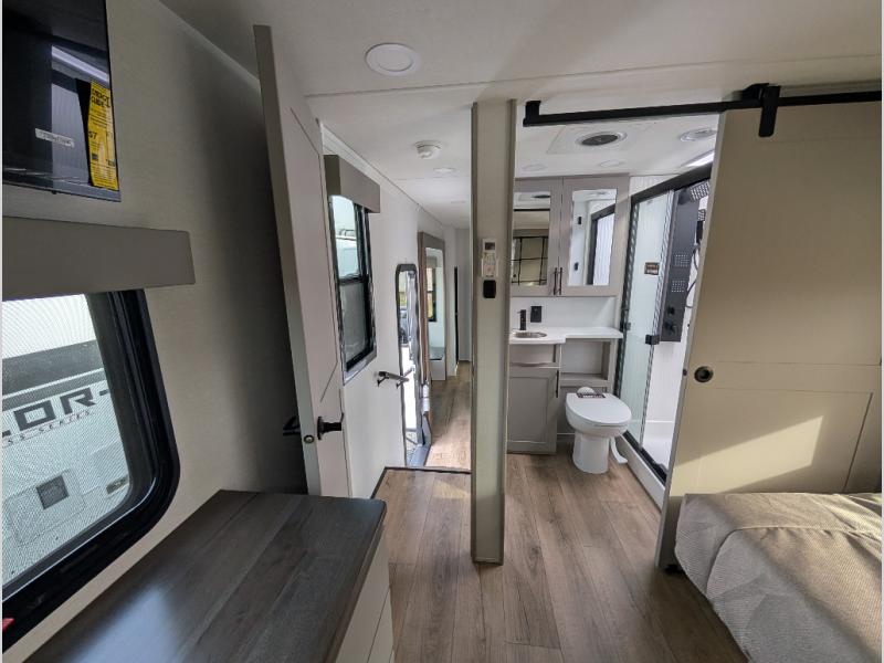 You can bring your toys with you wherever you go with any one of these Alliance RV Valor toy hauler fifth wheels! They are adventure-ready with a quality build from the walk on roof with seamless PVC roof covering to the commercial grade vinyl flooring and MorRyde CRE3000 suspension system. The Performance Running Gear package comes with a 101" wide-body benchmark chassis platform, 7,000 lb. Dexter axles, and a space enhancing drop frame storage compartment to pack in all your riding gear. You can even go off-gridding thanks to the Off the Grid Pack that has two 400-watt solar panels, generator prep, a 60-amp charge controller, and a 100-amp hour lithium iron phosphate battery. Some of the interior comforts you will enjoy are the hardwood cabinet doors and drawers, solid surface kitchen countertops, and commercial grade vinyl flooring with no carpet to make clean up a breeze. The Valor toy haulers are also the Masters of 12 Volt with USB charging station throughout, a 12V refrigerator, and more 12-volt features to make camping hassle-free!