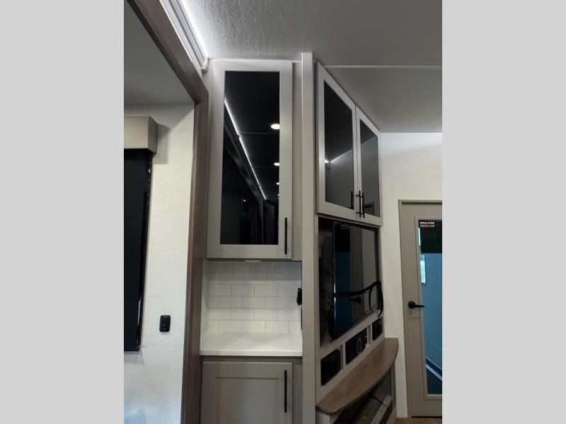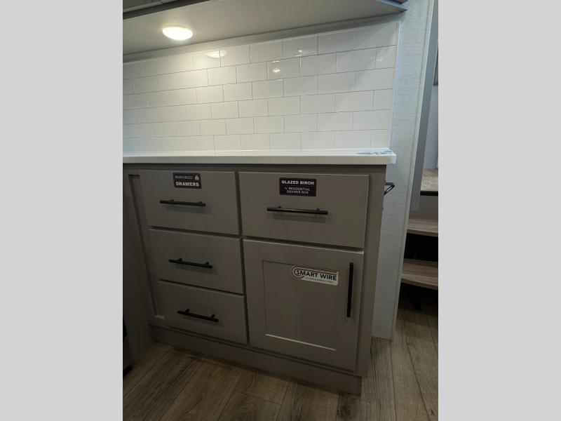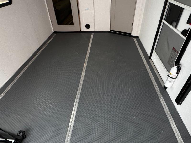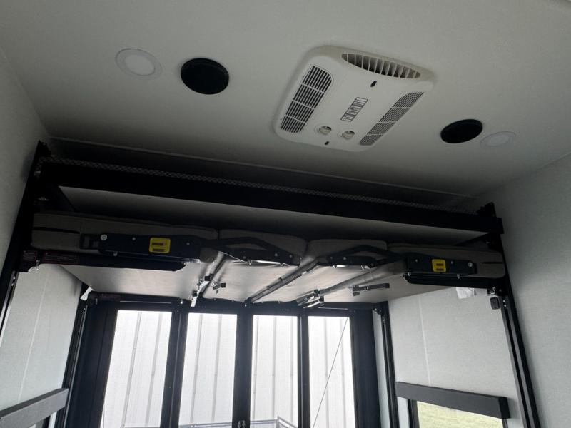 You can bring your toys with you wherever you go with any one of these Alliance RV Valor toy hauler fifth wheels! They are adventure-ready with a quality build from the walk on roof with seamless PVC roof covering to the commercial grade vinyl flooring and MorRyde CRE3000 suspension system. The Performance Running Gear package comes with a 101" wide-body benchmark chassis platform, 7,000 lb. Dexter axles, and a space enhancing drop frame storage compartment to pack in all your riding gear. You can even go off-gridding thanks to the Off the Grid Pack that has two 400 watt solar panels, generator prep, a 40 amp charge controller, and a 100 amp hour lithium iron phosphate battery. Some of the interior comforts you will enjoy are the hardwood cabinet doors and drawers, solid surface kitchen countertops, and commercial grade vinyl flooring with no carpet to make clean up a breeze. The Valor toy haulers are also the Master of 12 Volt with USB charging station throughout, a stainless steel refrigerator, and more 12 volt features to make camping hassle-free!