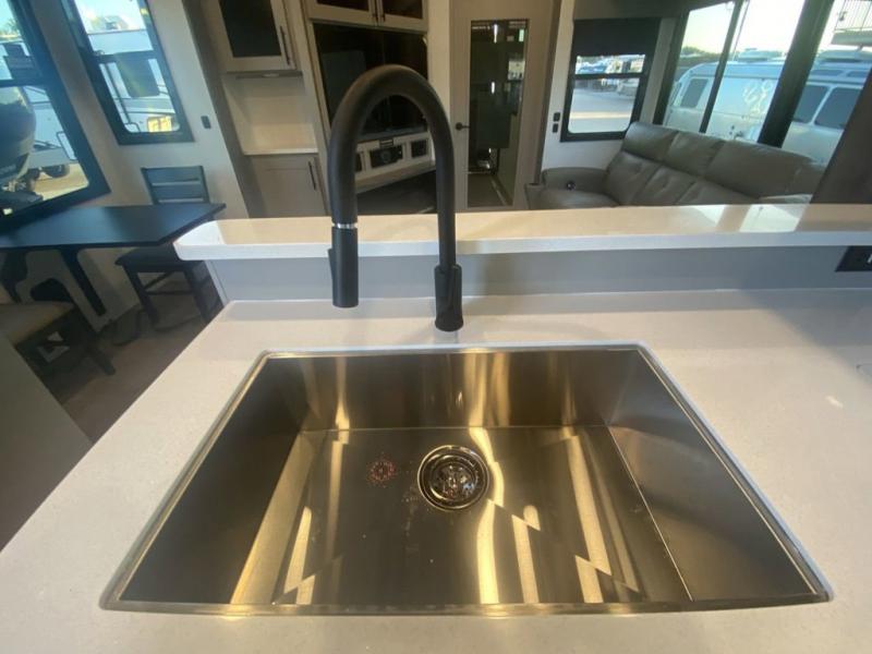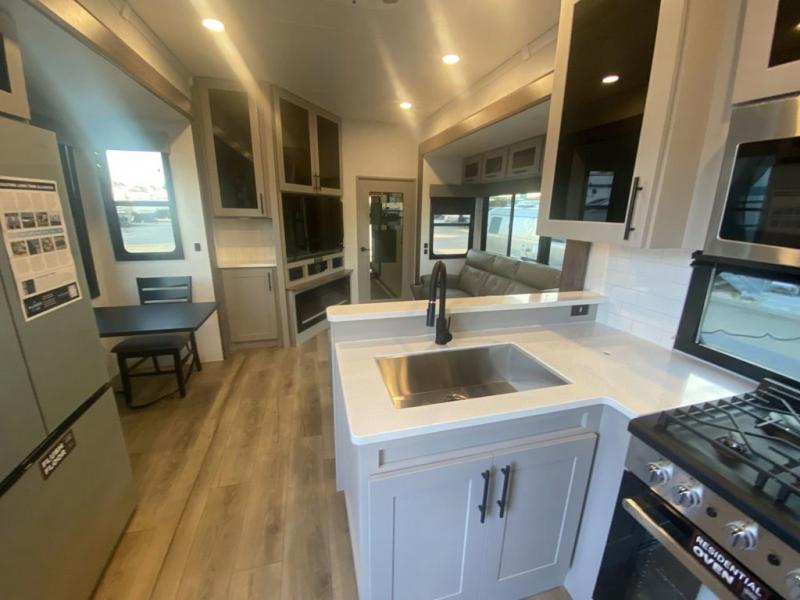 You can bring your toys with you wherever you go with any one of these Alliance RV Valor toy hauler fifth wheels! They are adventure-ready with a quality build from the walk on roof with seamless PVC roof covering to the commercial grade vinyl flooring and MorRyde CRE3000 suspension system. The Performance Running Gear package comes with a 101" wide-body benchmark chassis platform, 7,000 lb. Dexter axles, and a space enhancing drop frame storage compartment to pack in all your riding gear. You can even go off-gridding thanks to the Off the Grid Pack that has two 400 watt solar panels, generator prep, a 40 amp charge controller, and a 100 amp hour lithium iron phosphate battery. Some of the interior comforts you will enjoy are the hardwood cabinet doors and drawers, solid surface kitchen countertops, and commercial grade vinyl flooring with no carpet to make clean up a breeze. The Valor toy haulers are also the Master of 12 Volt with USB charging station throughout, a stainless steel refrigerator, and more 12 volt features to make camping hassle-free!