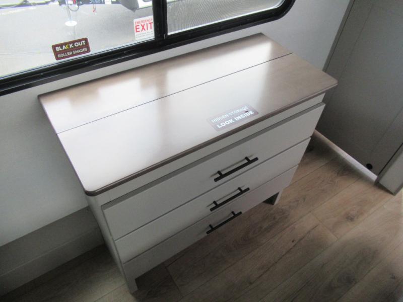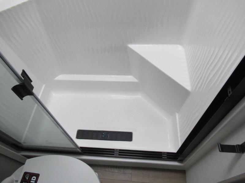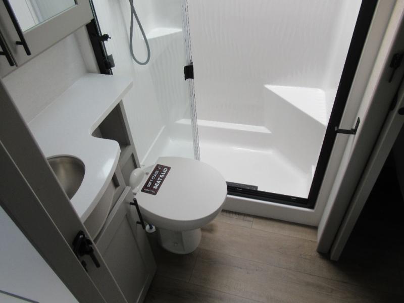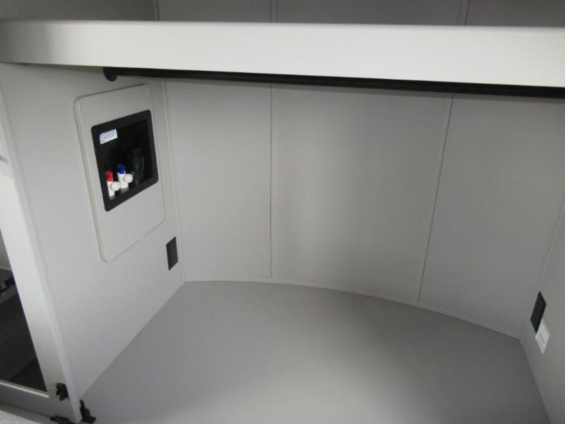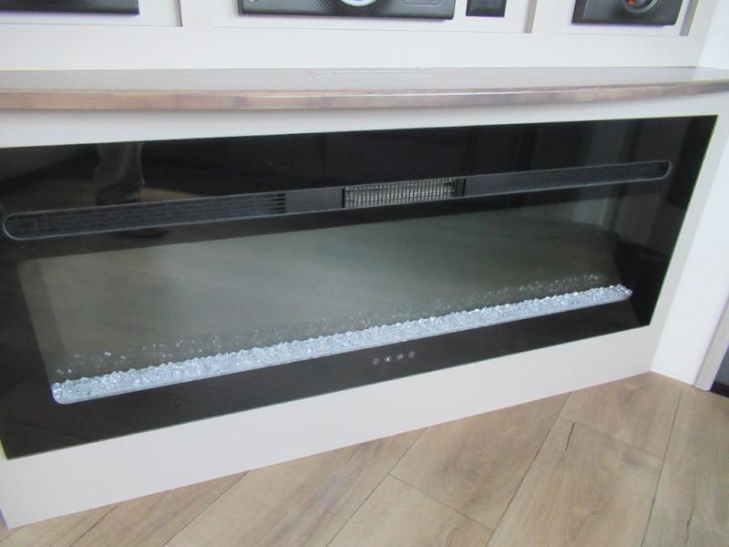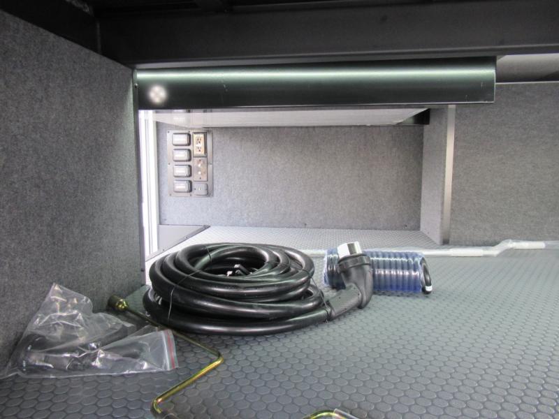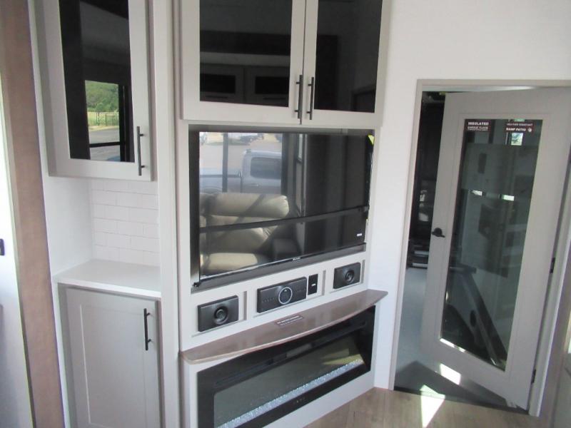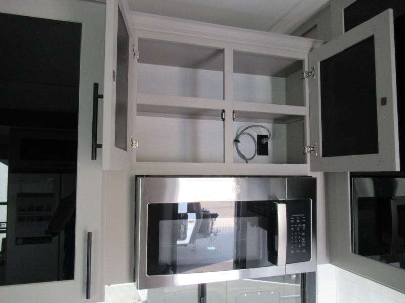 The whole gang will love camping in this toy hauler with a 14' garage for your toys and gear. Once you have arrived at your destination, you can set up the HappiJac roll-over sofas with a queen bed above them, and also a loft which opens to the garage area as well. A half bath is also available off the garage which is an added convenience for those sleeping in this converted area, and for those coming in off the trail so that they do not have to track all through the main unit to use the bathroom. The chef can prepare great meals for their hungry crew with the fully equipped kitchen including a four burner cooktop, a stainless steel 12V refrigerator, large sink, and plenty of countertop prep space. The rest of the gang can be relaxing on the large L-shaped sofa slide watching the 50" HDTV and enjoying the fireplace, or playing a game of cards at the dining table with four chairs. The front private bedroom features a king bed slide for more interior space, a flip top dresser for all of your belongings, and a front wardrobe with washer and dryer prep, plus it has an entrance into the dual entry bathroom!