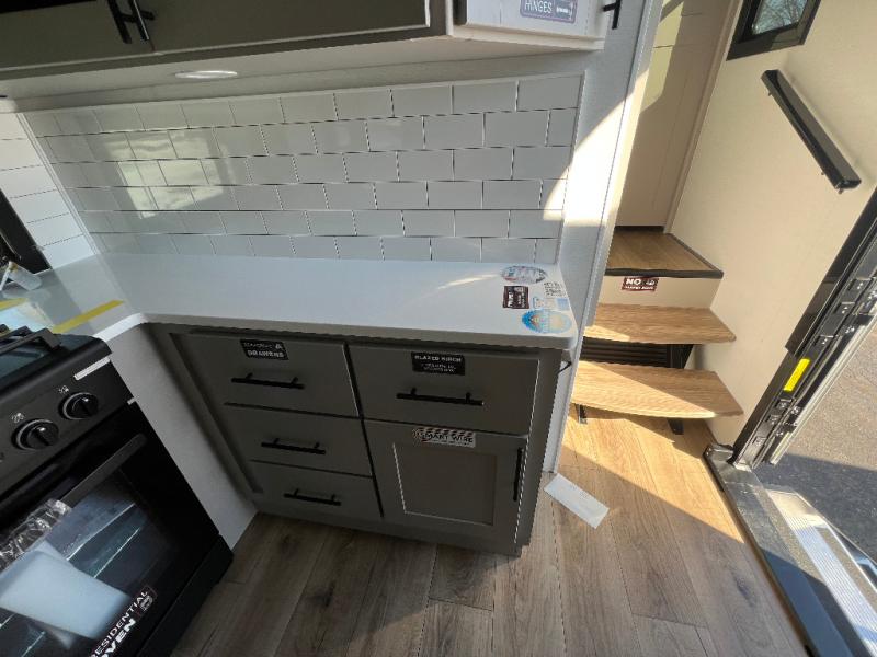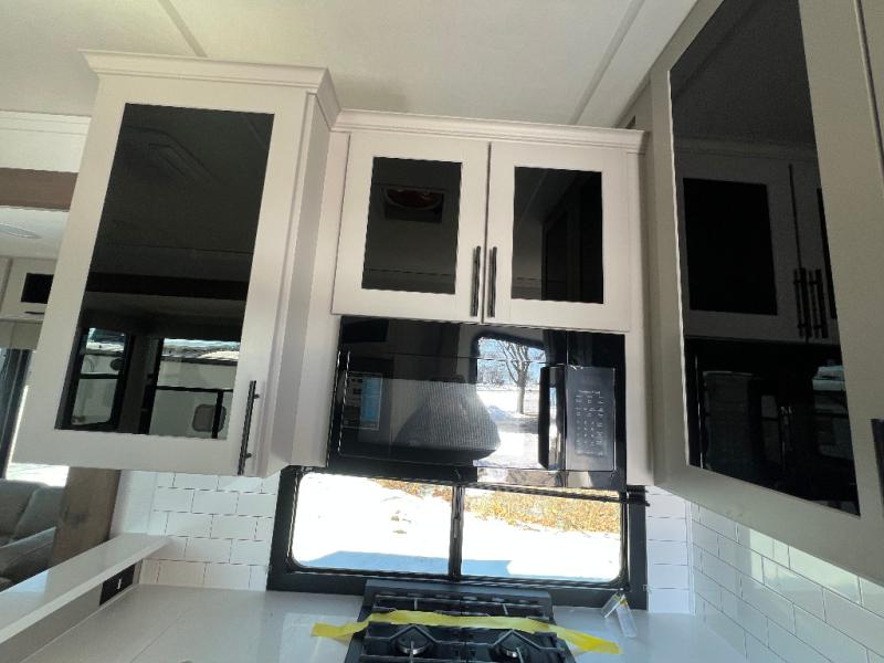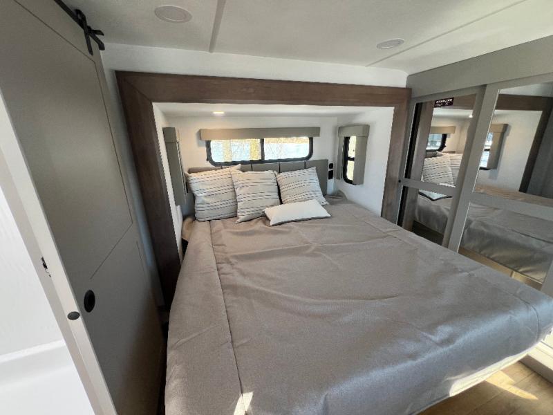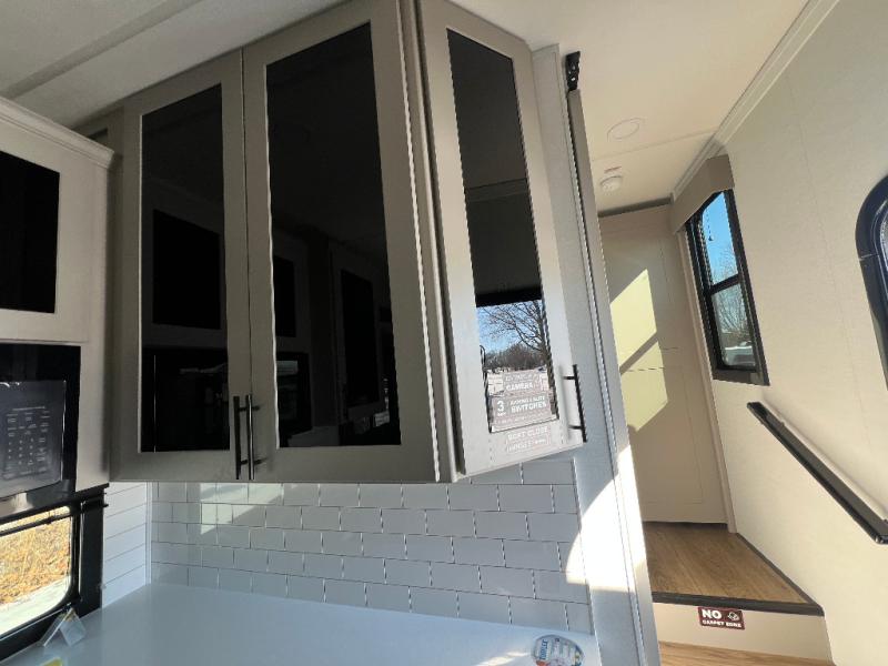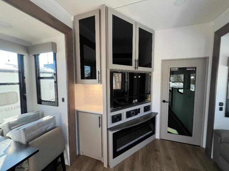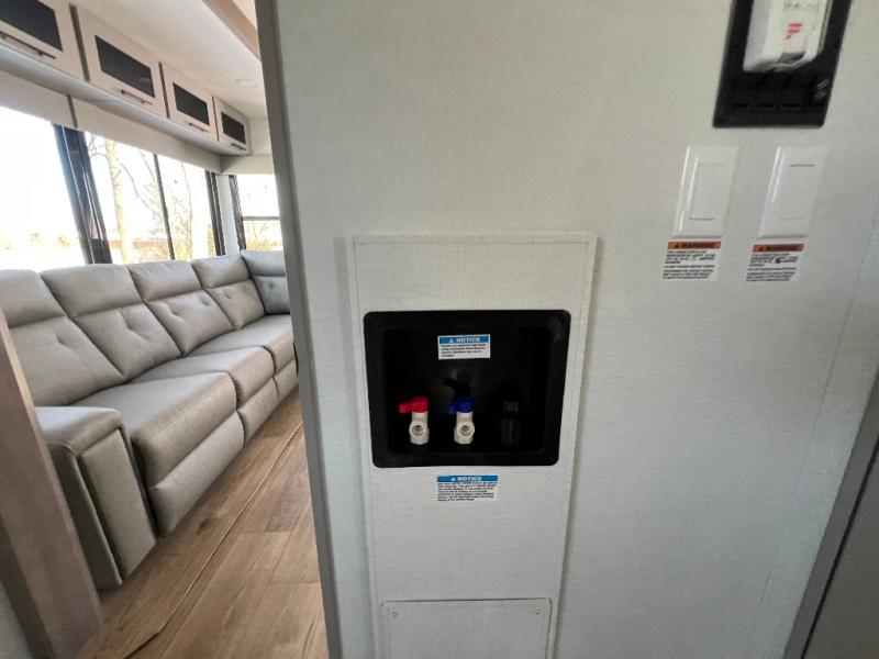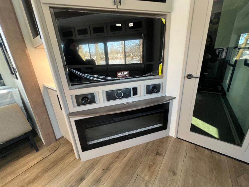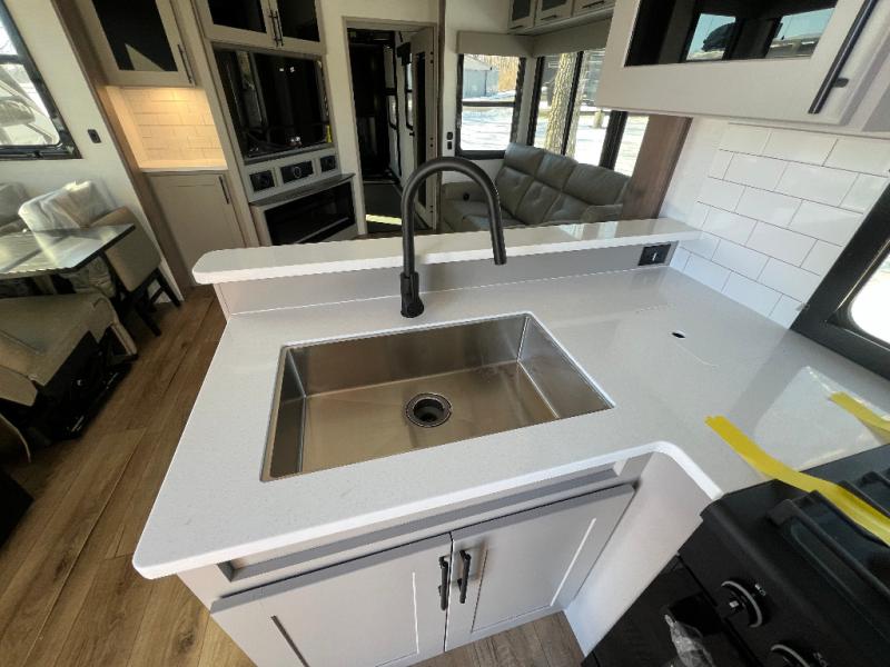 You can bring your toys with you wherever you go with any one of these Alliance RV Valor toy hauler fifth wheels! They are adventure-ready with a quality build from the walk on roof with seamless PVC roof covering to the commercial grade vinyl flooring and MorRyde CRE3000 suspension system. The Performance Running Gear package comes with a 101" wide-body benchmark chassis platform, 7,000 lb. Dexter axles, and a space enhancing drop frame storage compartment to pack in all your riding gear. You can even go off-gridding thanks to the Off the Grid Pack that has two 400-watt solar panels, generator prep, a 60-amp charge controller, and a 100-amp hour lithium iron phosphate battery. Some of the interior comforts you will enjoy are the hardwood cabinet doors and drawers, solid surface kitchen countertops, and commercial grade vinyl flooring with no carpet to make clean up a breeze. The Valor toy haulers are also the Master of 12 Volt with USB charging station throughout, a 12V refrigerator, and more 12-volt features to make camping hassle-free!