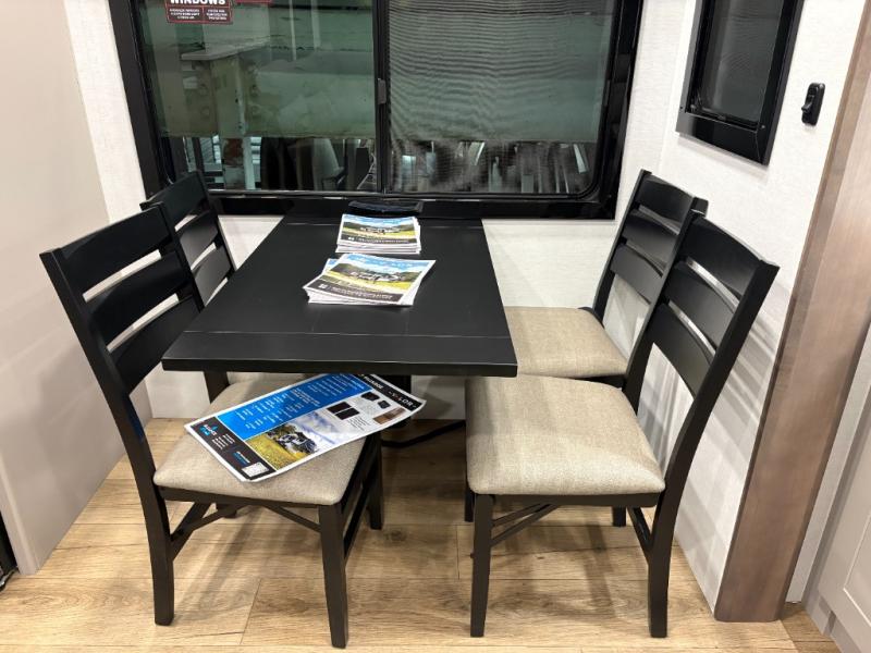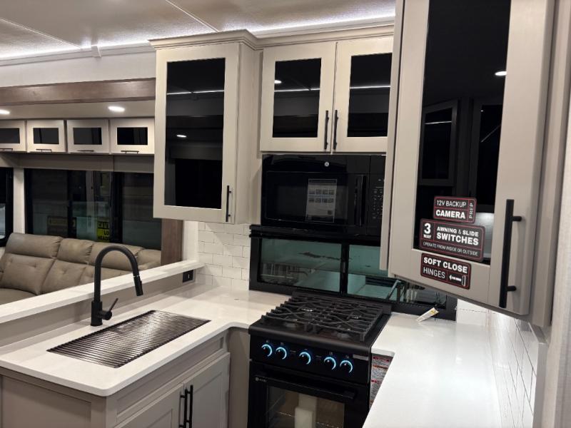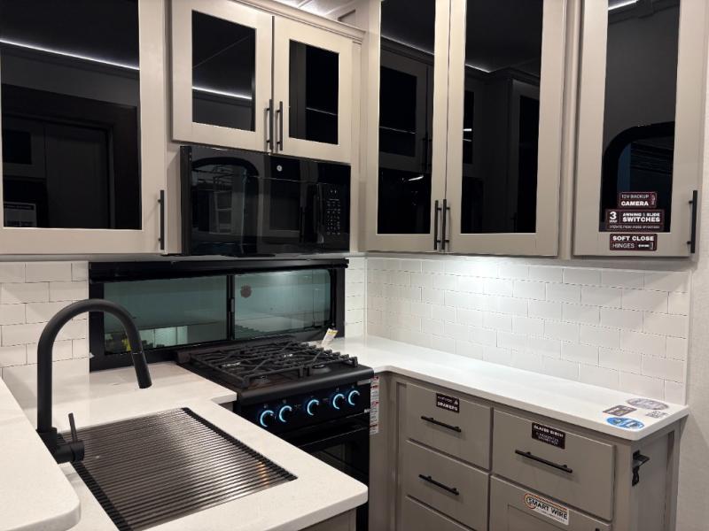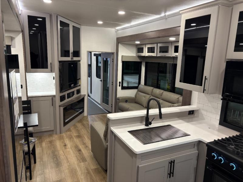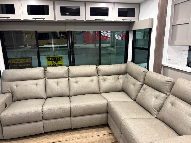 You can bring your toys with you wherever you go with any one of these Alliance RV Valor toy hauler fifth wheels! They are adventure-ready with a quality build from the walk on roof with seamless PVC roof covering to the commercial grade vinyl flooring and MorRyde CRE3000 suspension system. The Performance Running Gear package comes with a 101" wide-body benchmark chassis platform, 7,000 lb. Dexter axles, and a space enhancing drop frame storage compartment to pack in all your riding gear. You can even go off-gridding thanks to the Off the Grid Pack that has two 400-watt solar panels, generator prep, a 60-amp charge controller, and a 100-amp hour lithium iron phosphate battery. Some of the interior comforts you will enjoy are the hardwood cabinet doors and drawers, solid surface kitchen countertops, and commercial grade vinyl flooring with no carpet to make clean up a breeze. The Valor toy haulers are also the Master of 12 Volt with USB charging station throughout, a 12V refrigerator, and more 12-volt features to make camping hassle-free!