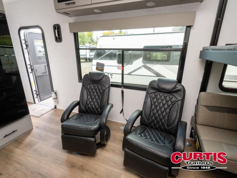 With any Valor All-Access toy hauler by Alliance RV, you will be getting a travel trailer or fifth wheel with exceptional features at a great value! There is a painted fiberglass front cap, Mylar reinforced exterior seals, Azdel-backed fiberglass sidewalls, and a walk-on roof with a seamless PVC roof covering for added strength and durability. The 101" wide-body Benchmark chassis means you can bring along your larger toys, and the multipoint tie-down system will keep your toys safe and secure on the way to the campground. All of your power needs will be met with the Masters of 12 Volt Package that includes a 12V JBL sound system and USB charging stations throughout, plus the Off the Grid Pack comes with a 400-watt solar panel, 30-amp charge controller, and generator prep to keep you going all week long. Some of the interior comforts you'll enjoy are commercial grade vinyl flooring with no carpet so you can easily clean up, black cabinetry hardware, residential LED recessed ceiling lights, and so much more!