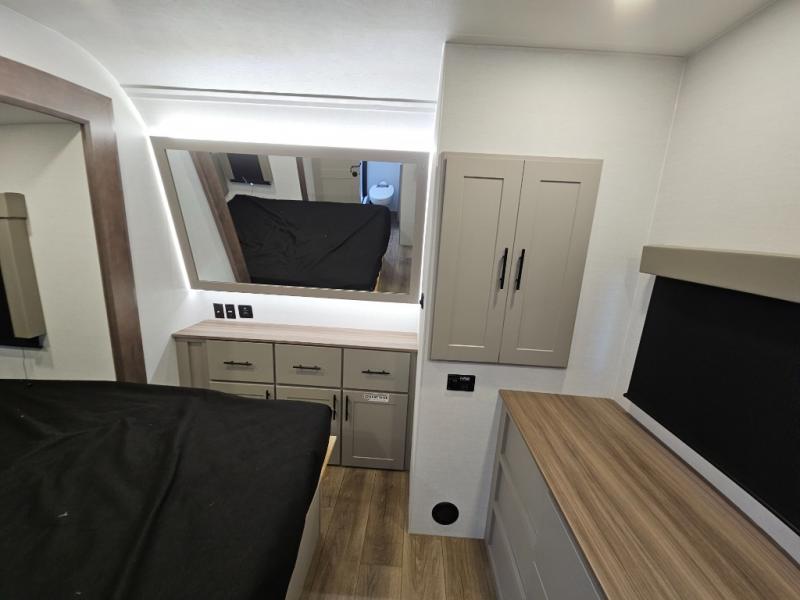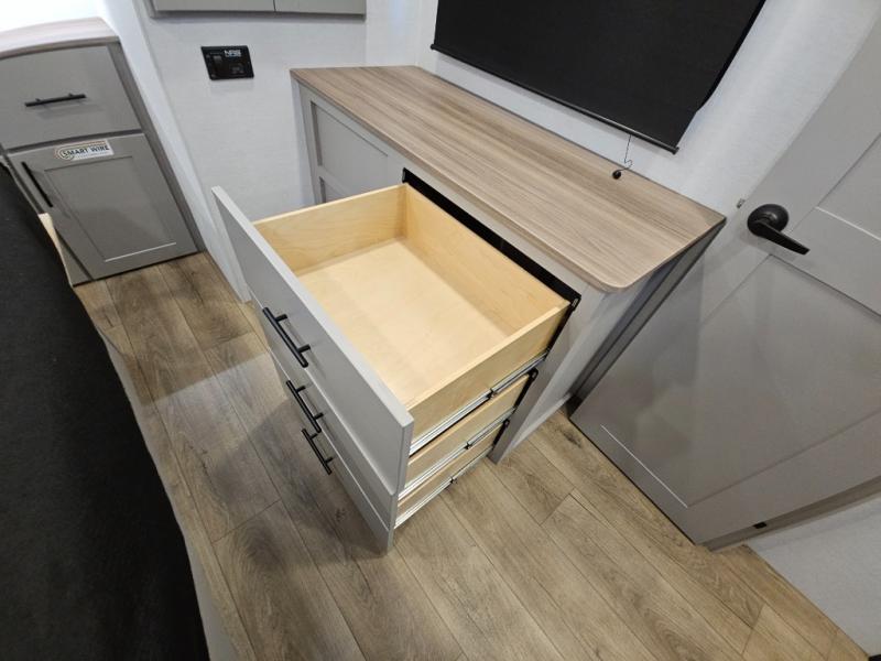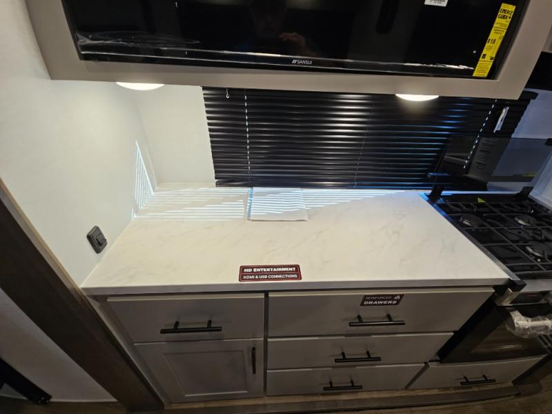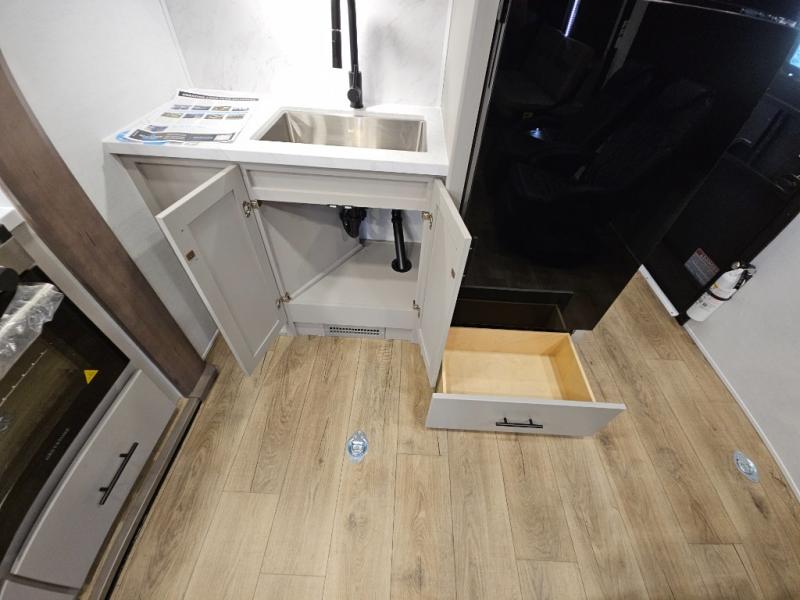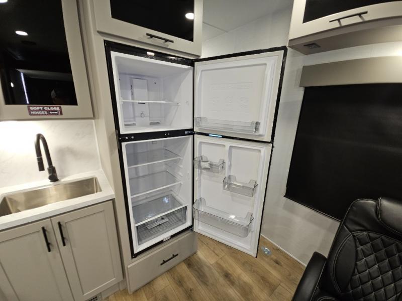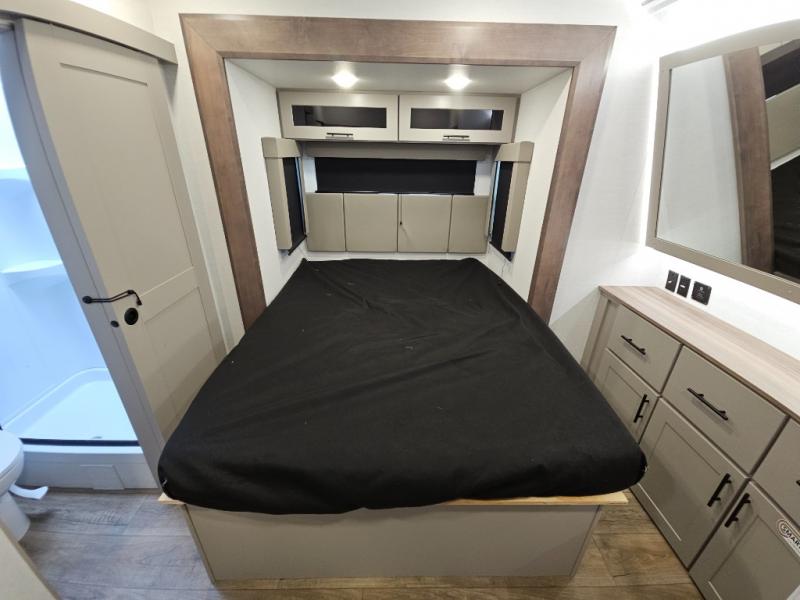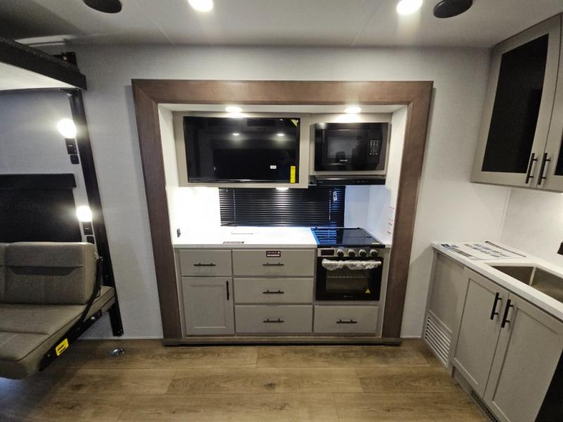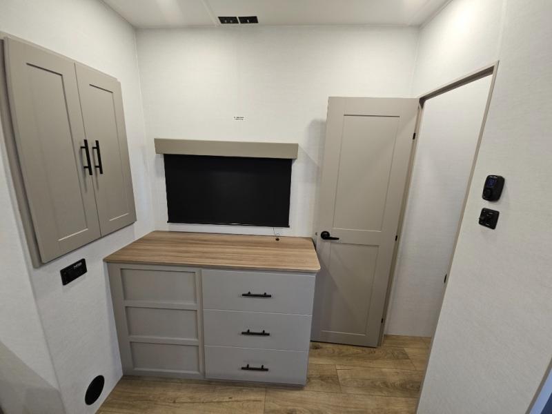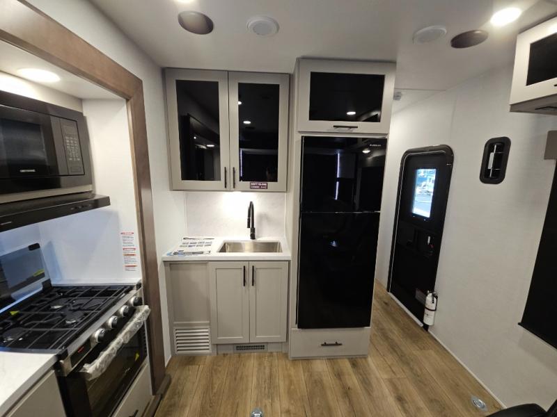 With any Valor All-Access toy hauler by Alliance RV, you will be getting a travel trailer or fifth wheel with exceptional features at a great value! There is a painted fiberglass front cap, Mylar reinforced exterior seals, Azdel-backed fiberglass sidewalls, and a walk-on roof with a seamless PVC roof covering for added strength and durability. The 101" wide-body Benchmark chassis means you can bring along your larger toys, and the multipoint tie-down system will keep your toys safe and secure on the way to the campground. All of your power needs will be met with the Masters of 12 Volt Package that includes a 12V JBL sound system and USB charging stations throughout, plus the Off the Grid Pack comes with a 400-watt solar panel, 30-amp charge controller, and generator prep to keep you going all week long. Some of the interior comforts you'll enjoy are commercial grade vinyl flooring with no carpet so you can easily clean up, black cabinetry hardware, residential LED recessed ceiling lights, and so much more!