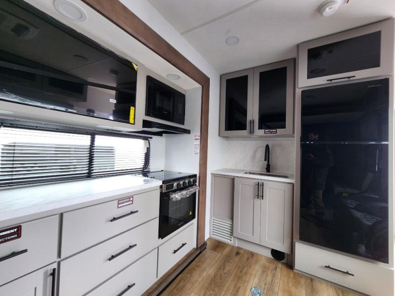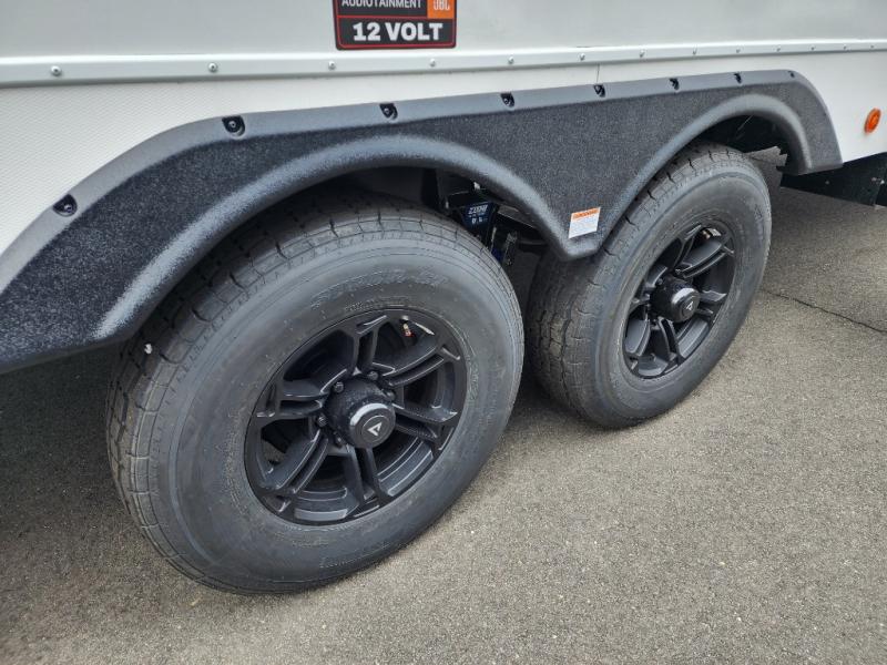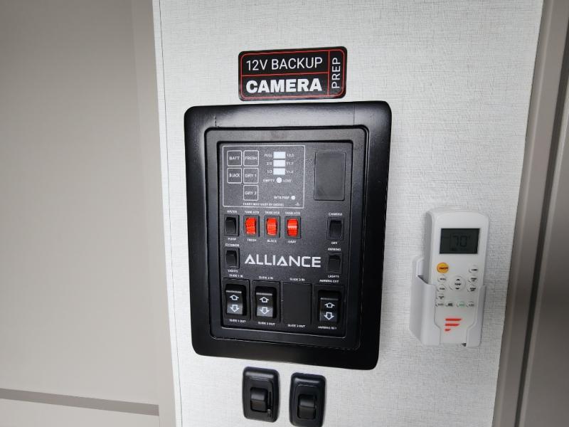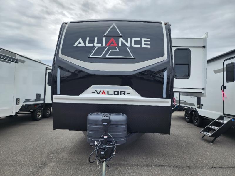 With any Valor All-Access toy hauler by Alliance RV, you will be getting a travel trailer or fifth wheel with exceptional features at a great value! There is a painted fiberglass front cap, Mylar reinforced exterior seals, Azdel-backed fiberglass sidewalls, and a walk-on roof with a seamless PVC roof covering for added strength and durability. The 101" wide-body Benchmark chassis means you can bring along your larger toys, and the multipoint tie-down system will keep your toys safe and secure on the way to the campground. All of your power needs will be met with the Masters of 12 Volt Package that includes a 12V JBL sound system and USB charging stations throughout, plus the Off the Grid Pack comes with a 400-watt solar panel, 30-amp charge controller, and generator prep to keep you going all week long. Some of the interior comforts you'll enjoy are commercial grade vinyl flooring with no carpet so you can easily clean up, black cabinetry hardware, residential LED recessed ceiling lights, and so much more!
