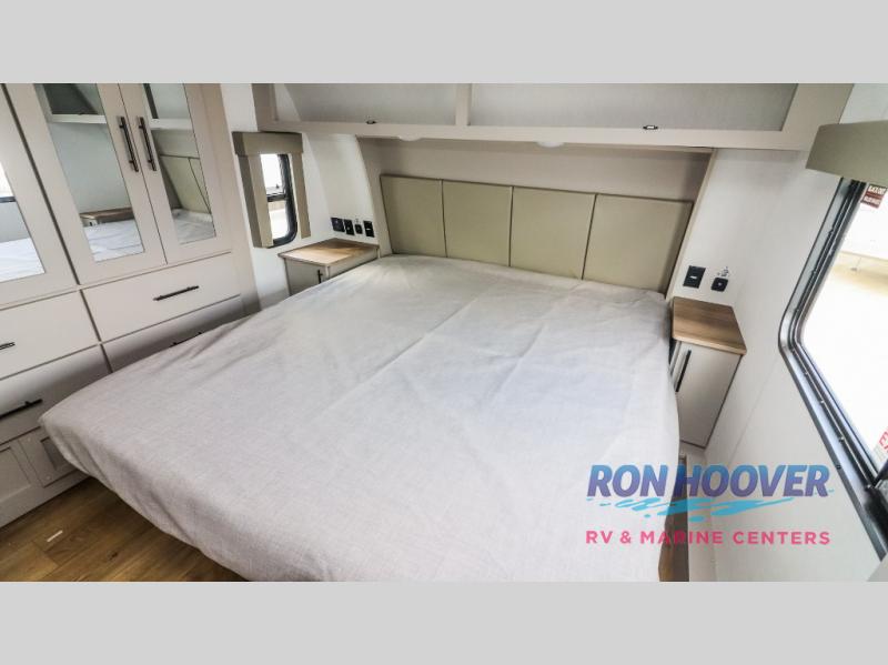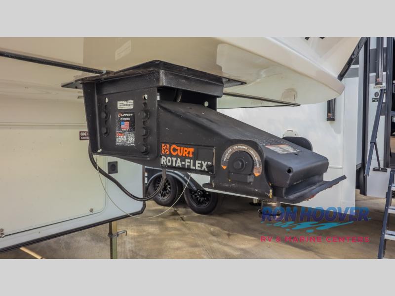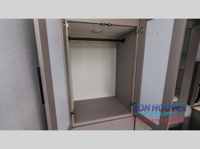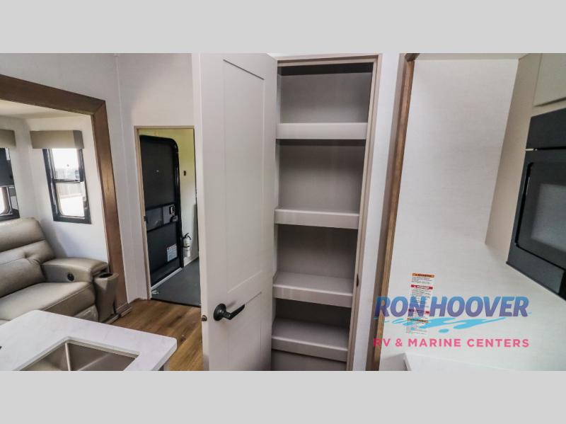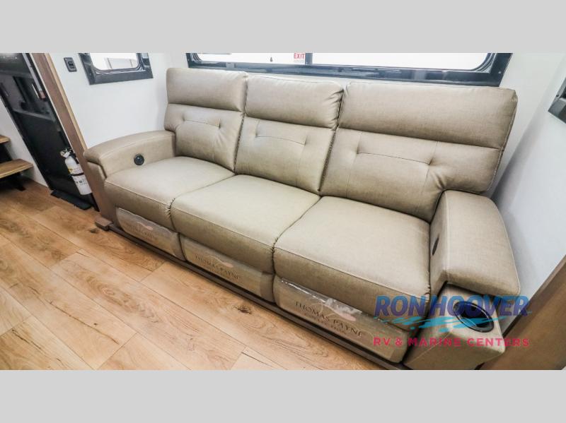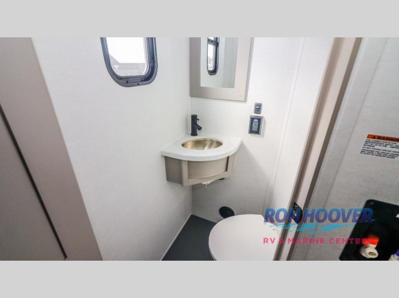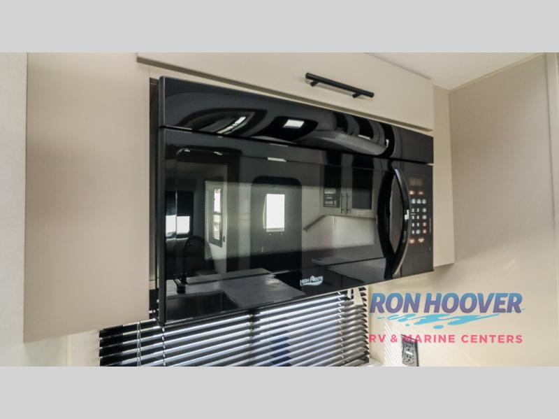 Load up the dirt bikes, pack your bags, and head to the campground in this spacious toy hauler. Once your toys are unloaded using the weather resistant ramp door, relax on the HappiJac roll-over sofas with a folding table in between, and this area can become your guests' bedroom at night since there is a drop-down queen bed, a half bath, plus an additional 30" x 72" bunk/loft bed. You will have the front bedroom all to yourselves that includes a king bed with an optional queen bed plus a wardrobe slide out to keep your space tidy. Everyone can meet in the main living area/kitchen for movie night with the HDTV and sofa slide out, while the chef of makes dinner on the three burner cooktop. There is also a hutch and pantry for storage and a kitchen island for more counter space!