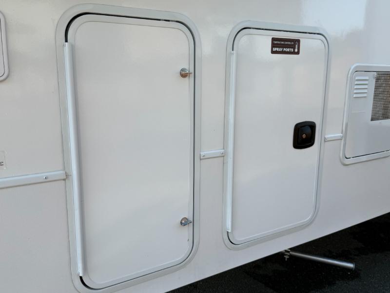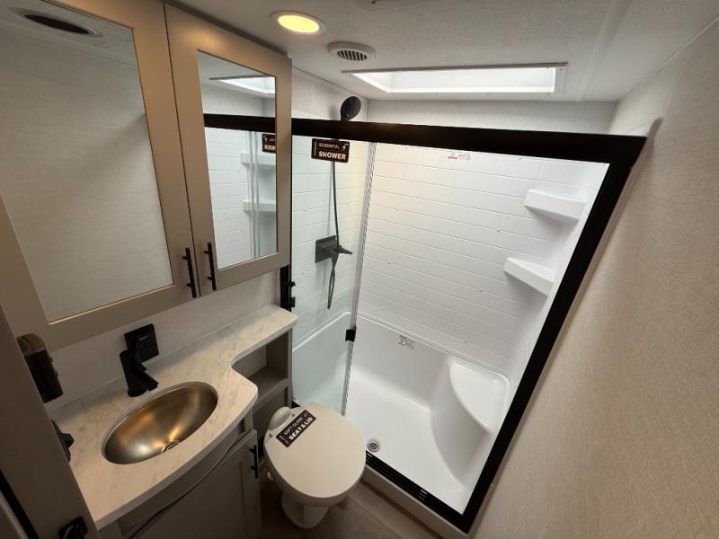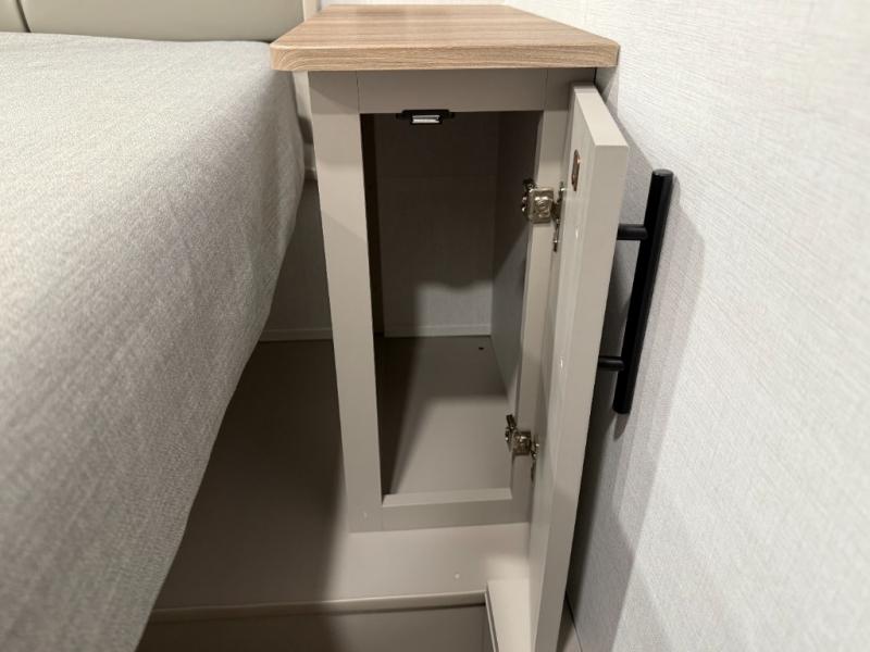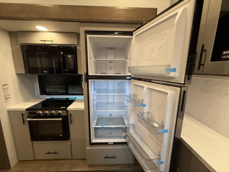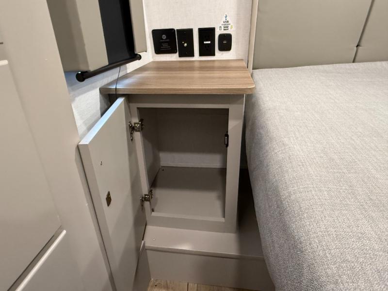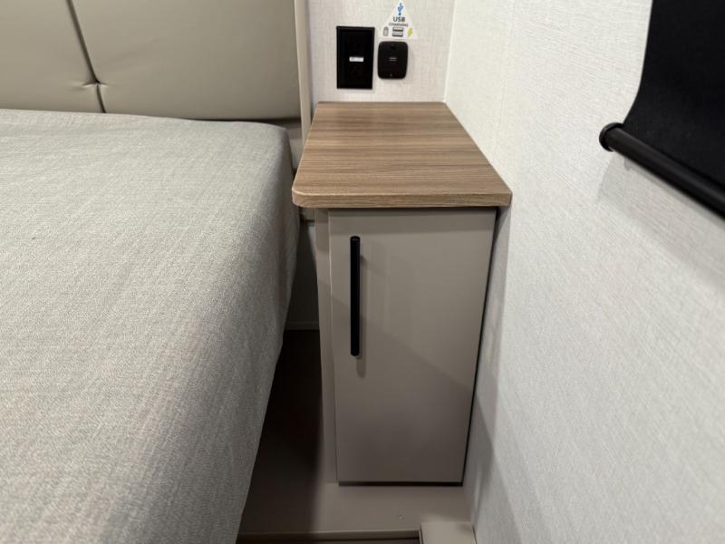 Equipped with a 12-volt refrigerator, which can be more efficient and versatile compared to standard AC units.