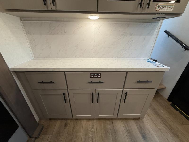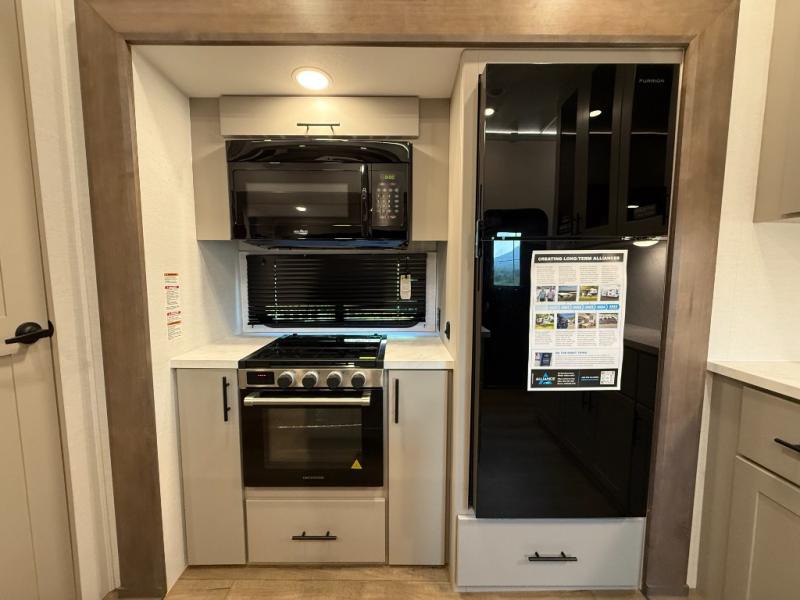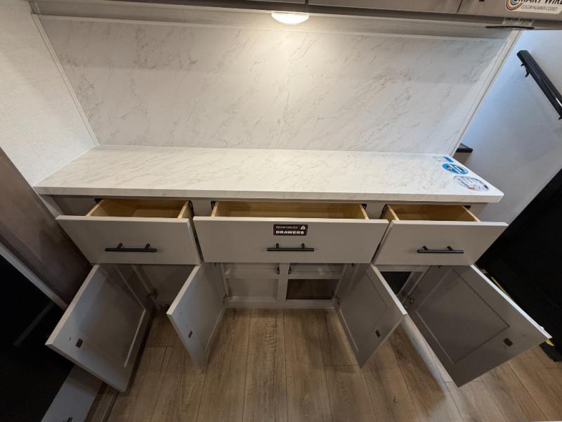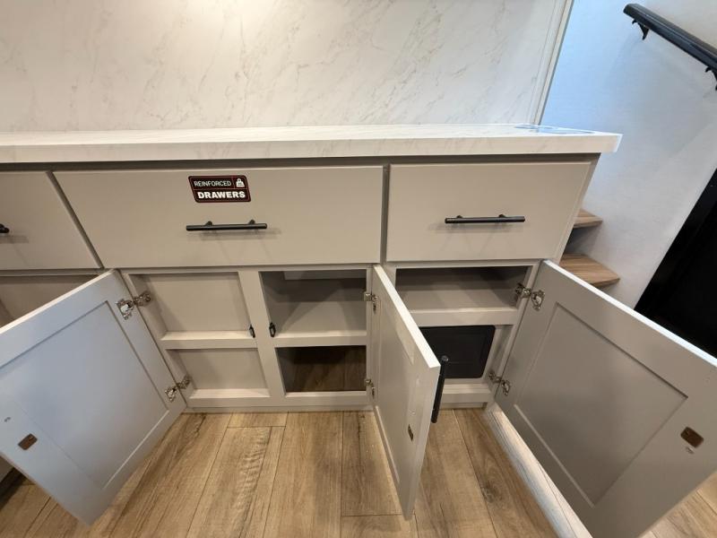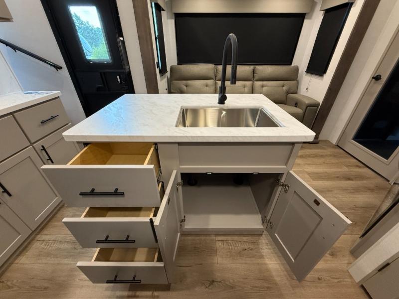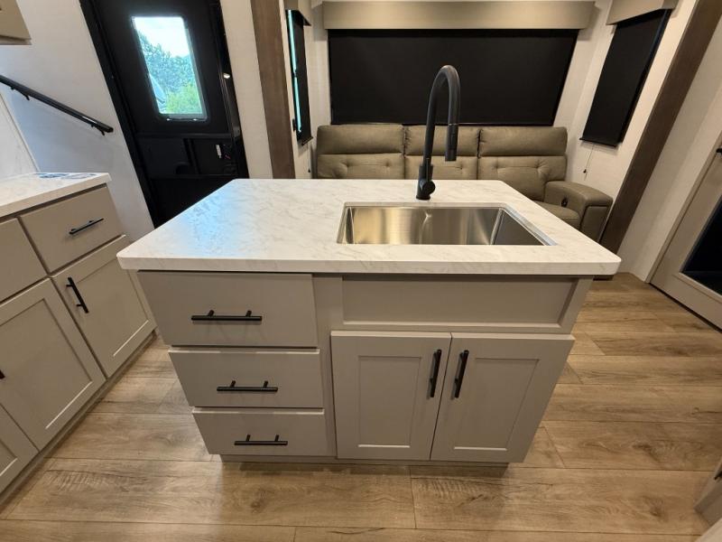 Features a kitchen island, making prepping and cooking easier when you’re on the road. -