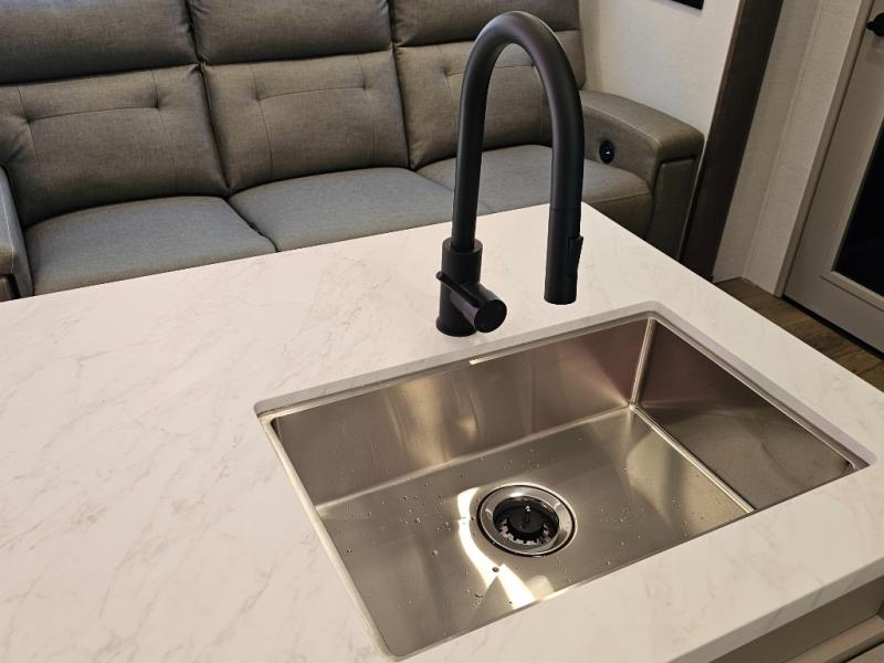 Kitchen island with deep sink and high-rise faucet for easy prep and cleanup