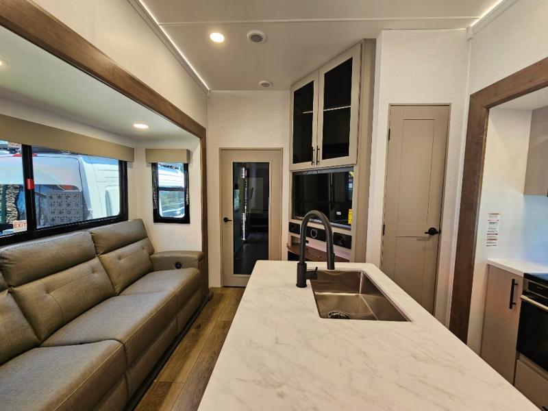 The Valor All-Access 32A10 gives you the best of both worlds: a dedicated 10' garage for your toys and a residential-style living space with king bed and island kitchen. Alliance RV’s superior build quality, off-grid capability, and innovative storage solutions make this toy hauler a perfect fit for thrill-seekers who want luxury along for the ride.