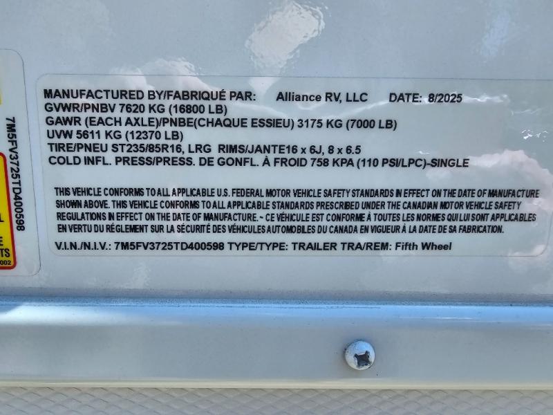 New 2026 Alliance RV Valor All-Access 32A10 Toy Hauler Fifth Wheel