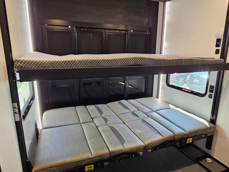 Designed for thrill-seekers who don’t want to compromise on comfort, the Valor All-Access 32A10 combines a dedicated garage space with a luxurious living area and residential amenities. Whether you’re hauling dirt bikes, ATVs, or other gear, this toy hauler ensures you’ll have room for your toys and your crew.