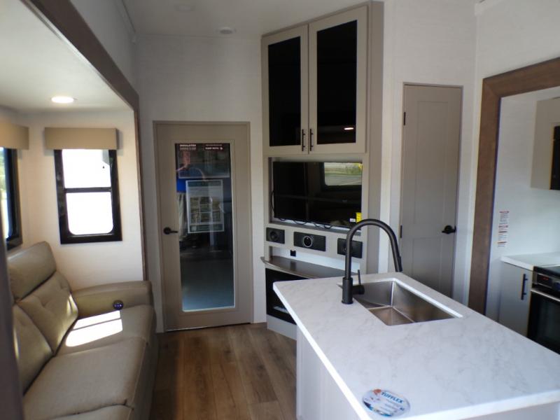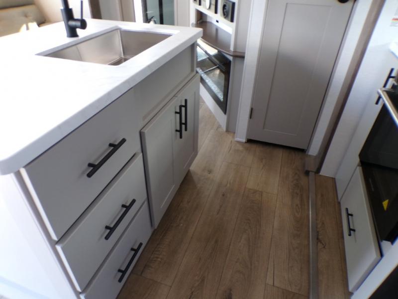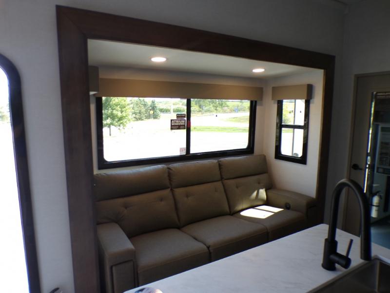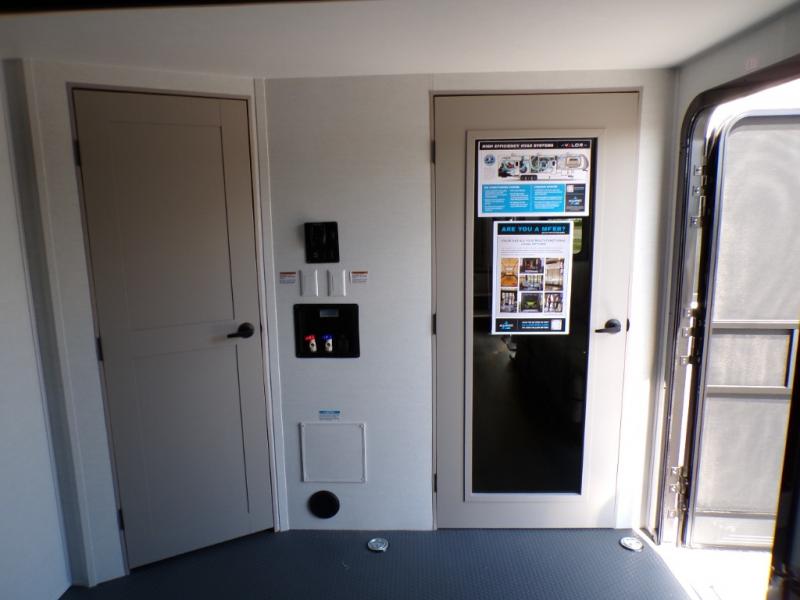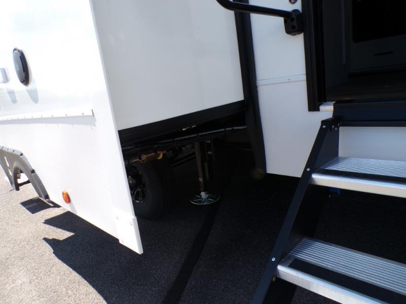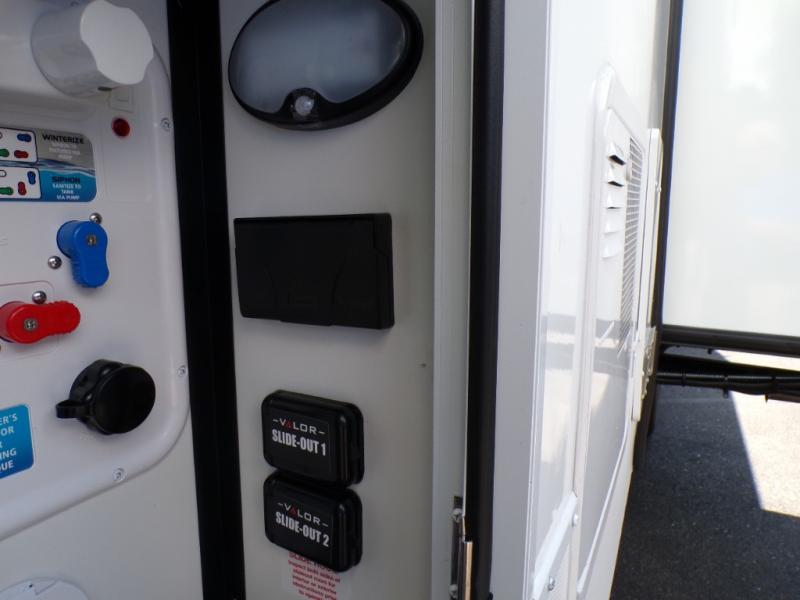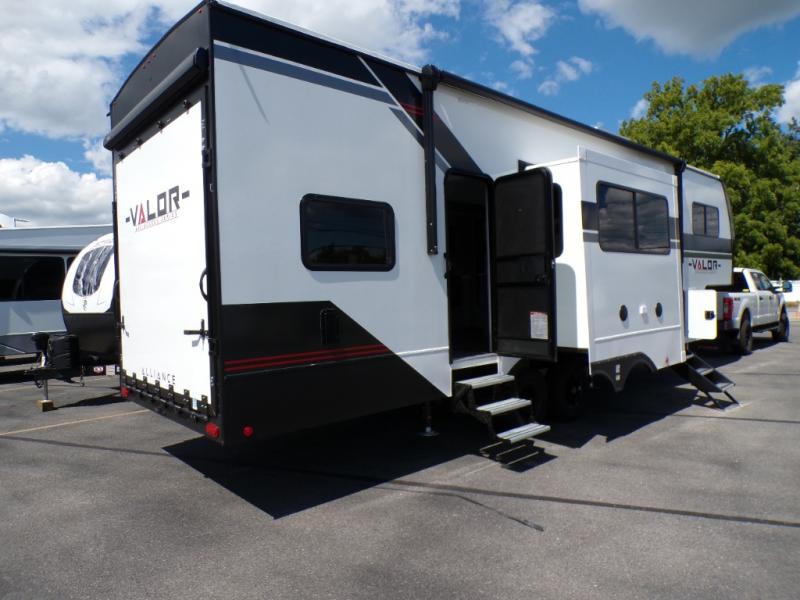 With any Valor All-Access toy hauler by Alliance RV you will be getting a travel trailer or fifth wheel with exceptional features at a great value! There is a painted fiberglass front cap, Mylar reinforced exterior seals, Azdel-backed fiberglass sidewalls, and a walk-on roof with a seamless PVC roof covering for added strength and durability. The 101" wide-body Benchmark chassis means you can bring along your larger toys, and the multipoint tie-down system will keep your toys safe and secure on the way to the campground. All of your power needs will be met with the Masters of 12 Volt Package that includes a 12V JBL sound system and USB charging stations throughout, plus the Off The Grid Pack comes with a 400 watt solar panel, 40 amp charge controller, and generator prep to keep you going all week long. Some of the interior comforts you'll enjoy are commercial grade vinyl flooring with no carpet so you can easily clean up, black cabinetry hardware, residential LED recessed ceiling lights, and so much more!